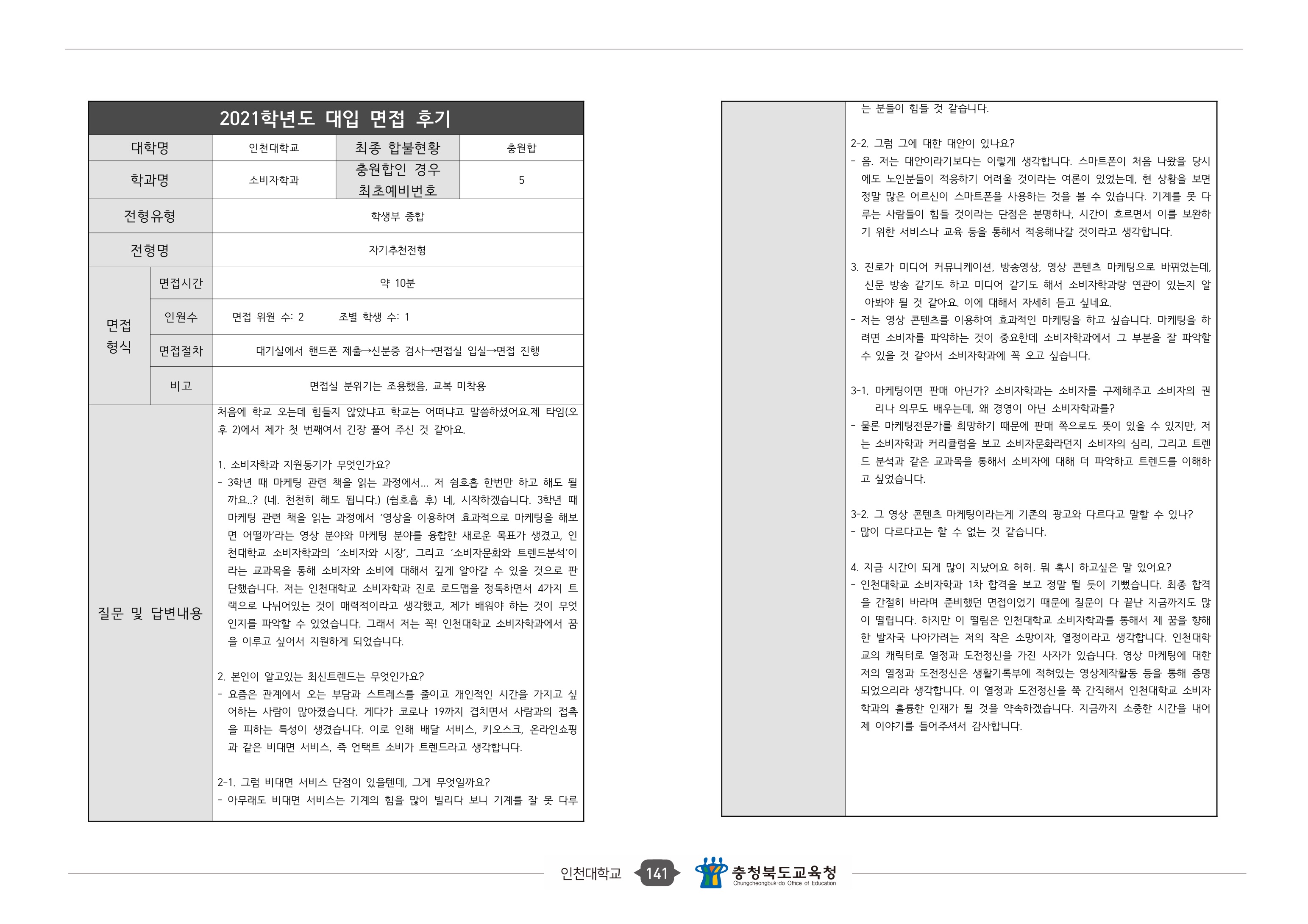 2021학년도 인천대학교 면접 후기21 - 소비자학과