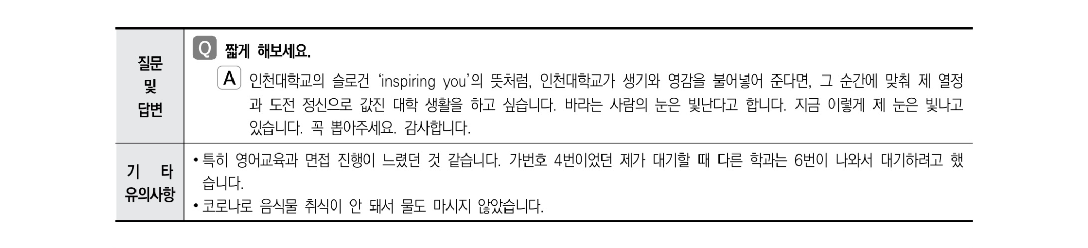 2021학년도 인천대학교 면접 후기26 - 영어교육과 2021학년도 인천대학교 면접 후기27 - 일어일문학과