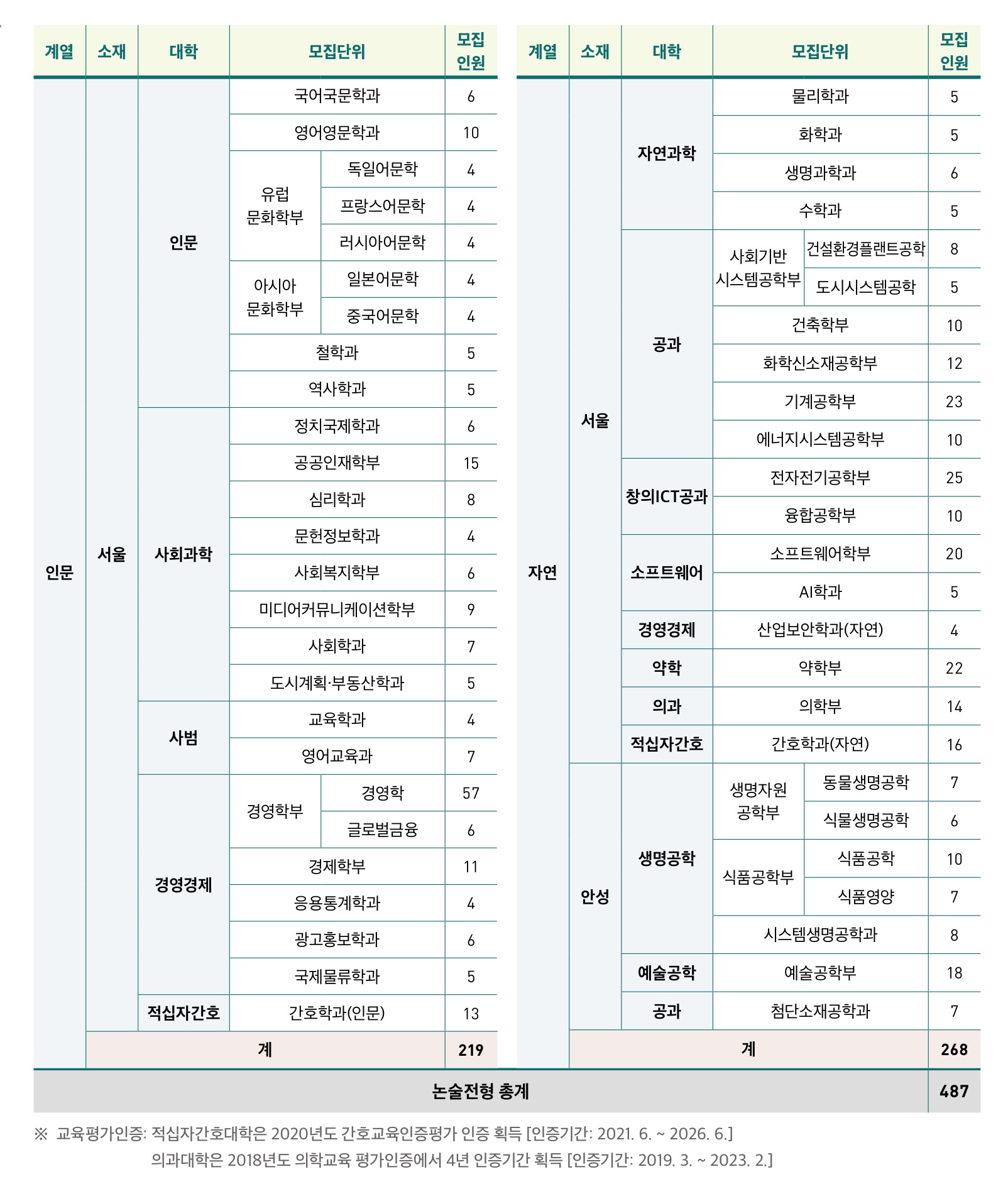 소재 계열 모집단위 영역별기준 탐구영역 반영 방법 공통 서울 인문 전체 국어, 수학, 영어, 사/과탐 3개 영역 등급 합 6 이내 상위 1과목 반영 한국사
