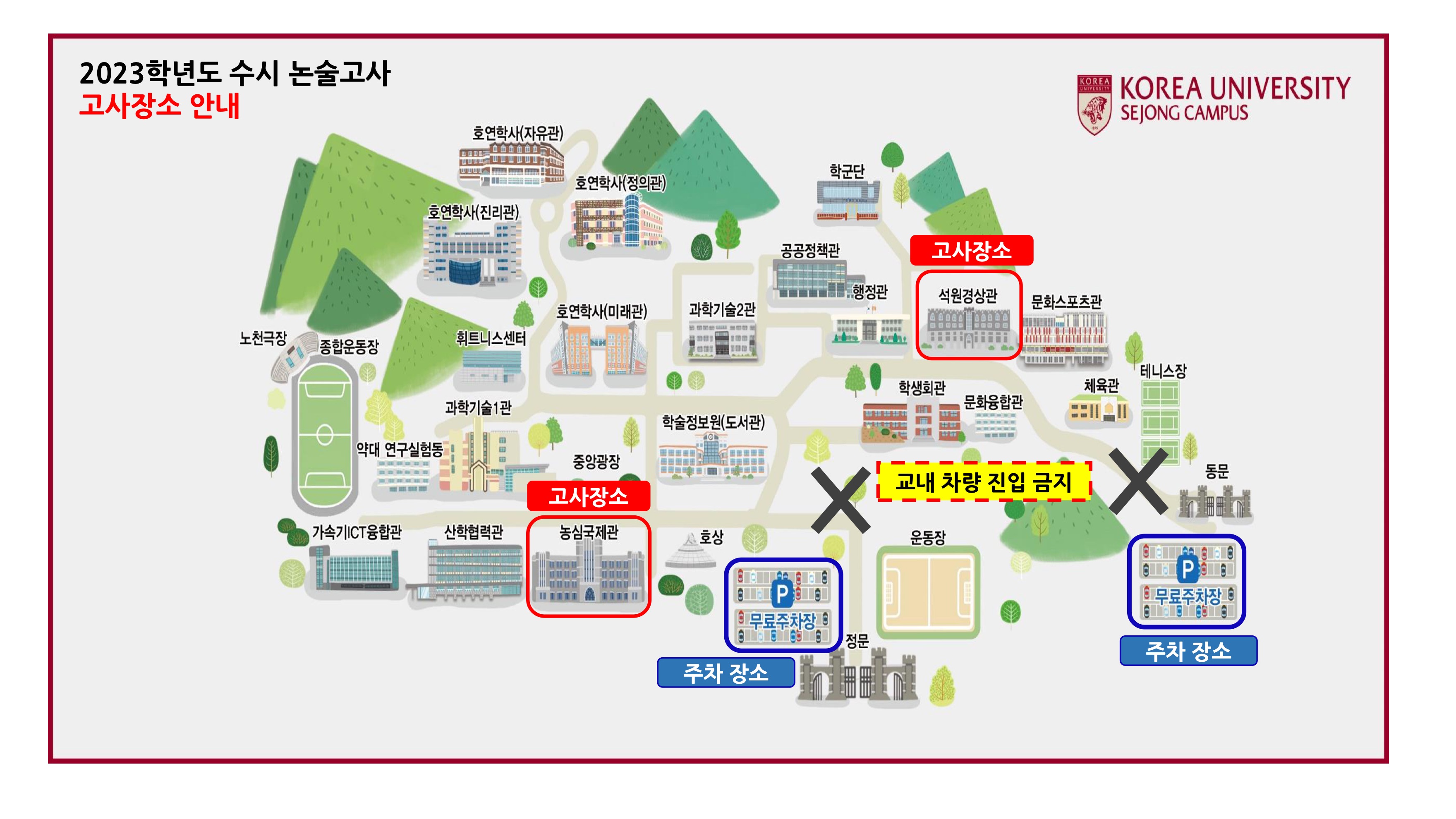 2023학년도 고려대학교 세종캠퍼스 수시 논술고사 고사장소 2023학년도 고려대학교 세종캠퍼스 수시 논술고사 고사건물 안내.pdf0.24MB고사장 조회