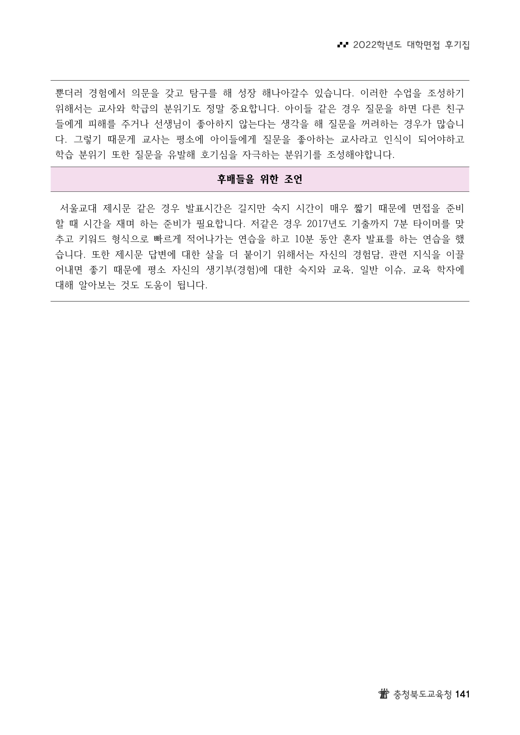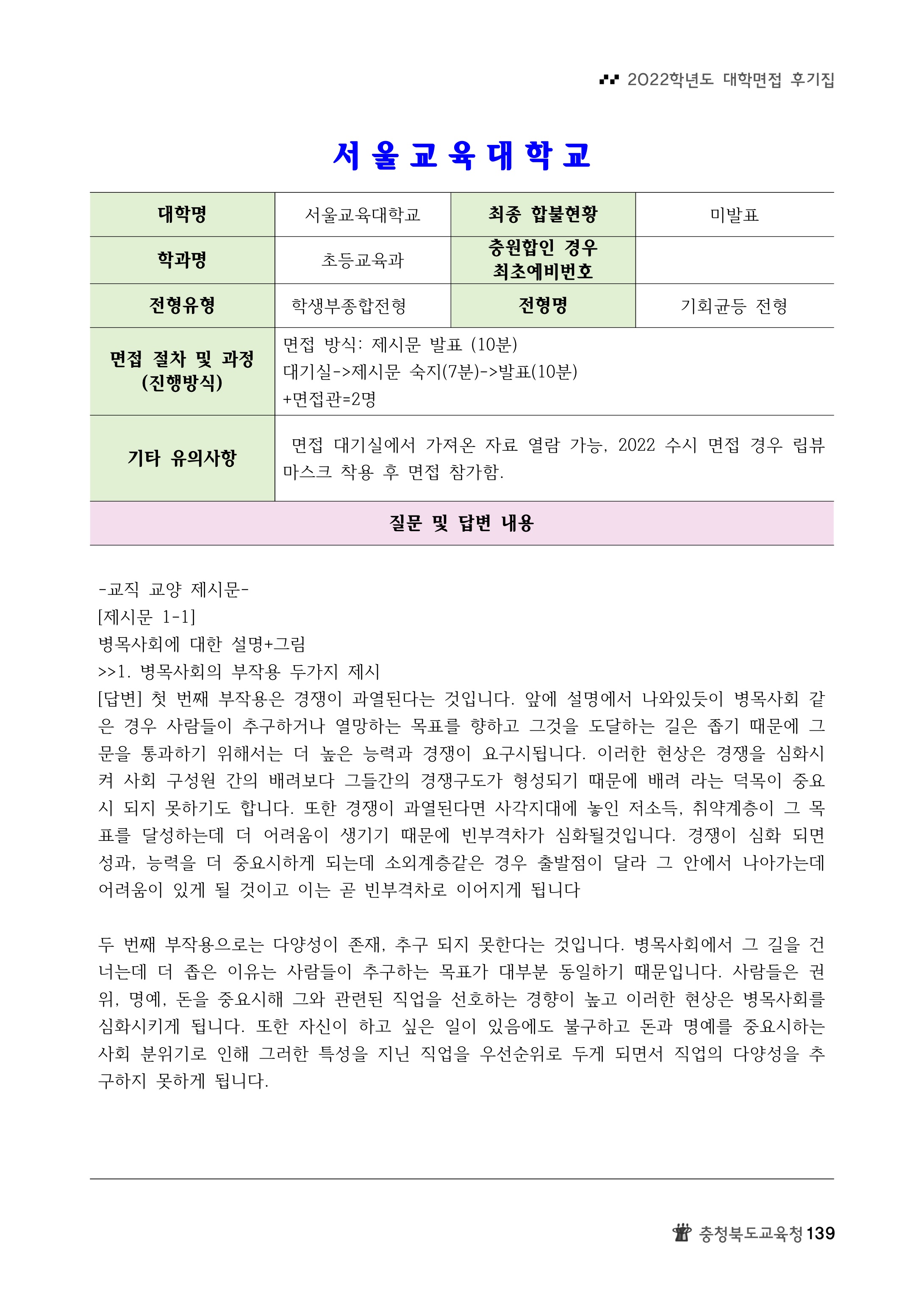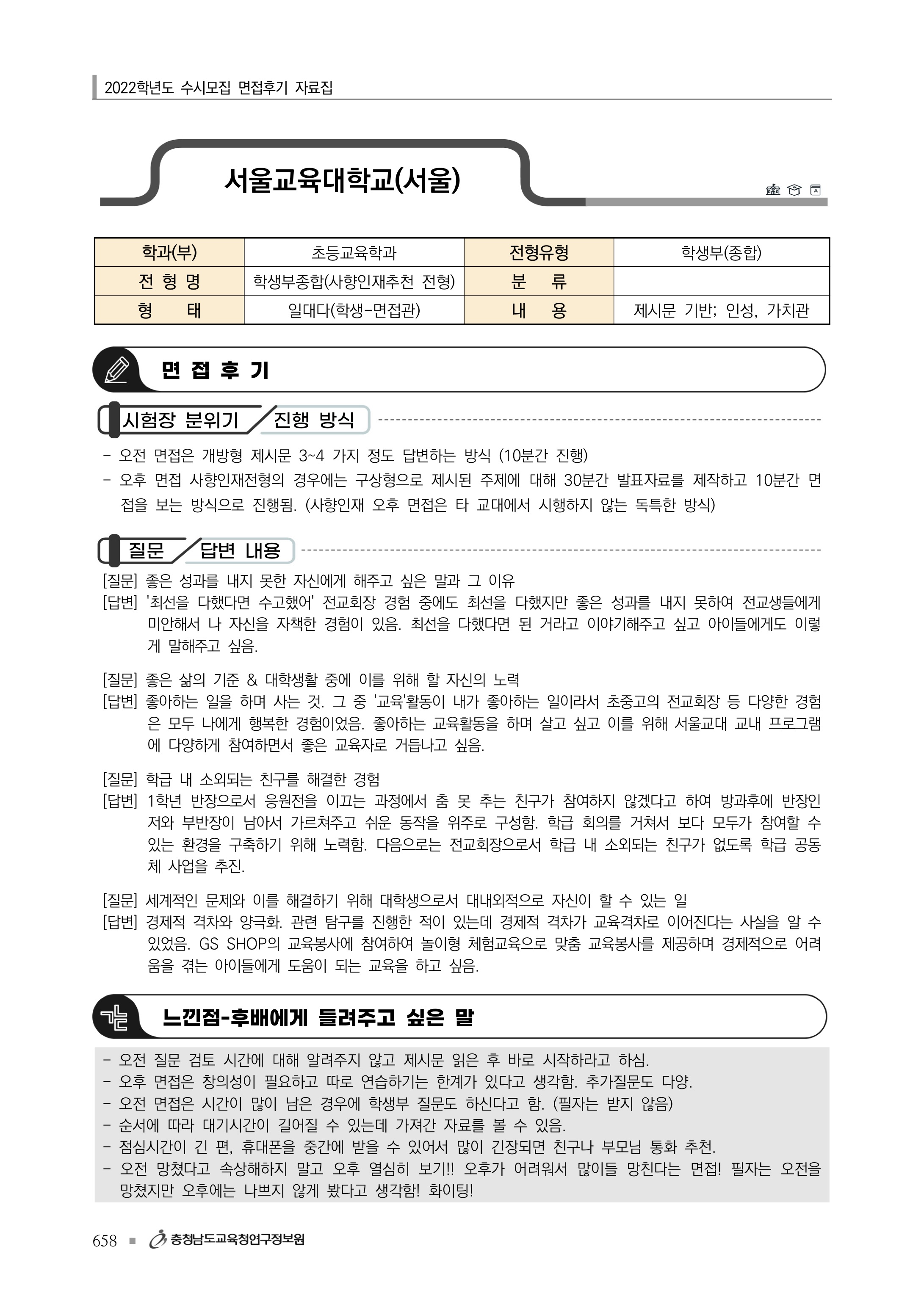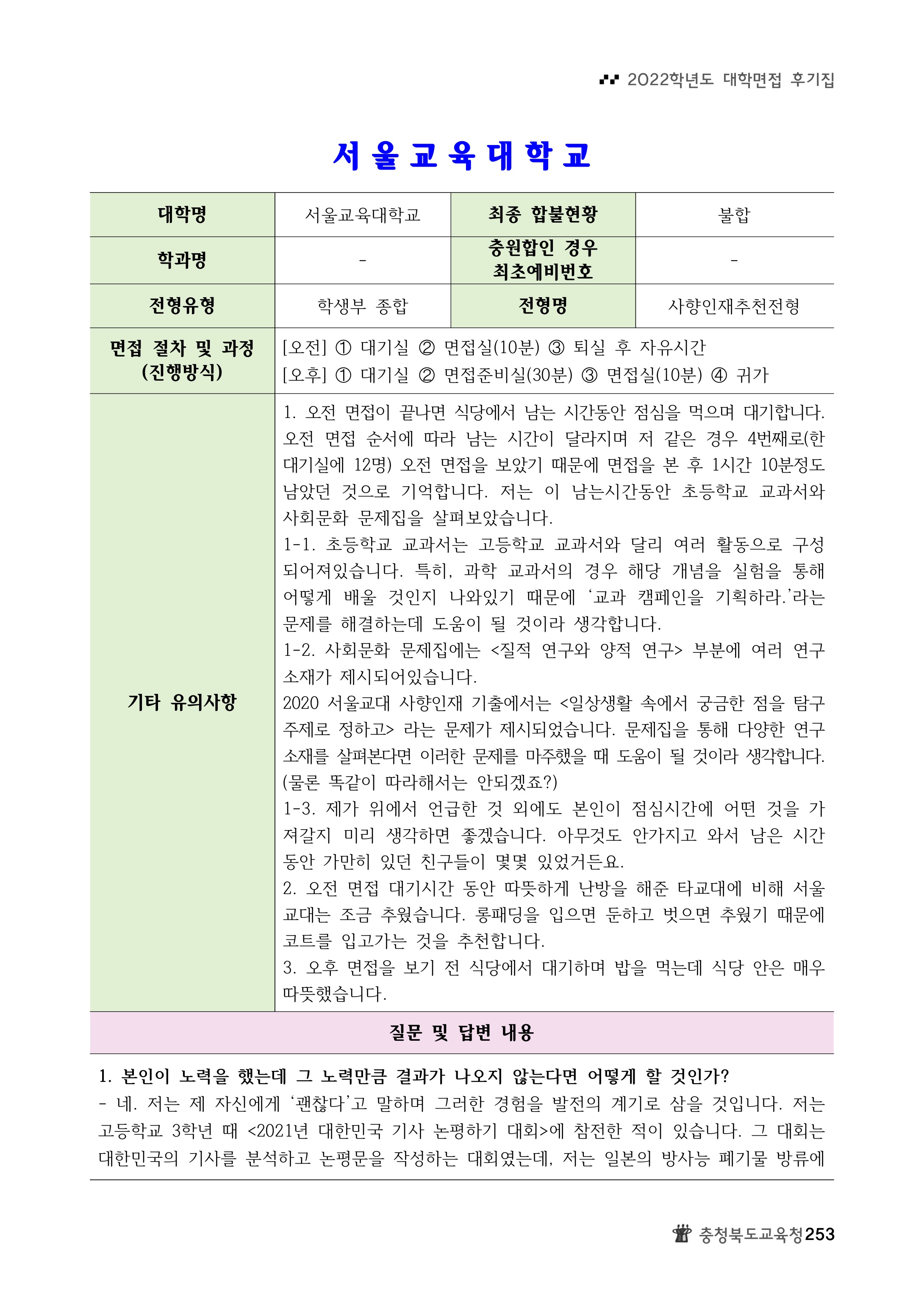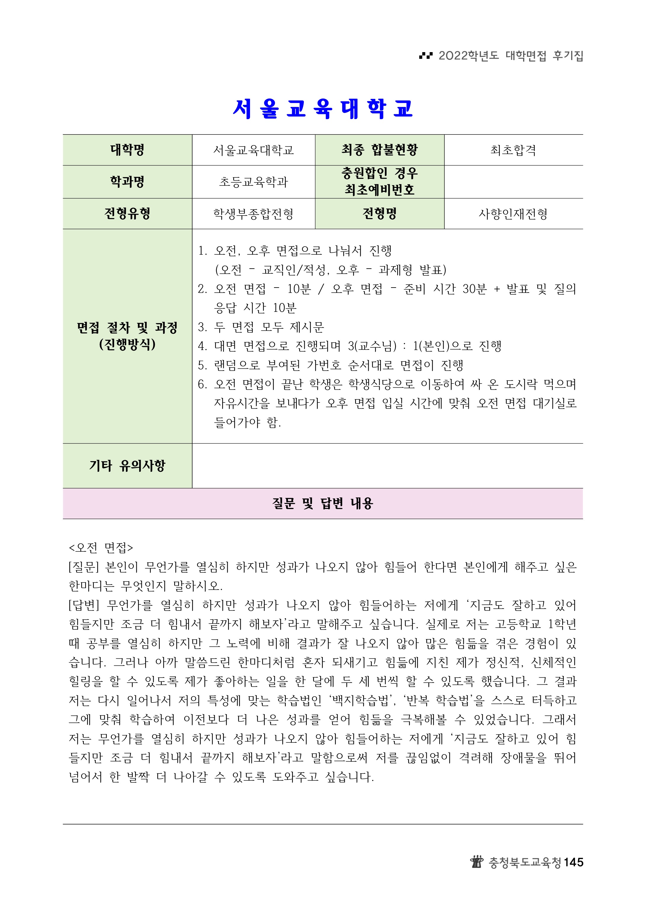 2022학년도 서울교육대학교 면접 후기8 2022학년도 서울교육대학교 면접 후기9