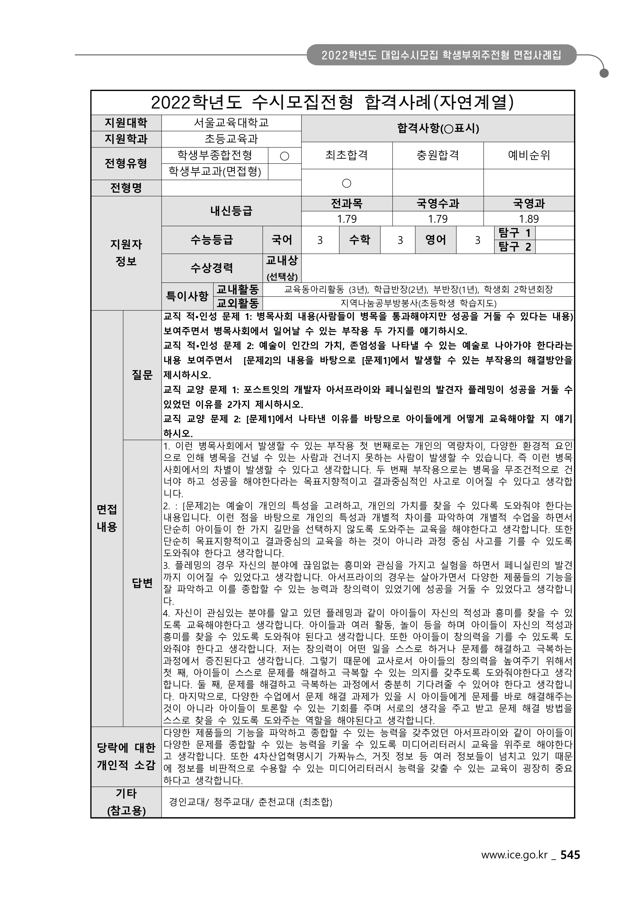 2022학년도 서울교육대학교 면접 질문입시 정보/면접 2022. 11. 23. 16:33