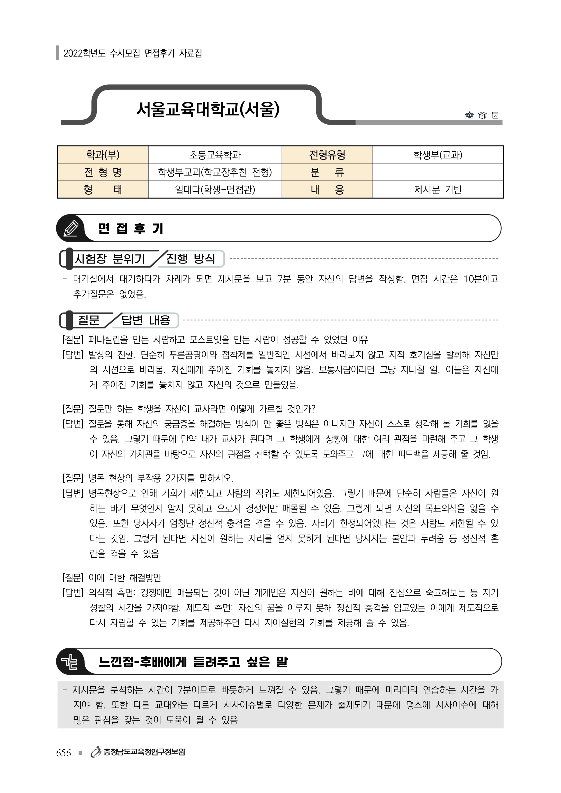 2022학년도 서울교육대학교 면접 후기5 2022학년도 서울교육대학교 면접 후기6