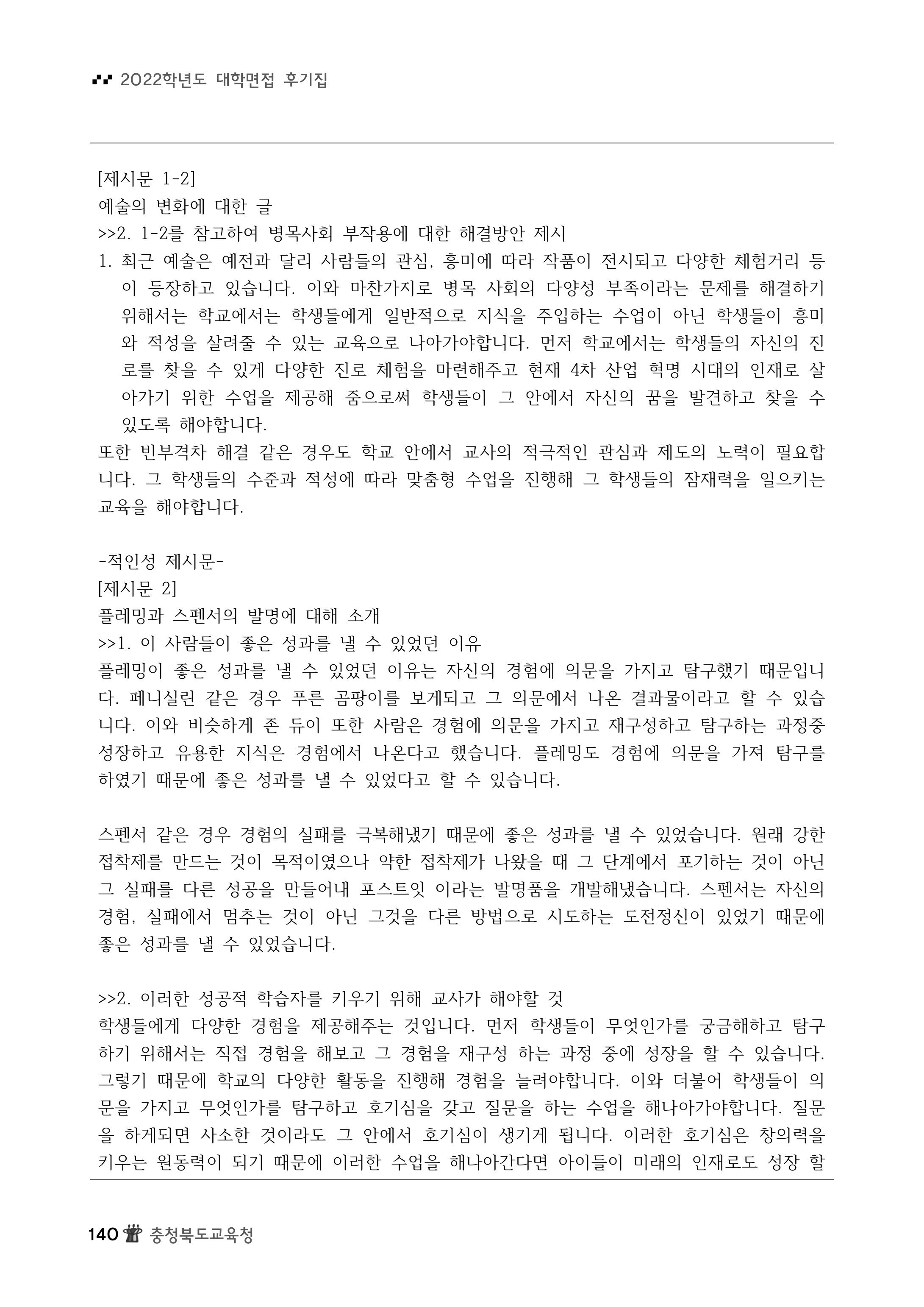 2022학년도 서울교육대학교 수시 면접구술시험 문제