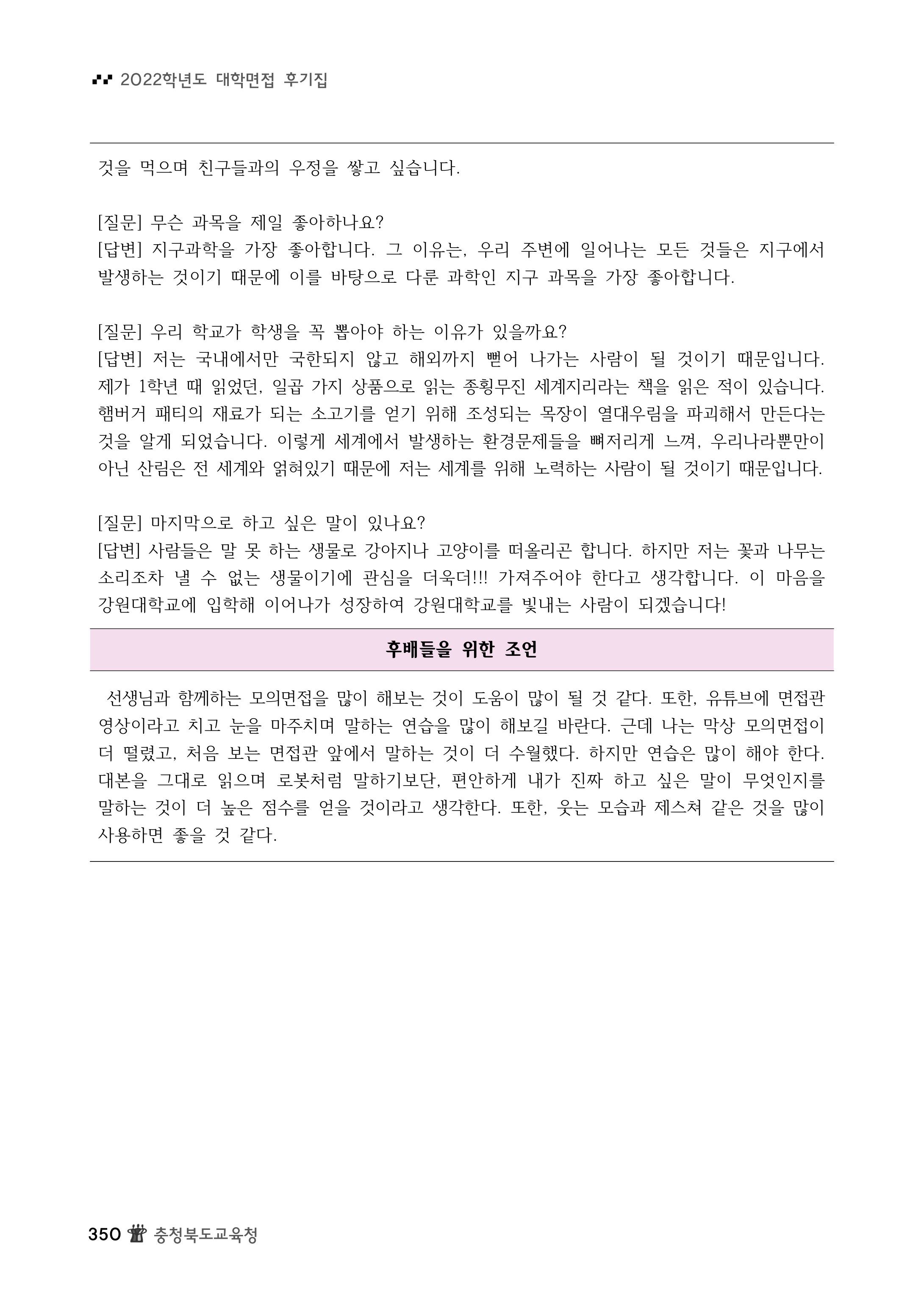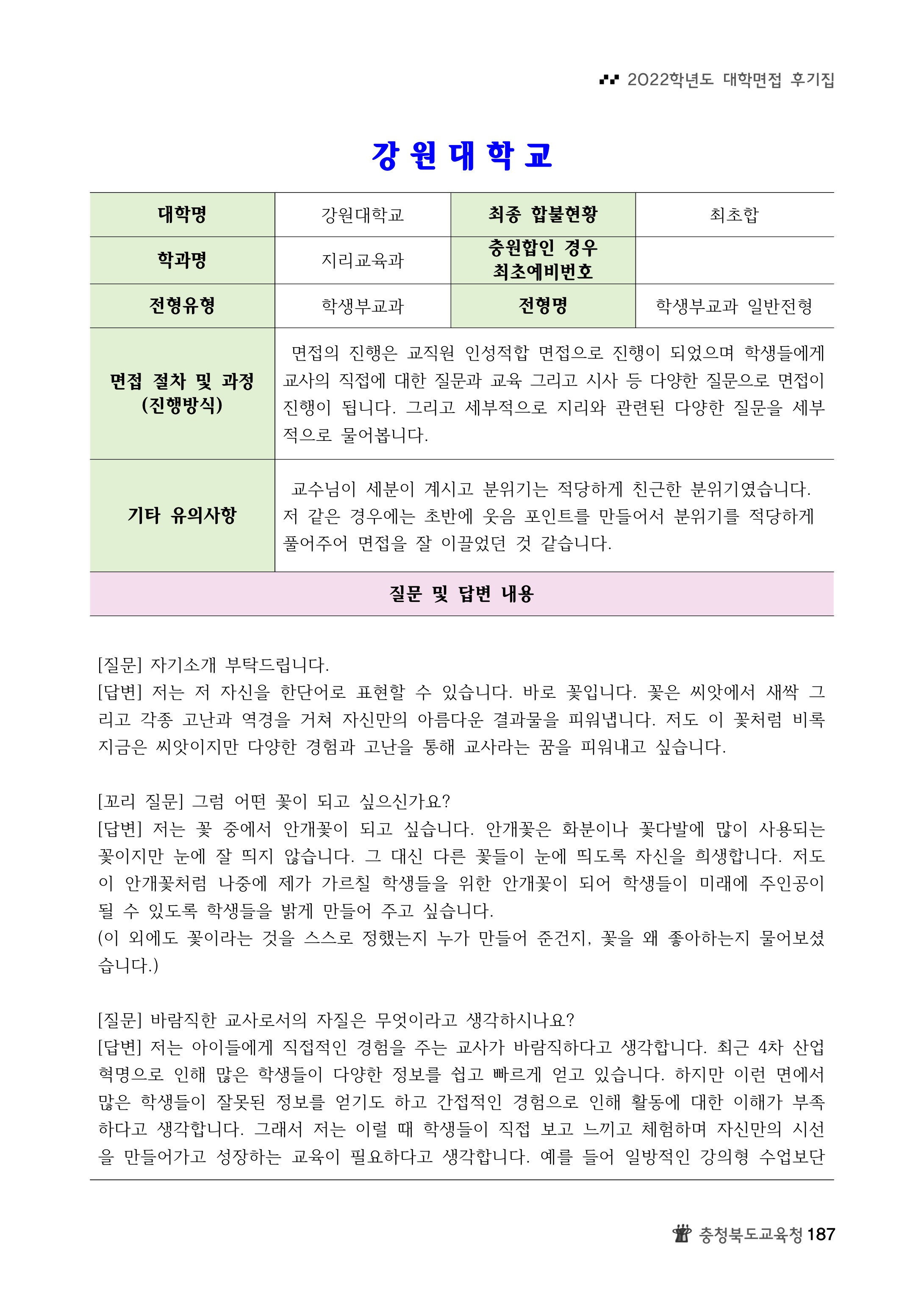 2022학년도 강원대학교 면접 후기6 - 영어교육과 2022학년도 강원대학교 면접 후기7 - 지리교육과