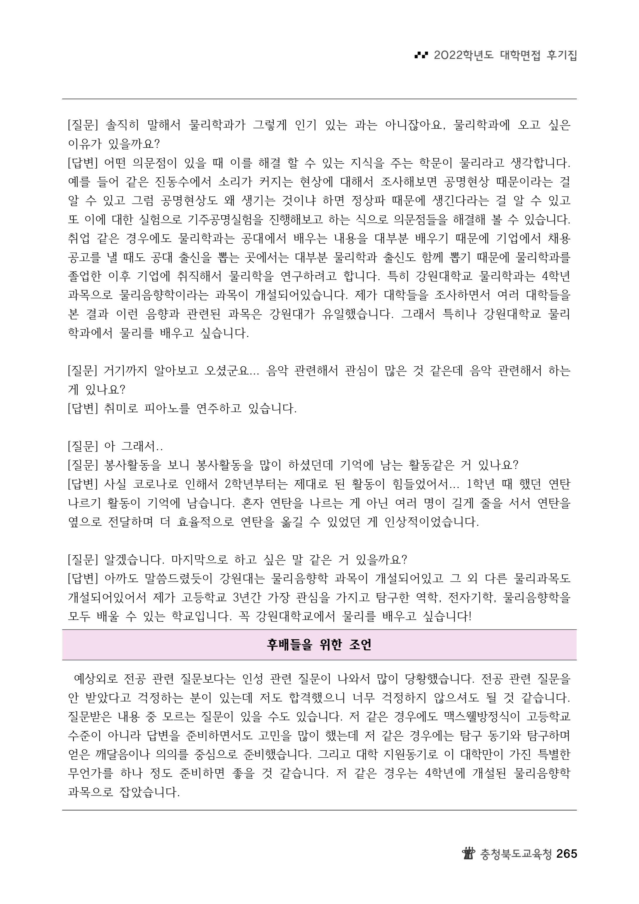 2022학년도 강원대학교 면접 후기3 - 물리학과