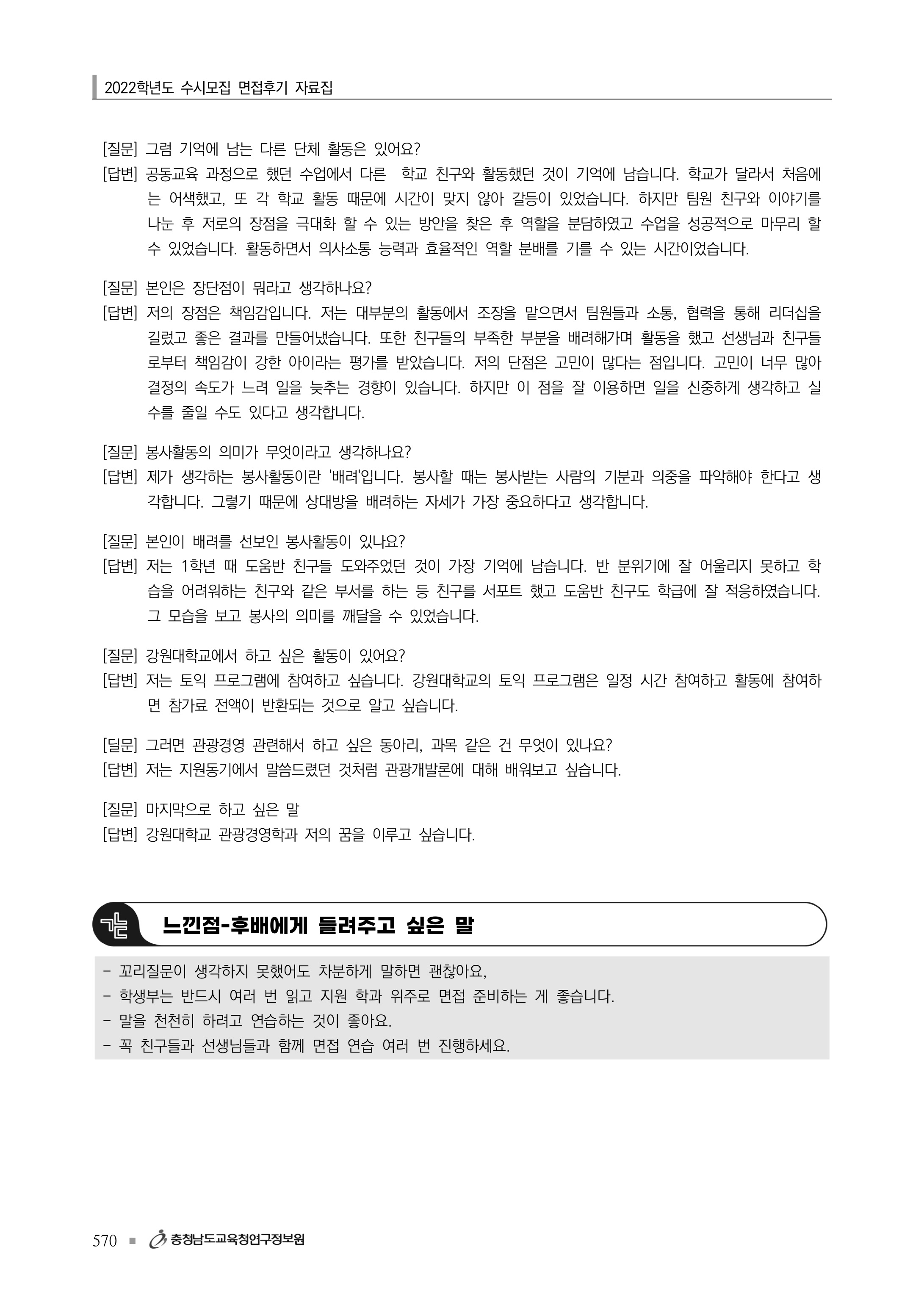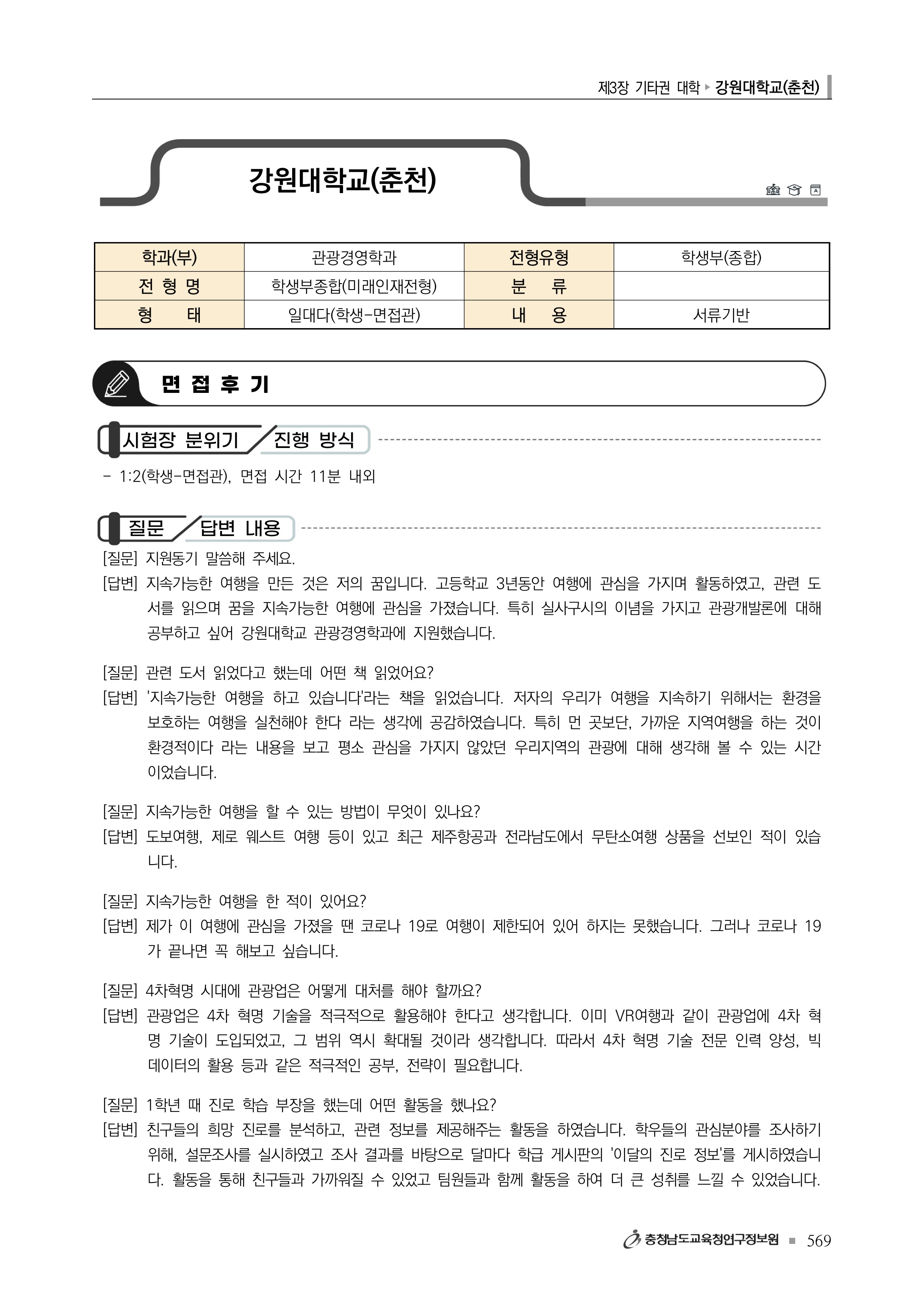 2022학년도 강원대학교 면접 후기2 - 관광경영학과