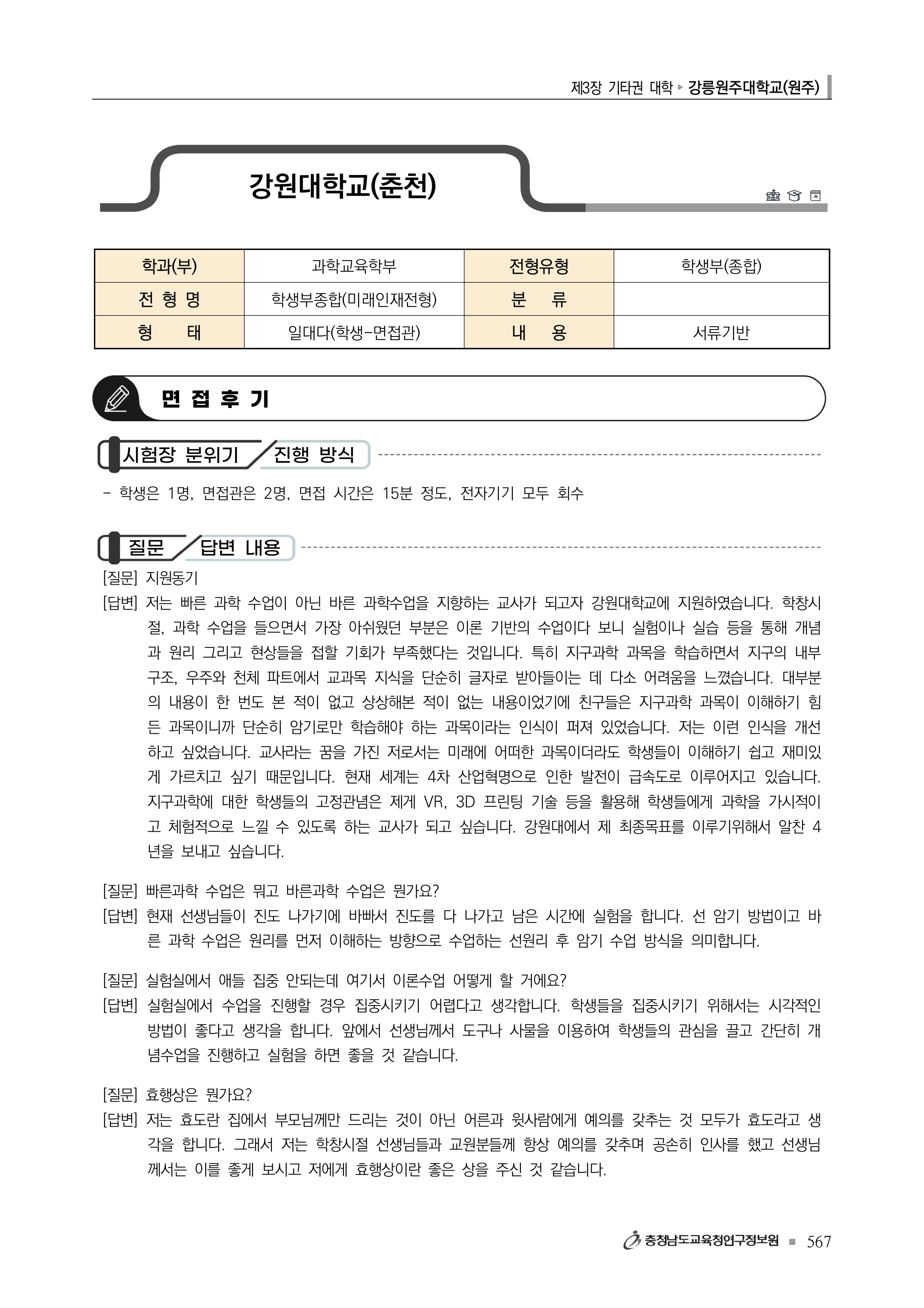 2022학년도 강원대학교 면접 후기1 - 과학교육학부