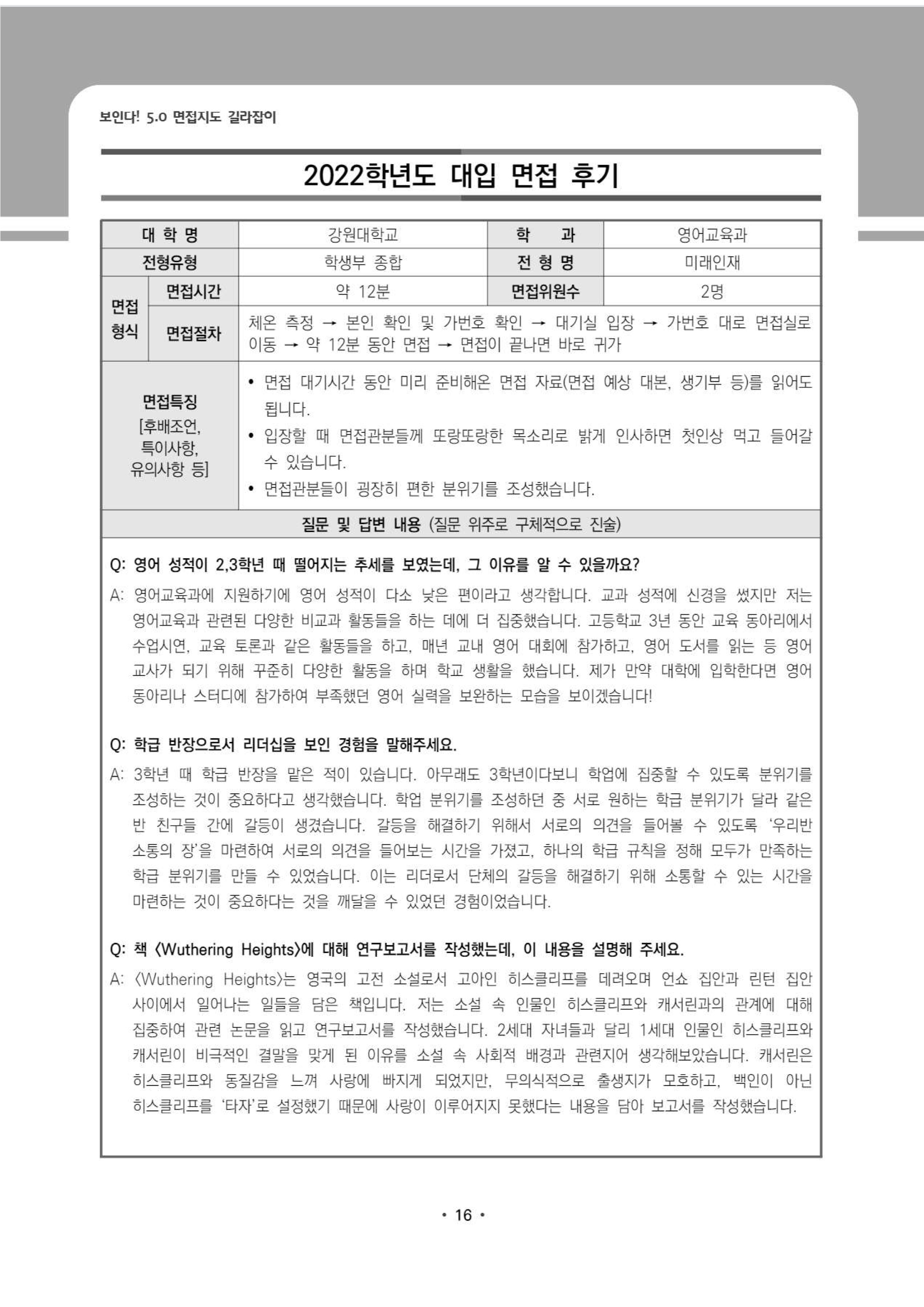 2022학년도 강원대학교 면접 후기5 - 영어교육과 2022학년도 강원대학교 면접 후기6 - 영어교육과