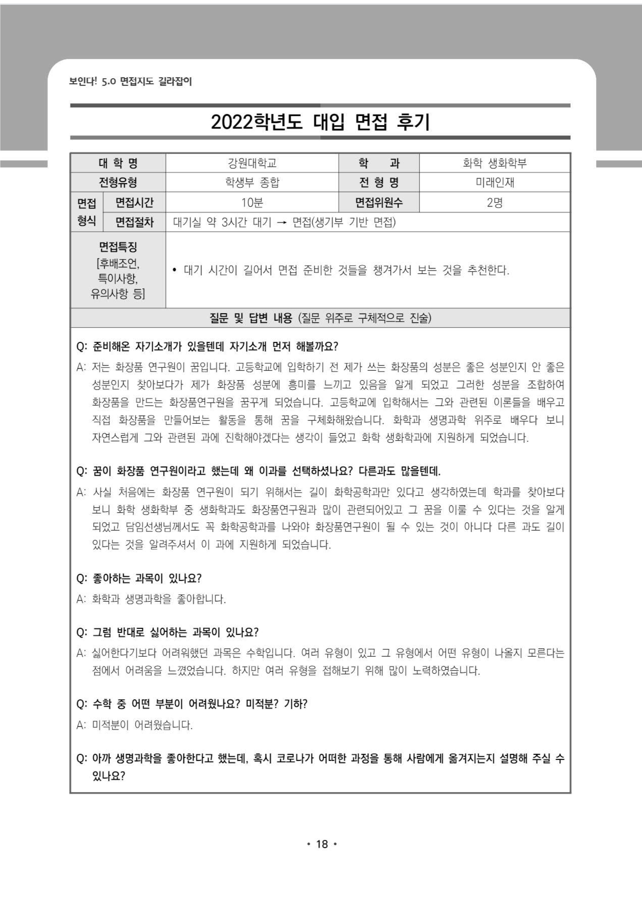 2022학년도 강원대학교 면접 후기9 - 화학생화학부