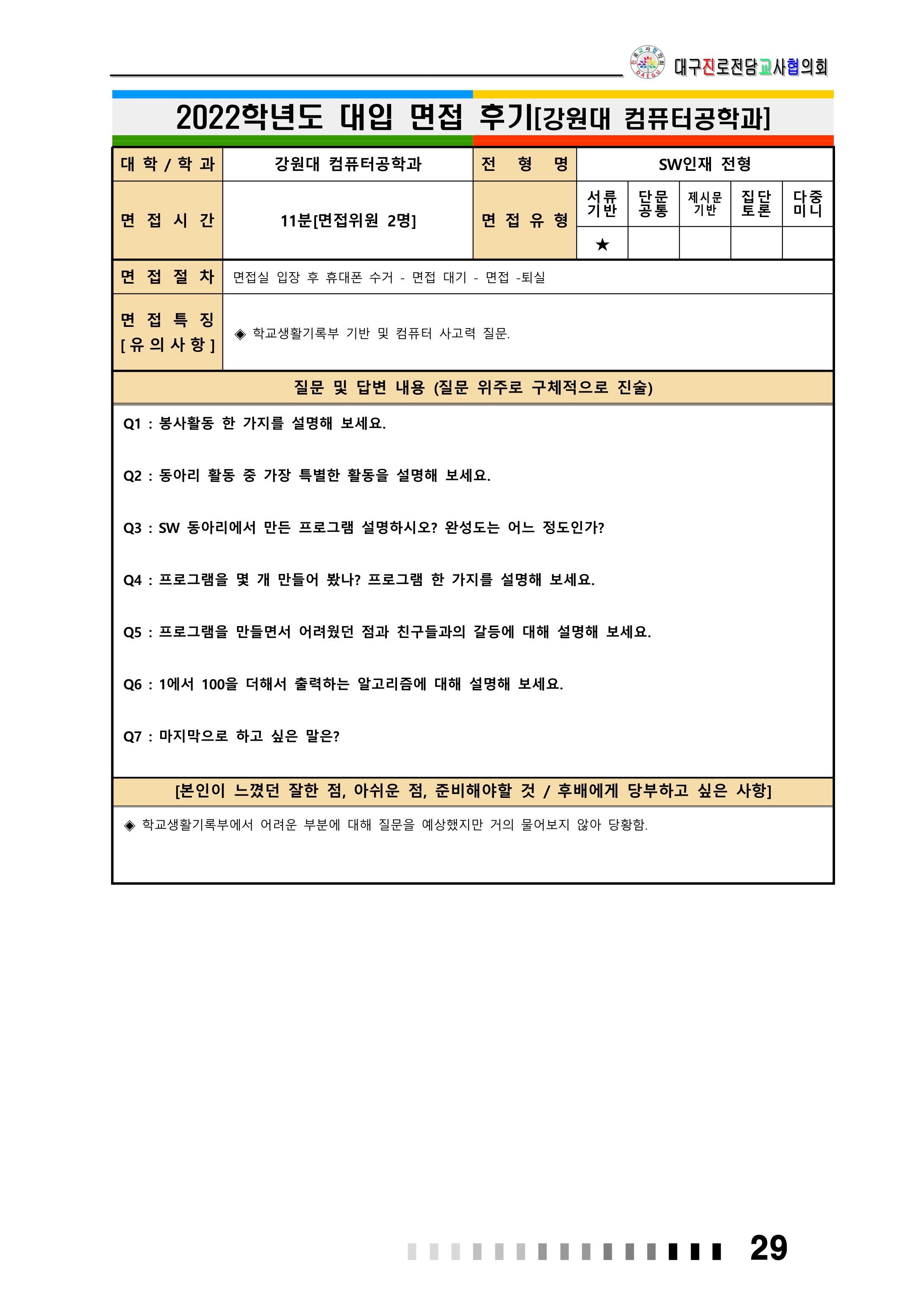 2022학년도 강원대학교 면접 후기7 - 지리교육과 2022학년도 강원대학교 면접 후기8 - 컴퓨터공학과