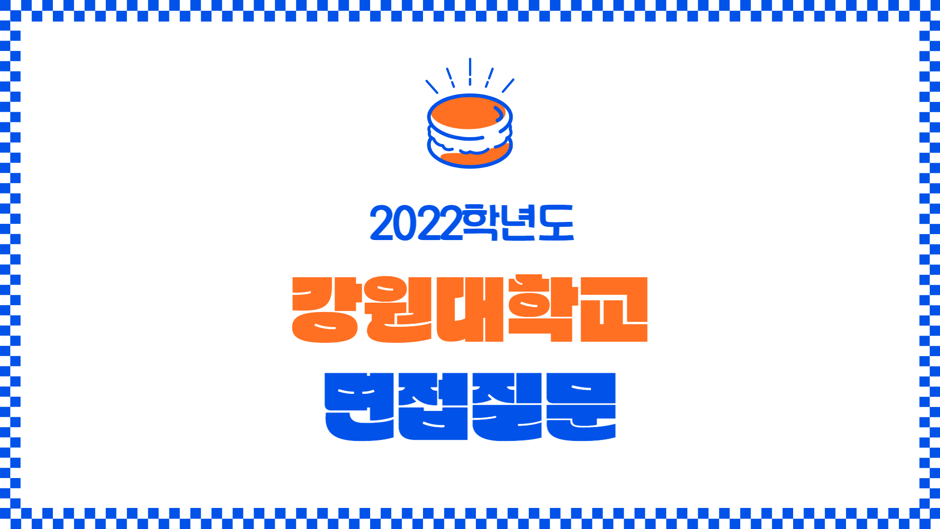 2022학년도 강원대학교 면접 질문 안녕하세영! 오늘은 2022학년도 강원대학교 수시전형에서 출제된 면접 질문에 대해 알아볼 거예영. 강원대 학생부종합 미래인재전형, 소프트웨어인재전형, 평생학습자전형, 특성화고교졸업자전형 1단계 합격자는 서류확인면접을 봐야 해영. 학업역량, 인성, 잠재역량을 평가한다고 하니 아래 선배들의 후기를 꼼꼼히 살펴보시기 바라영. 맨 아래에는 2023학년도와 2021학년도 면접 질문도 링크해 두었어영.😸