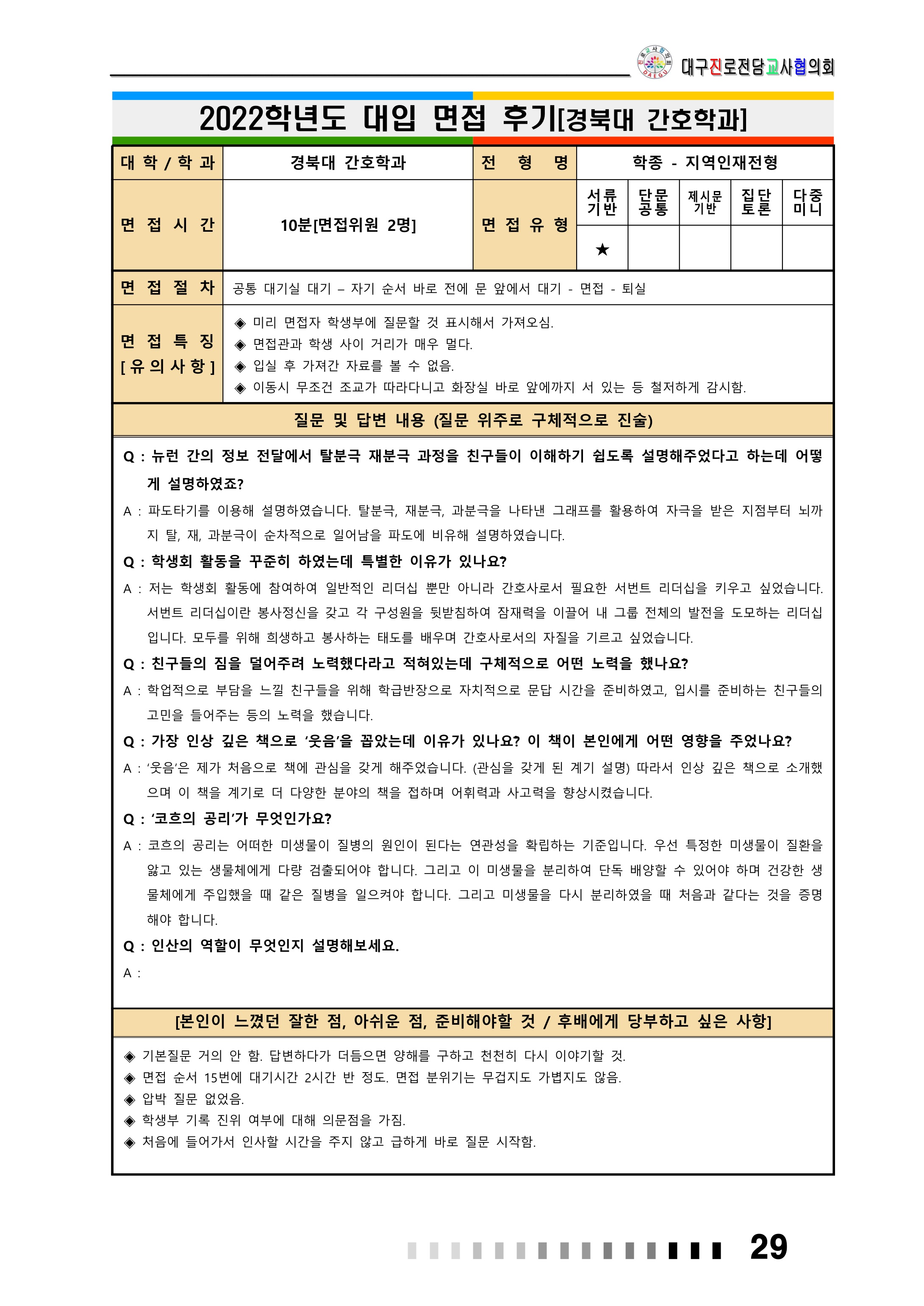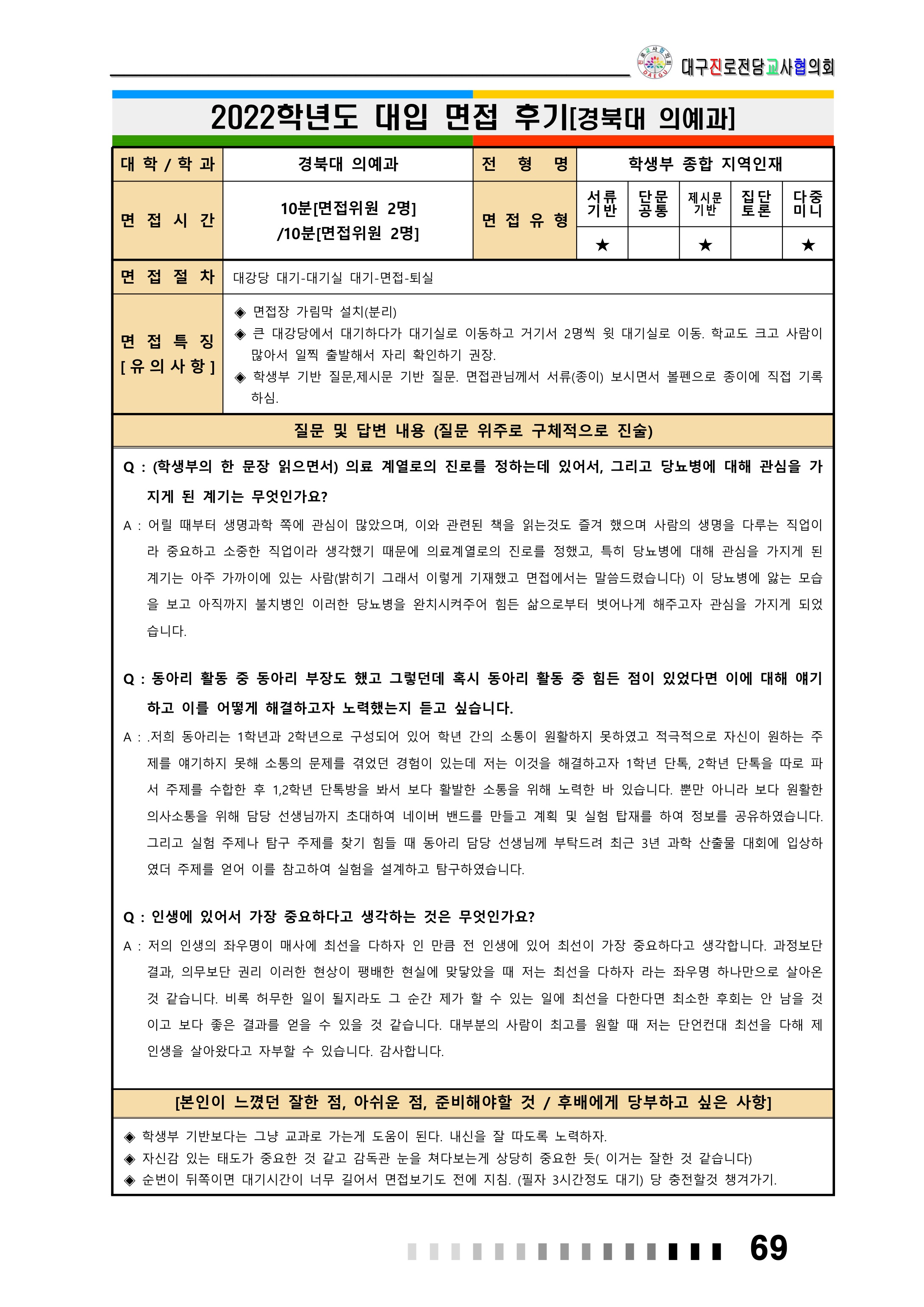 2022학년도 경북대학교 면접 후기29 - 의예과