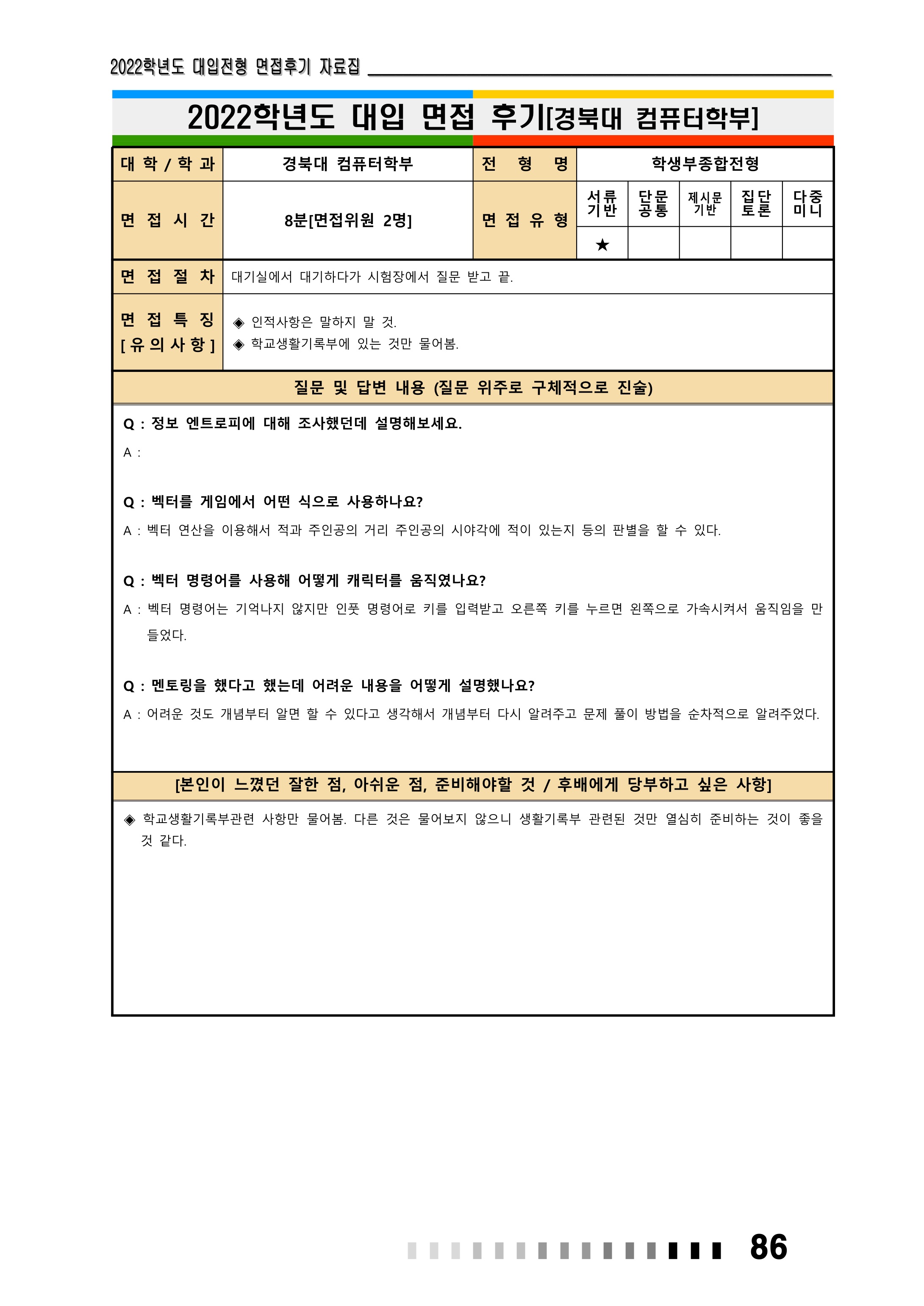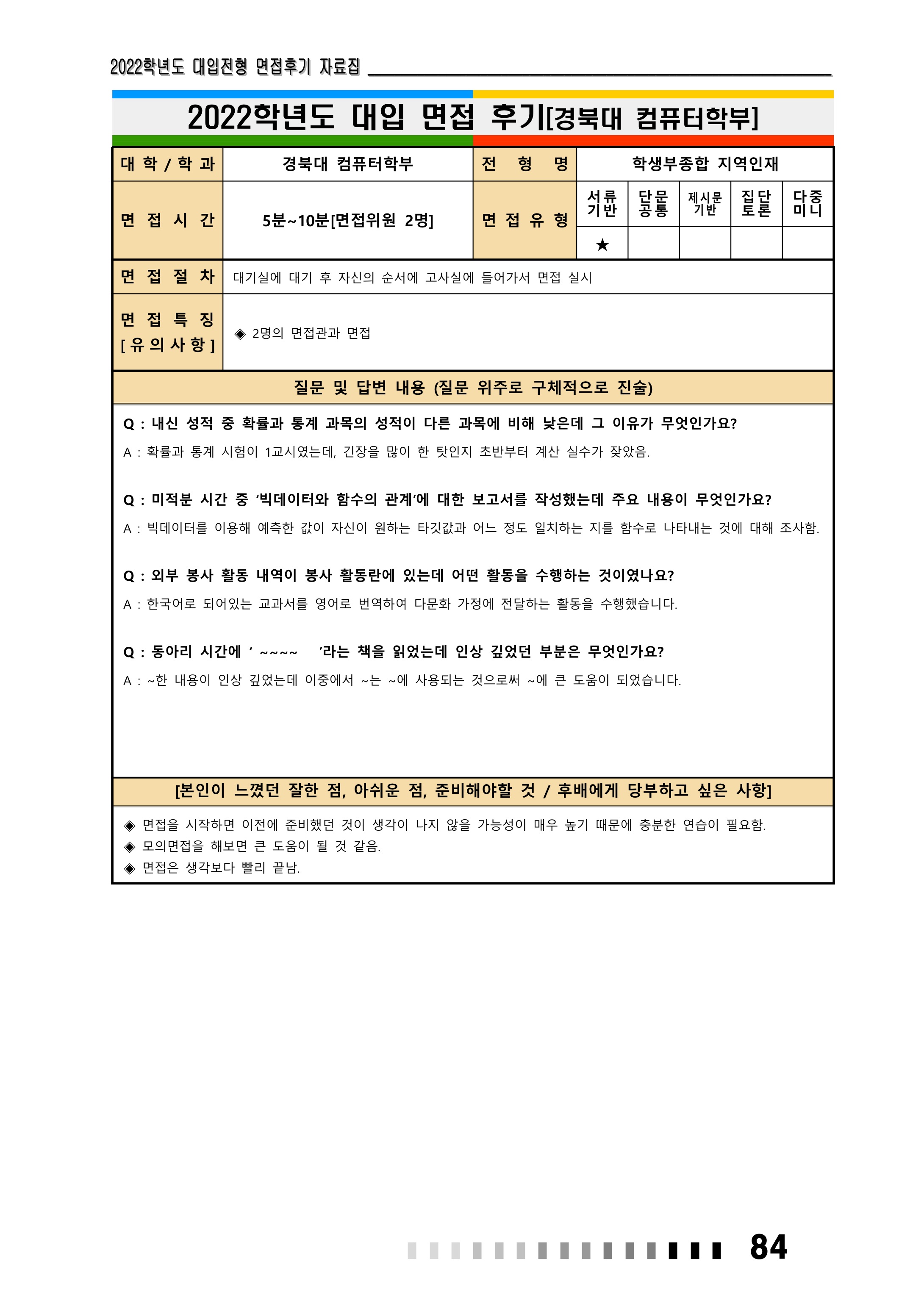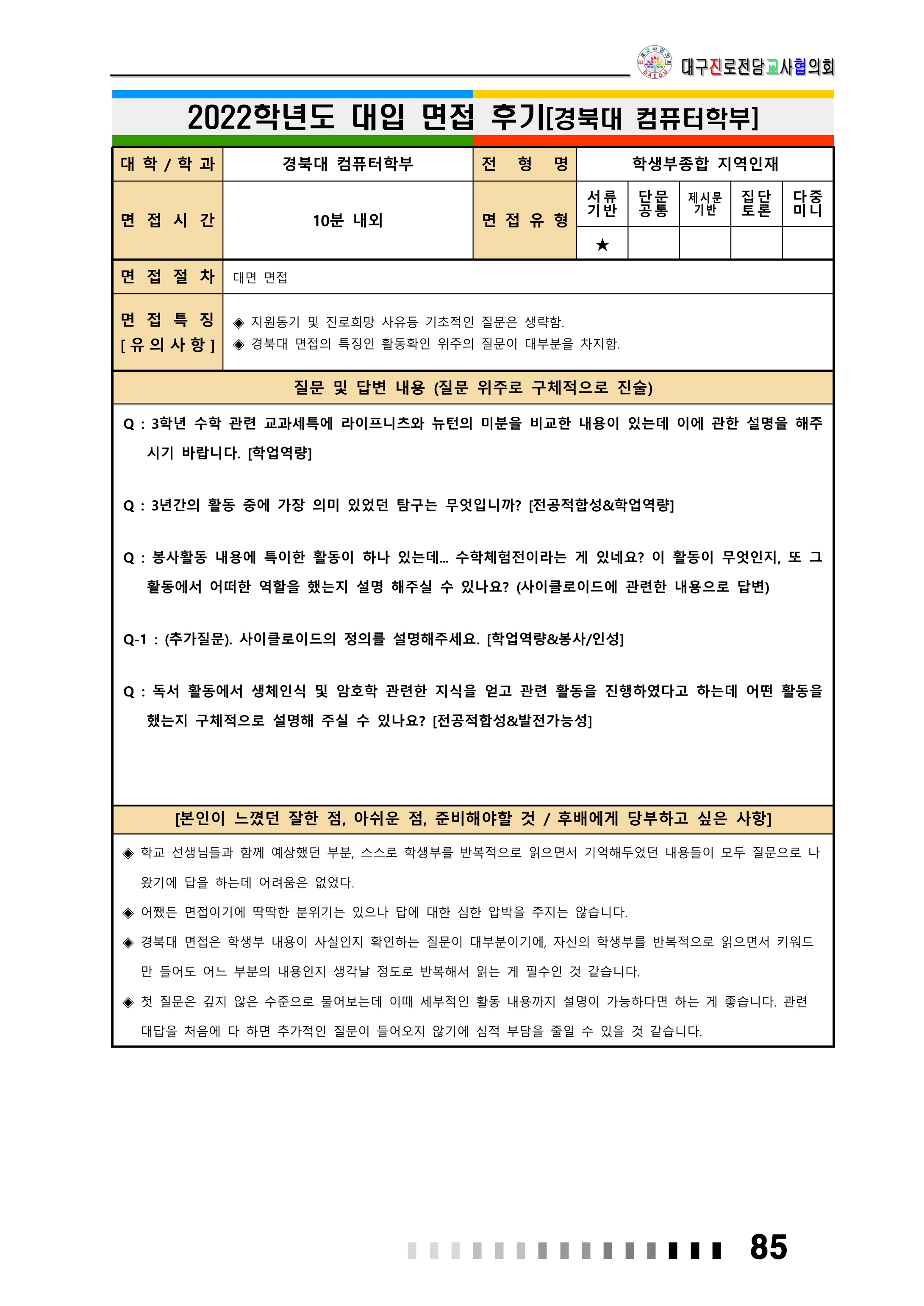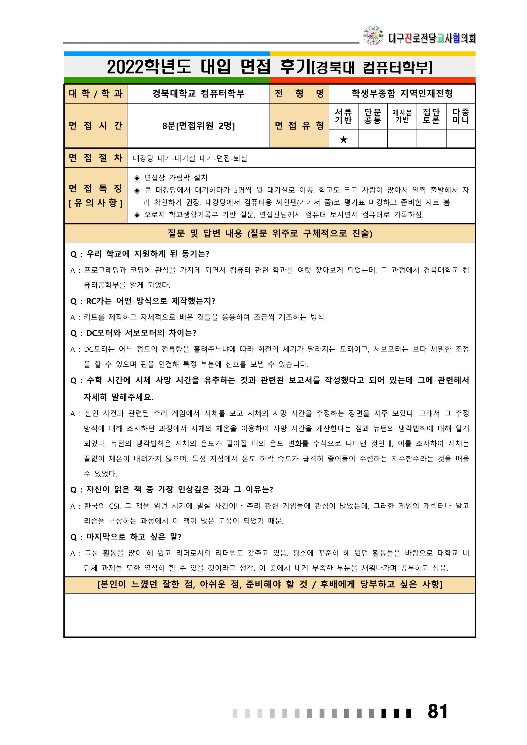 2022학년도 경북대학교 면접 후기51 - 컴퓨터학부