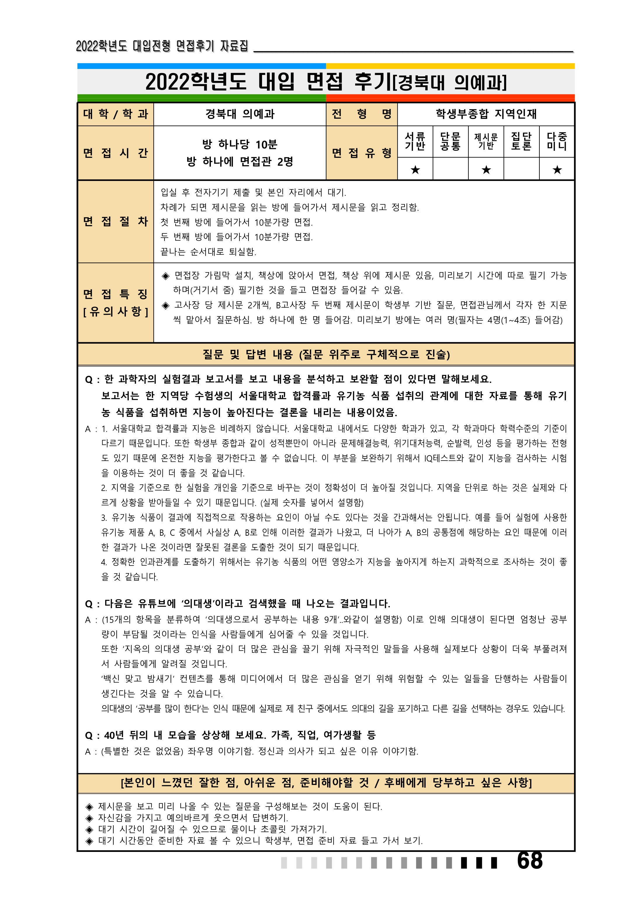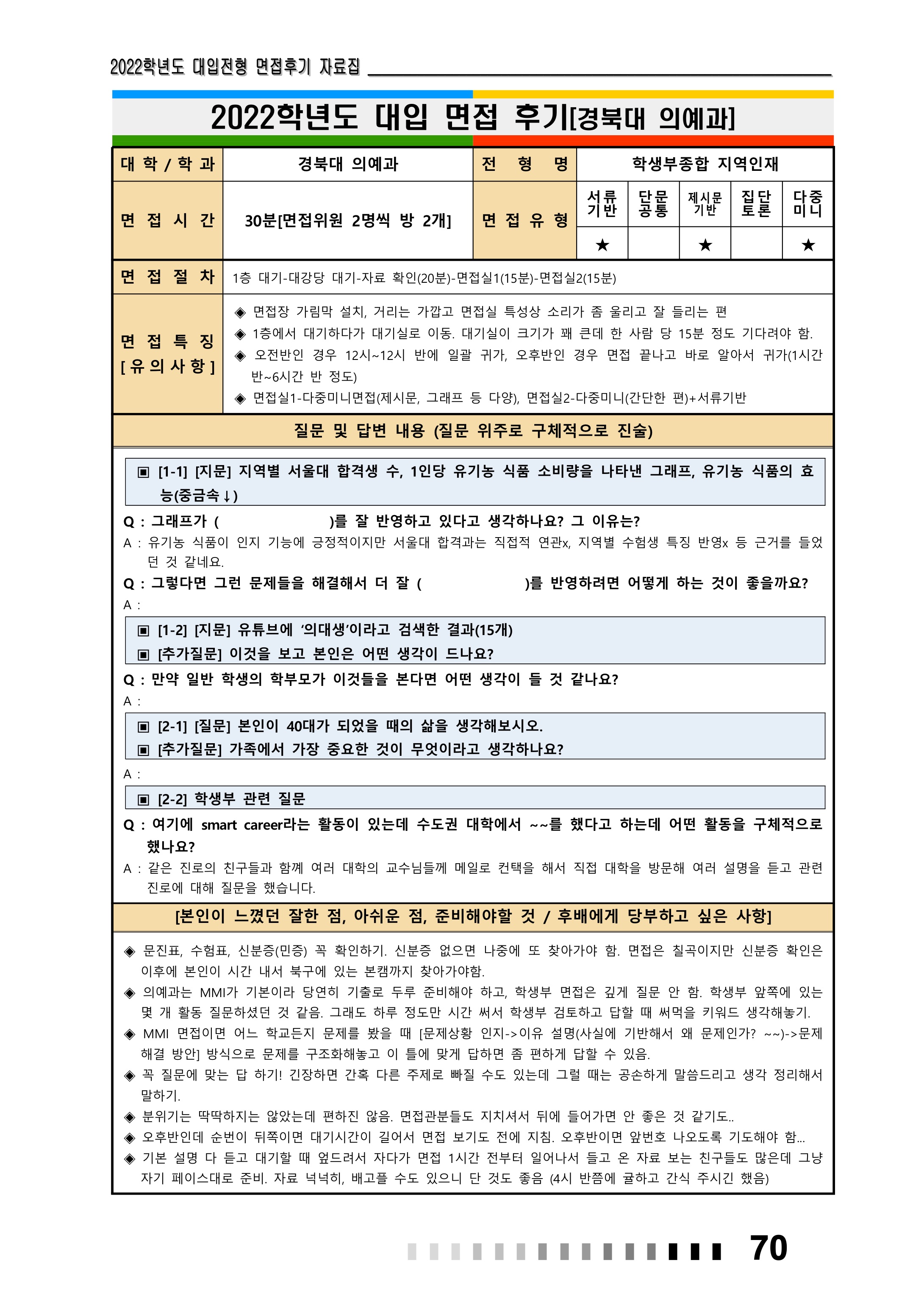 2022학년도 경북대학교 면접 후기29 - 의예과 2022학년도 경북대학교 면접 후기30 - 의예과
