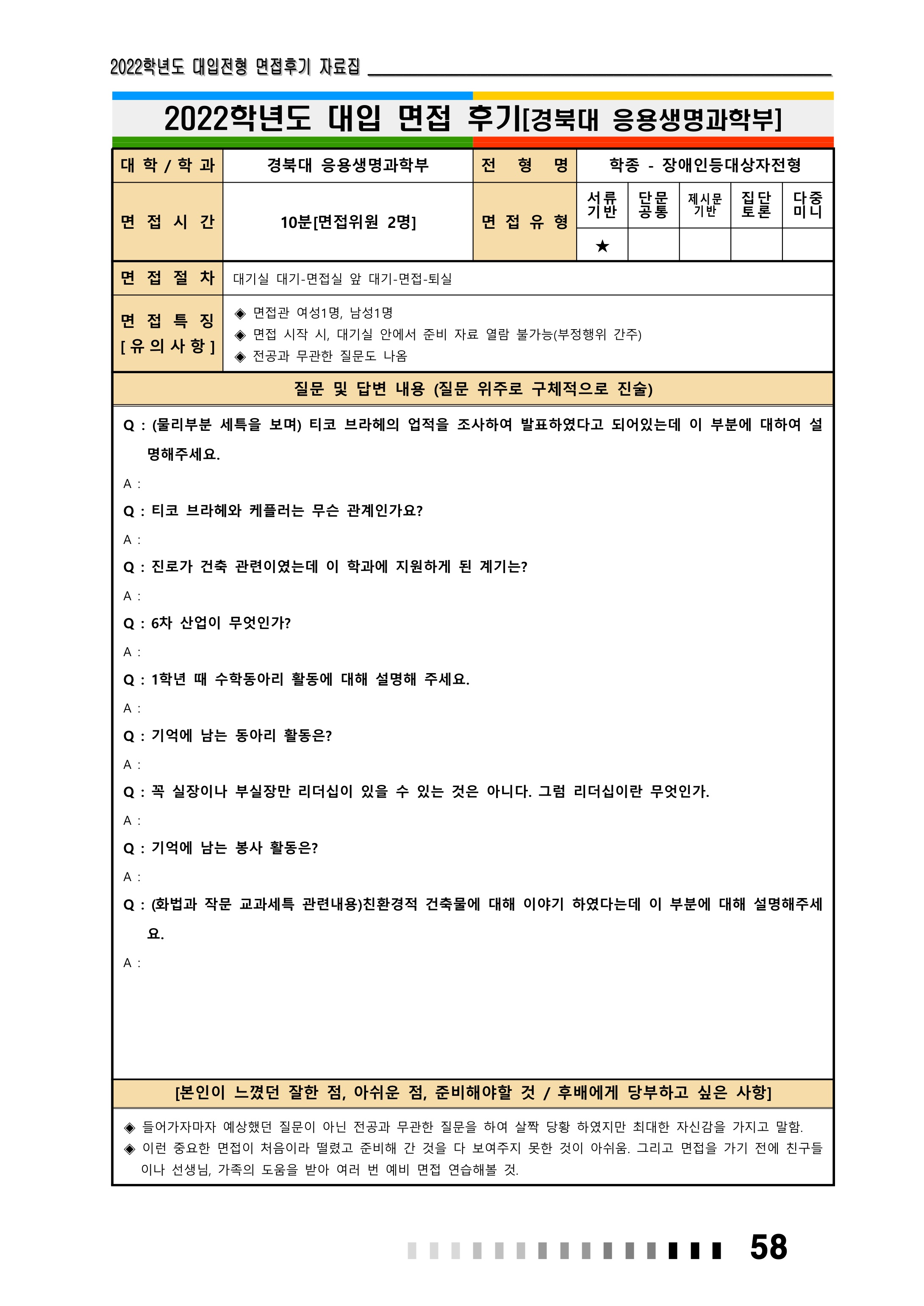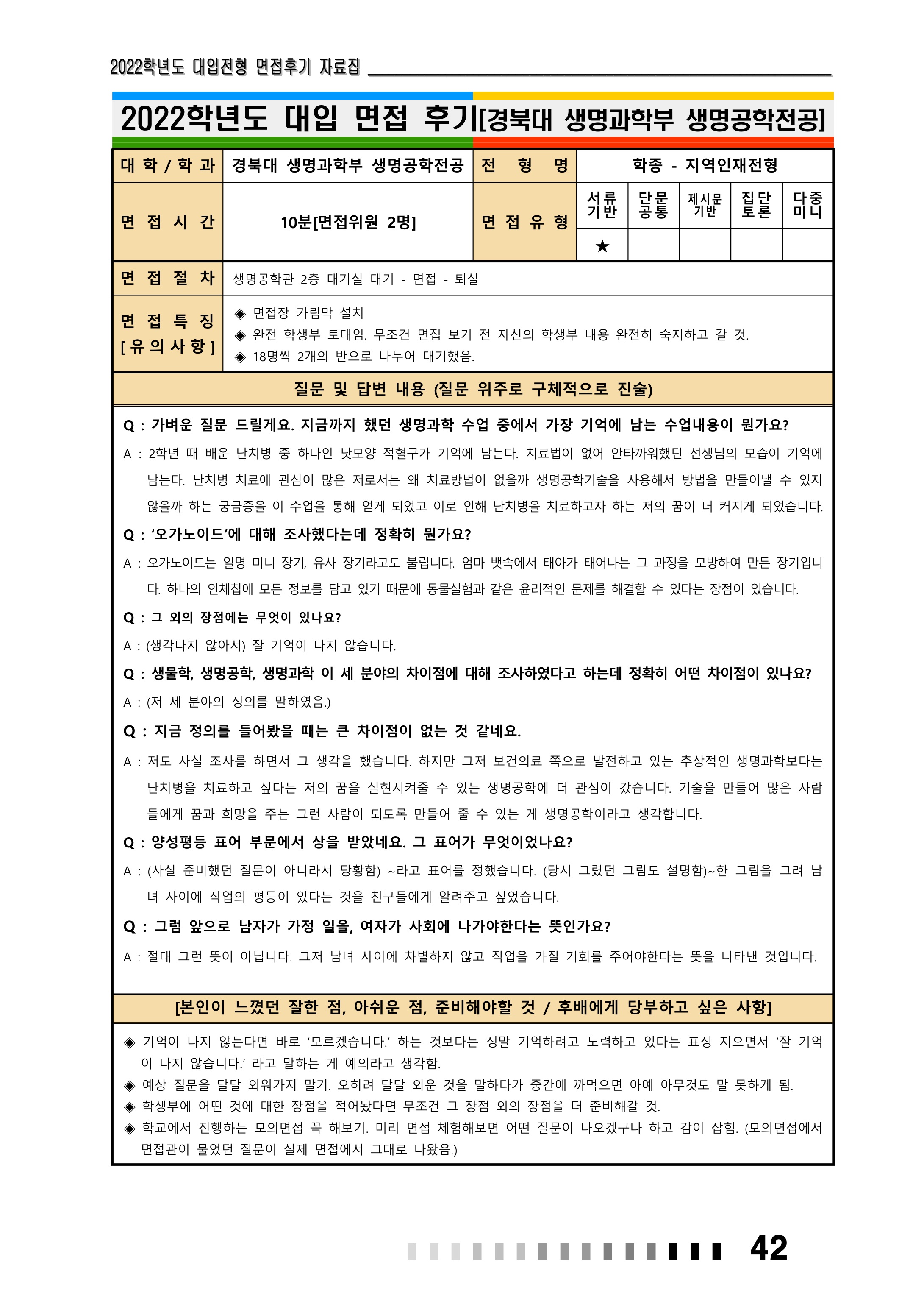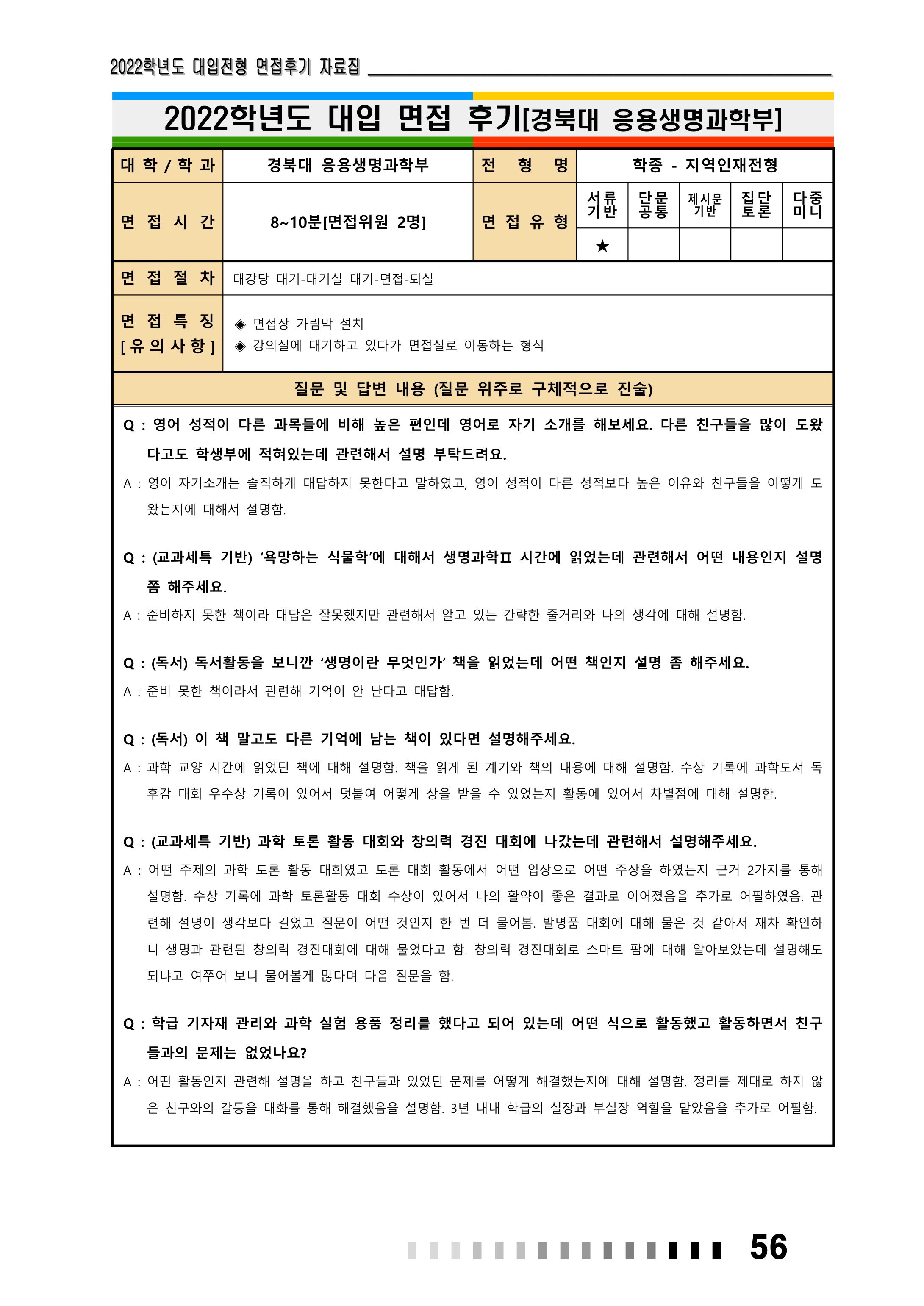 2022학년도 경북대학교 면접 후기25 - 응용생명과학부