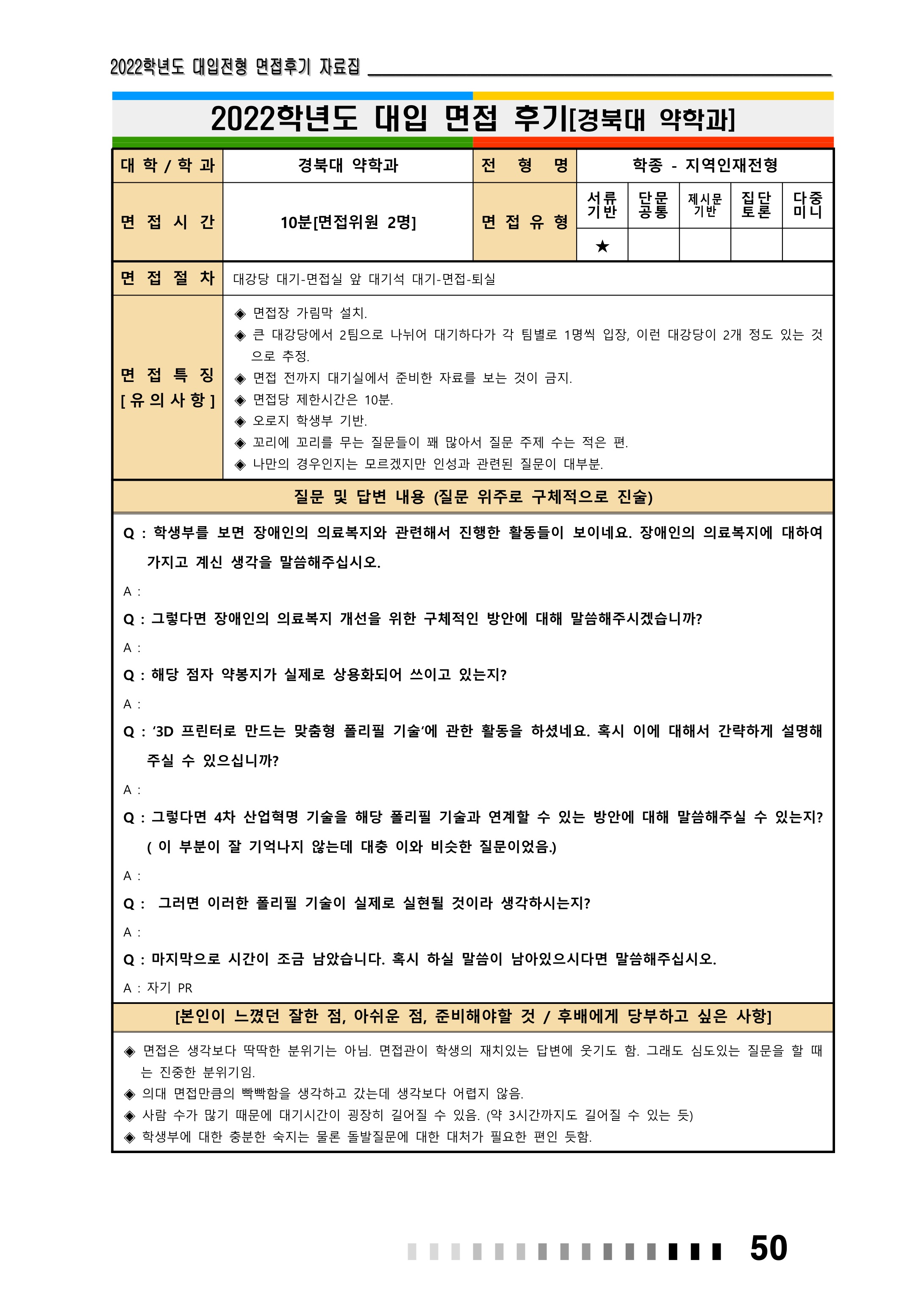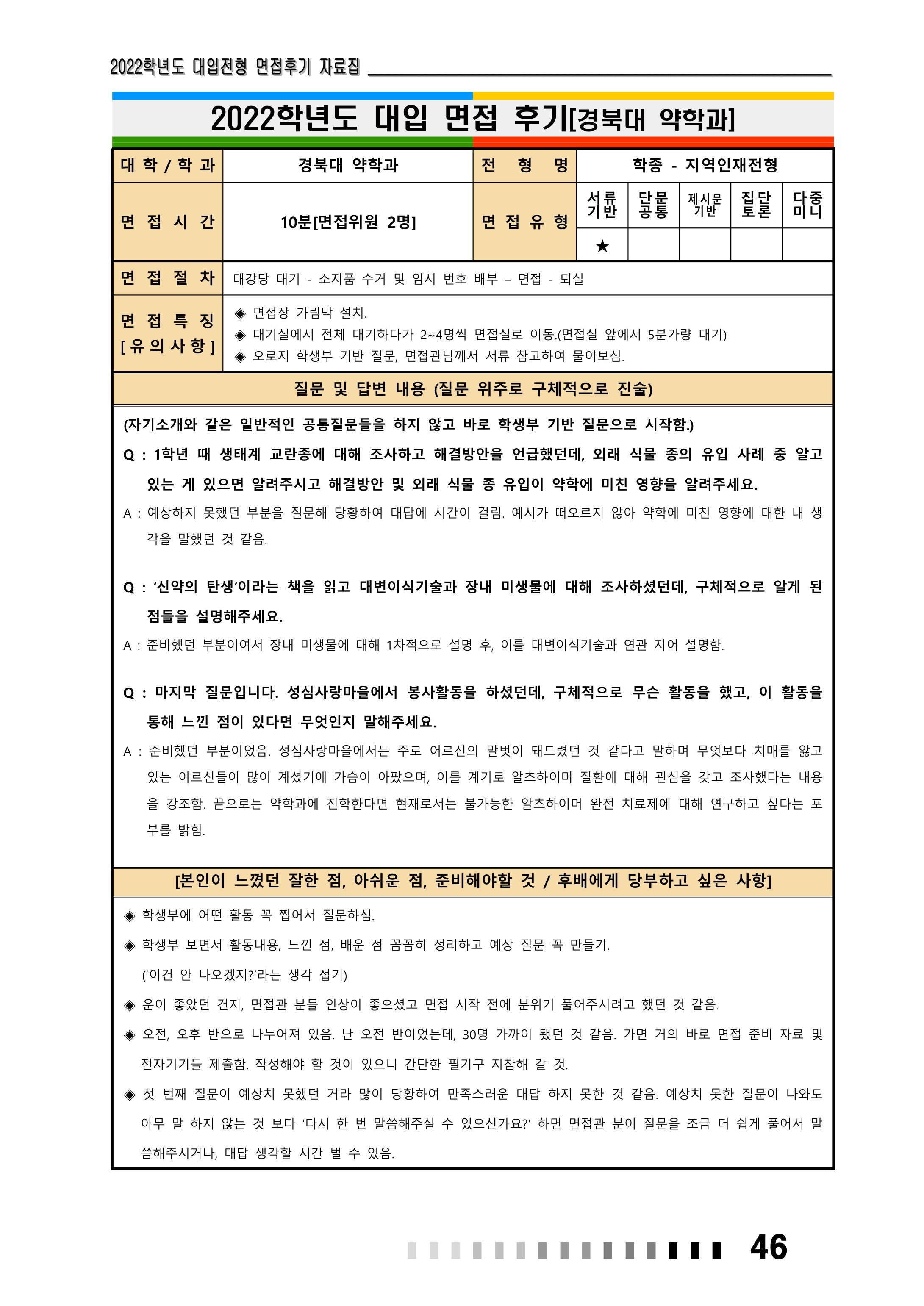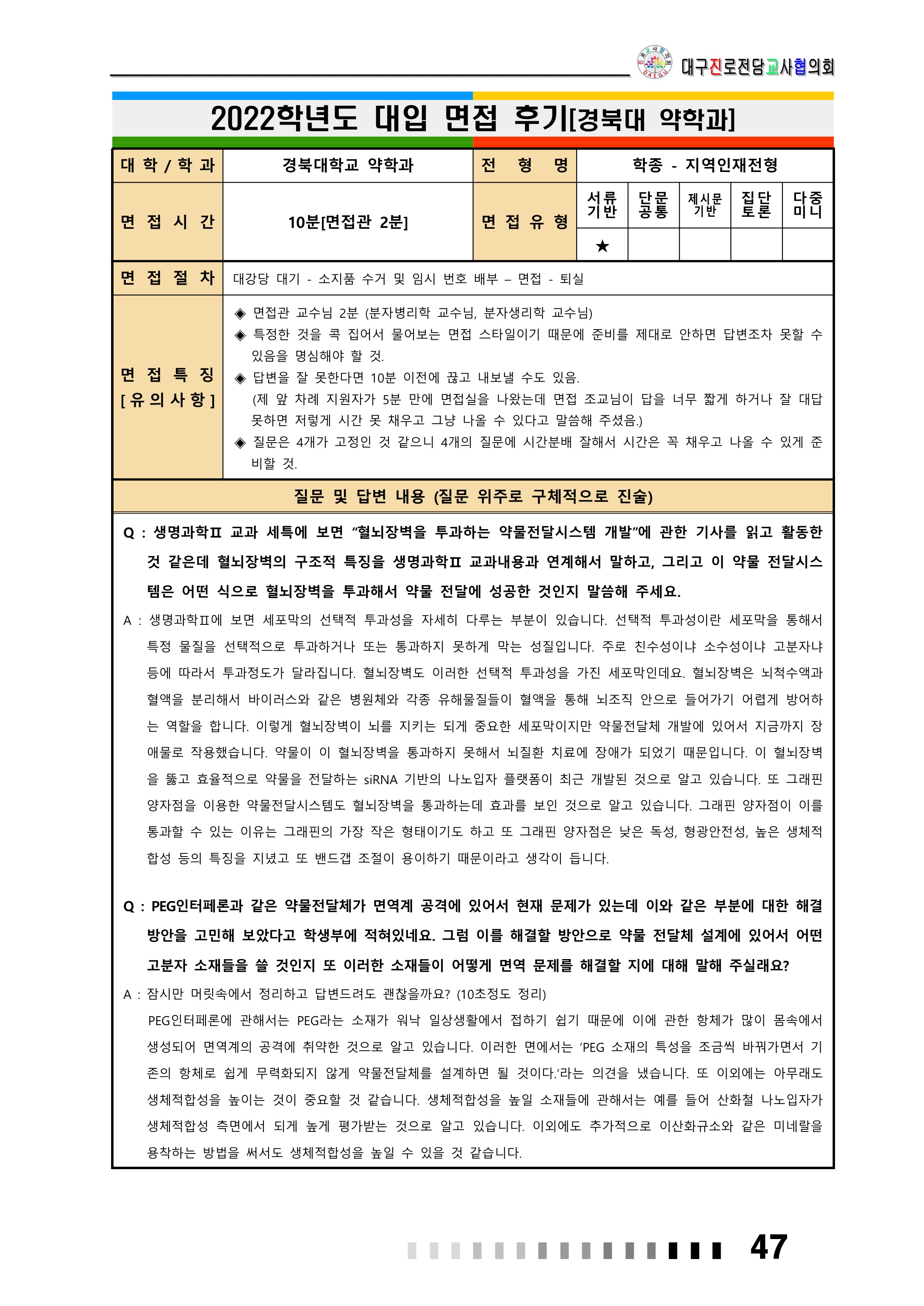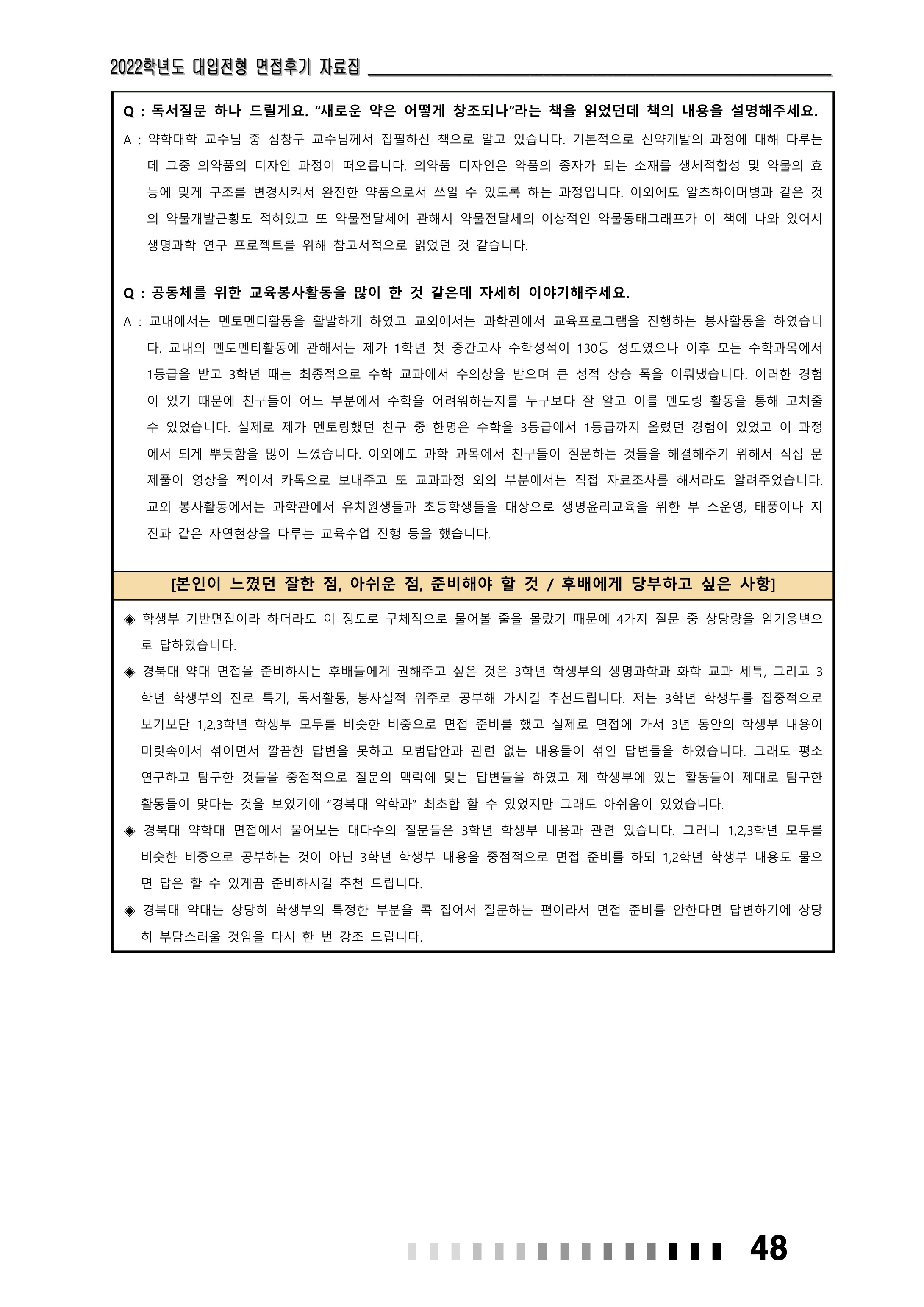 2022학년도 경북대학교 면접 후기19 - 약학과
