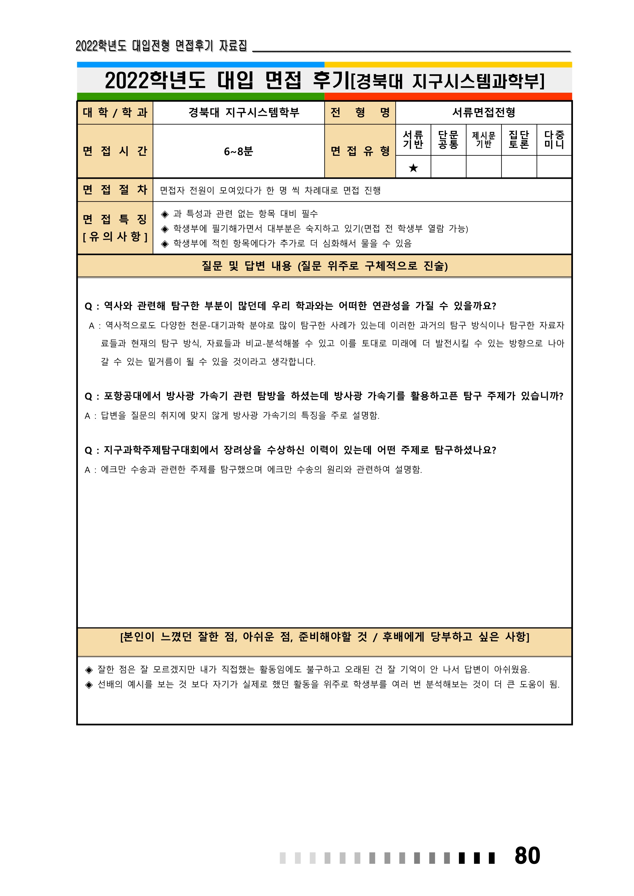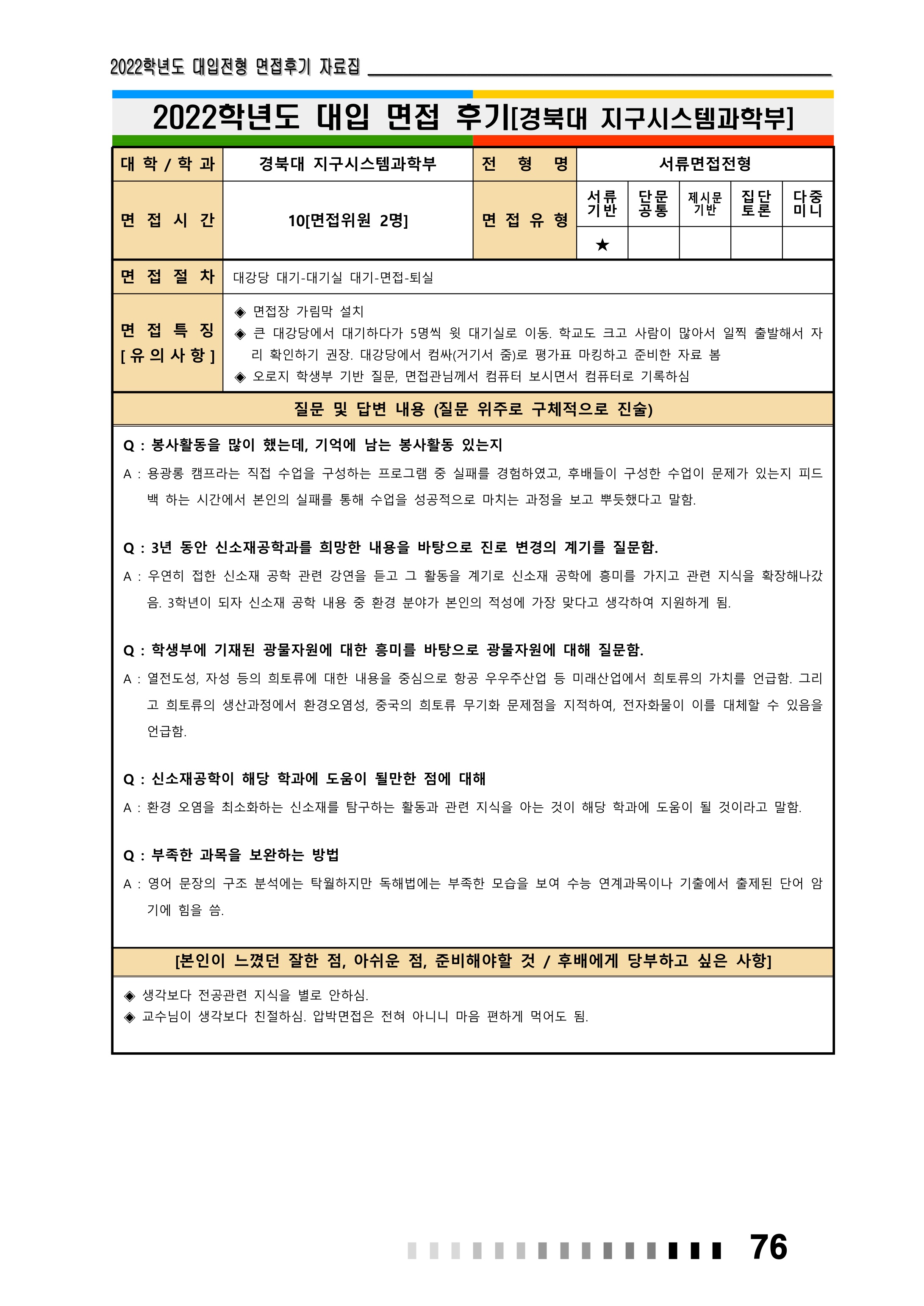 2022학년도 경북대학교 면접 후기42 - 지구시스템과학부 2022학년도 경북대학교 면접 후기43 - 지구시스템과학부