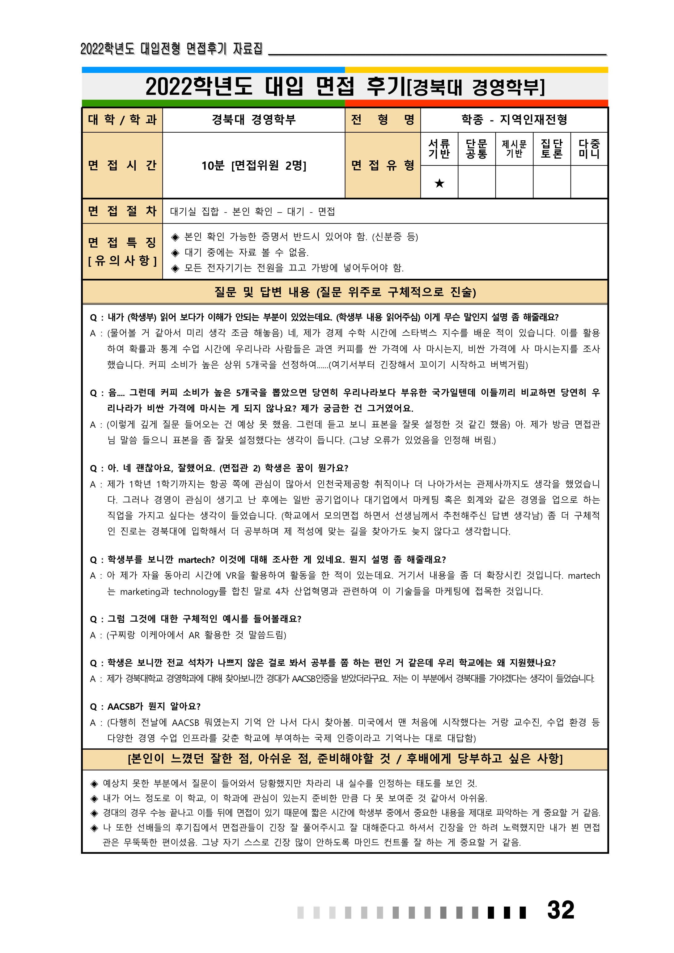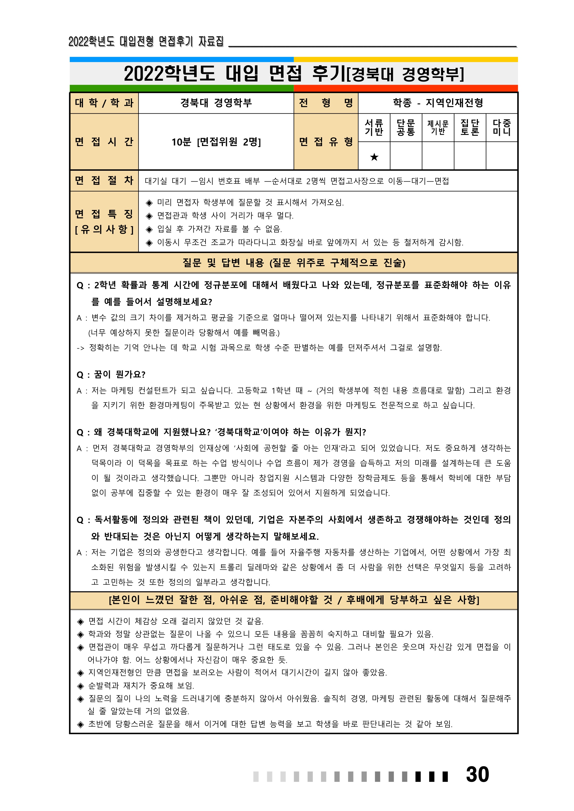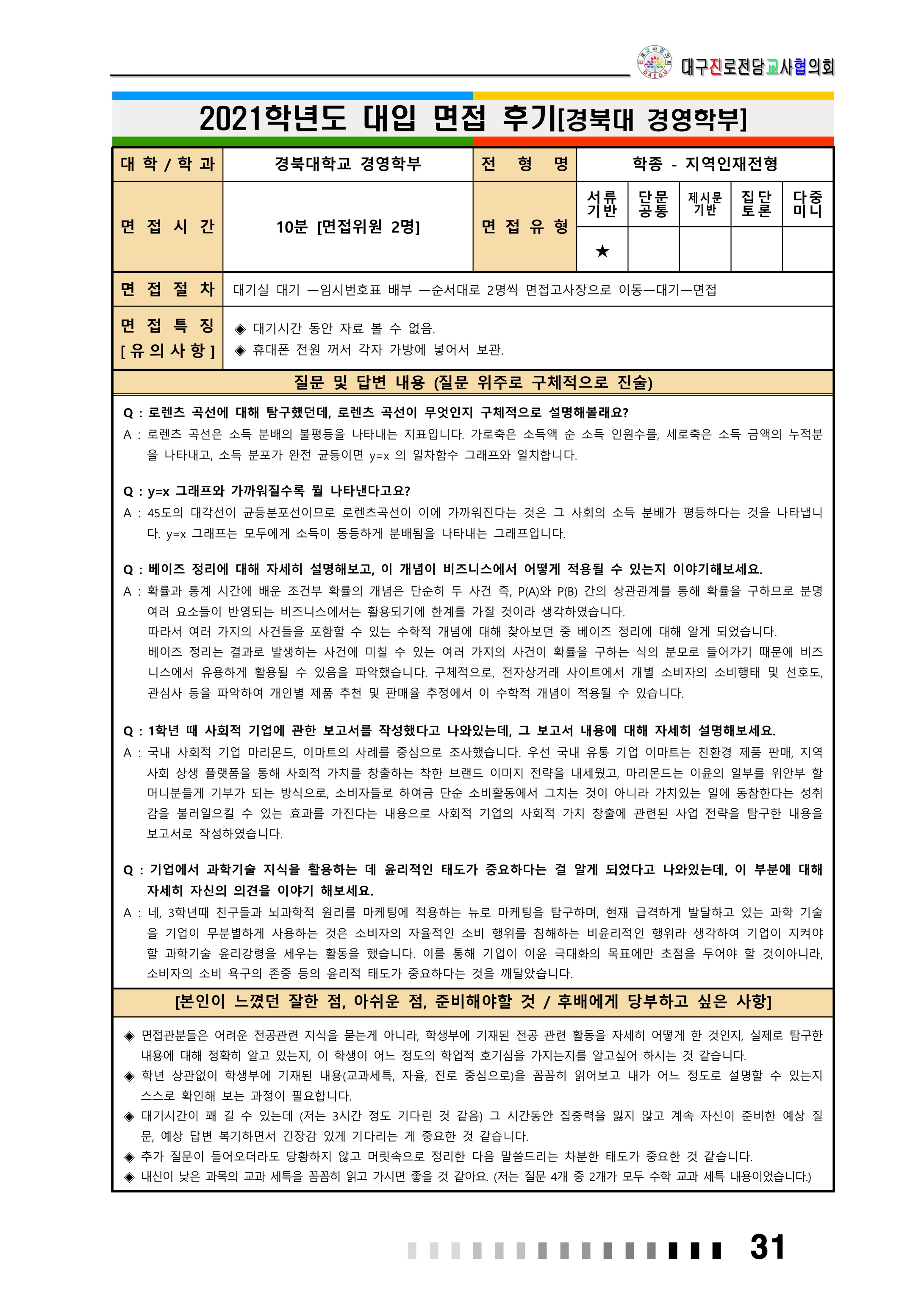 2022학년도 경북대학교 면접 후기3 - 경영학부 2022학년도 경북대학교 면접 후기4 - 경영학부