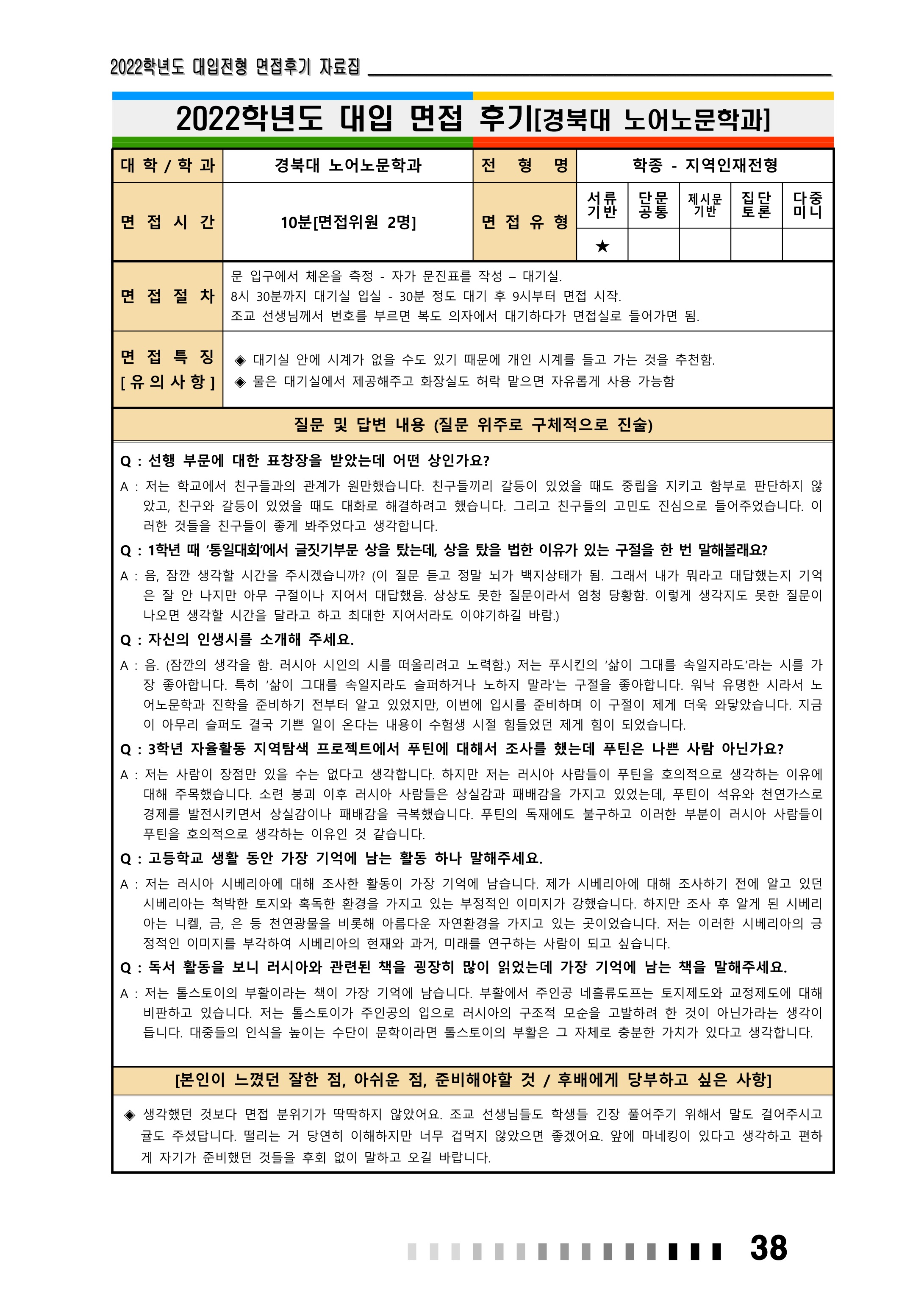 2022학년도 경북대학교 면접 후기9 - 기계공학부 2022학년도 경북대학교 면접 후기10 - 노어노문학과