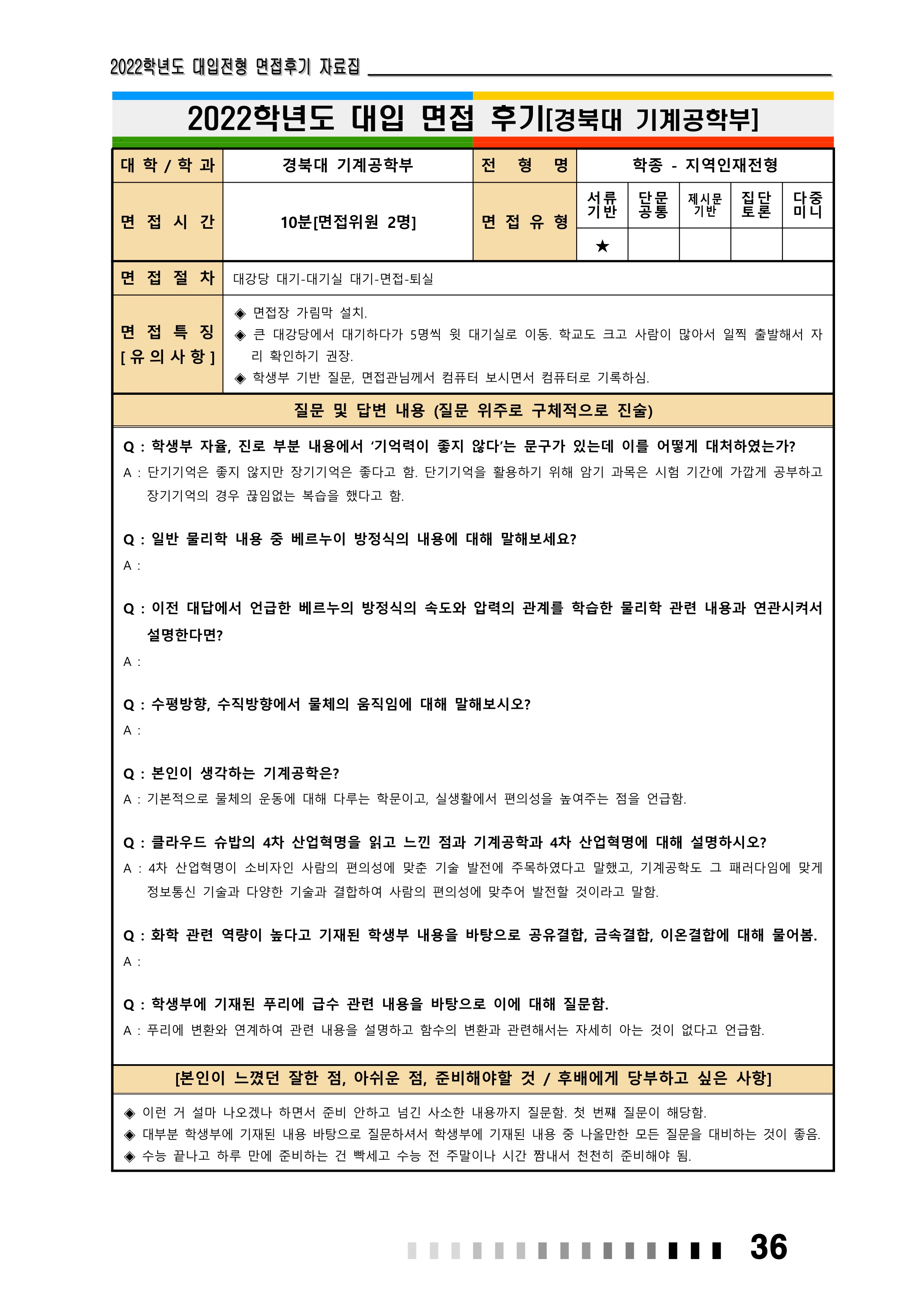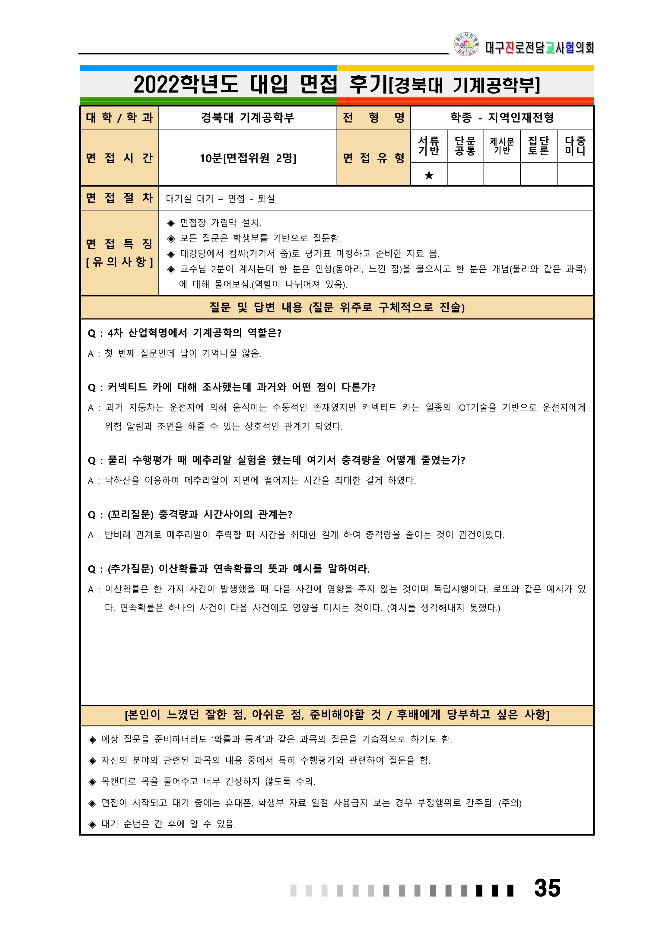 2022학년도 경북대학교 면접 후기7 - 기계공학부 2022학년도 경북대학교 면접 후기8 - 기계공학부