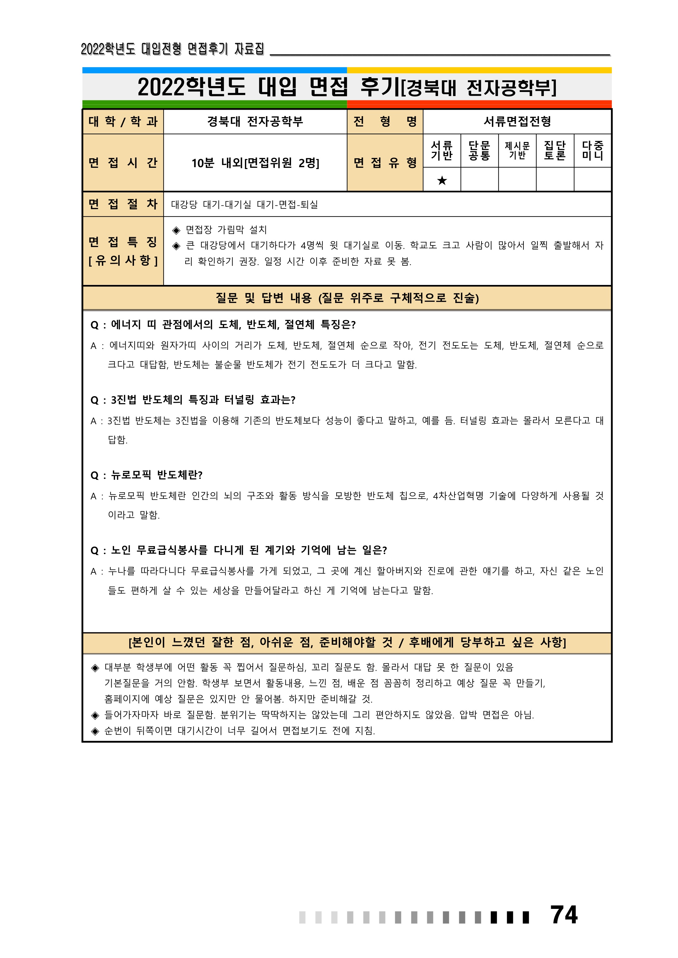 2022학년도 경북대학교 면접 후기38 - 전자공학부 2022학년도 경북대학교 면접 후기39 - 전자공학부