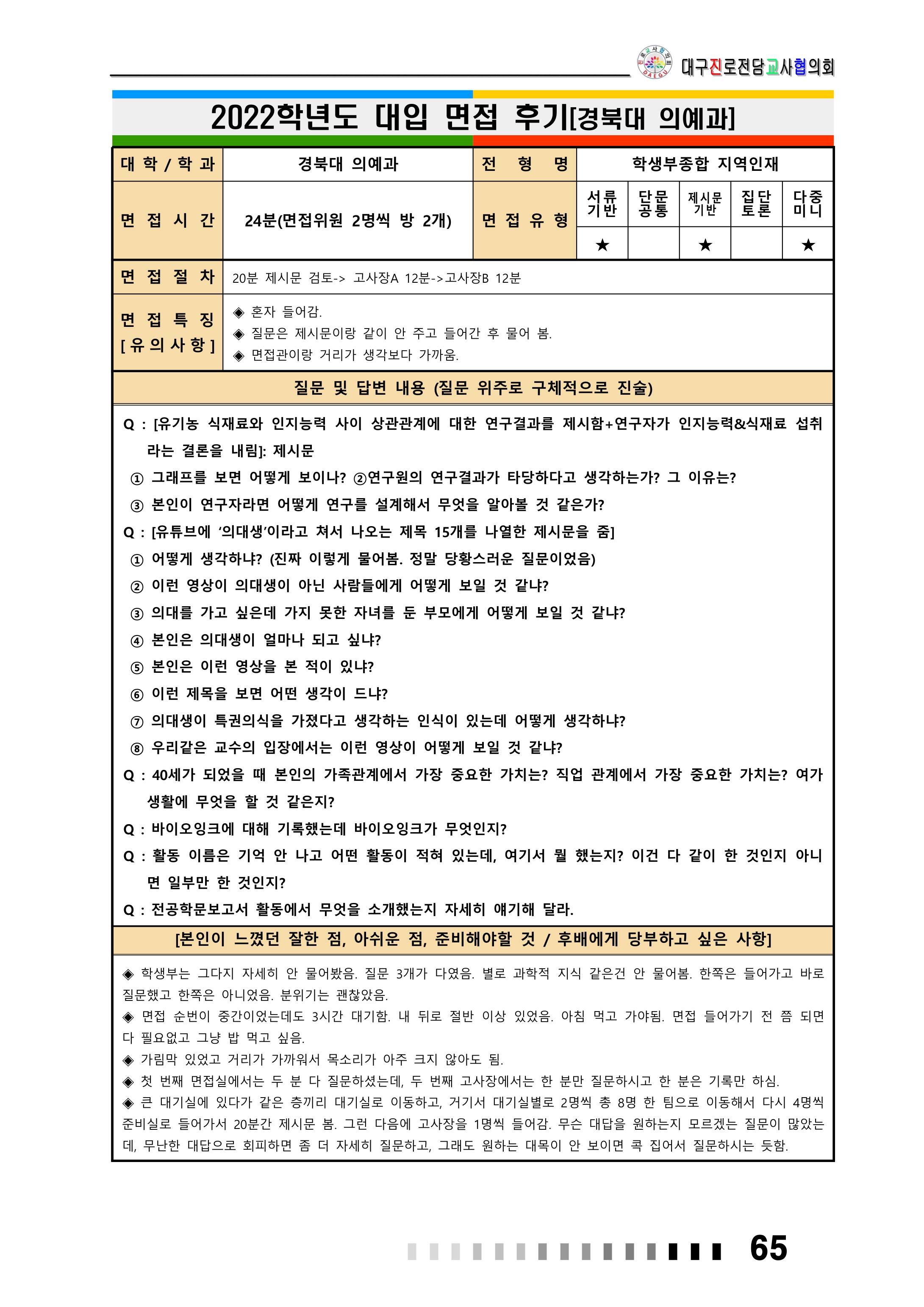2022학년도 경북대학교 면접 후기28 - 의예과