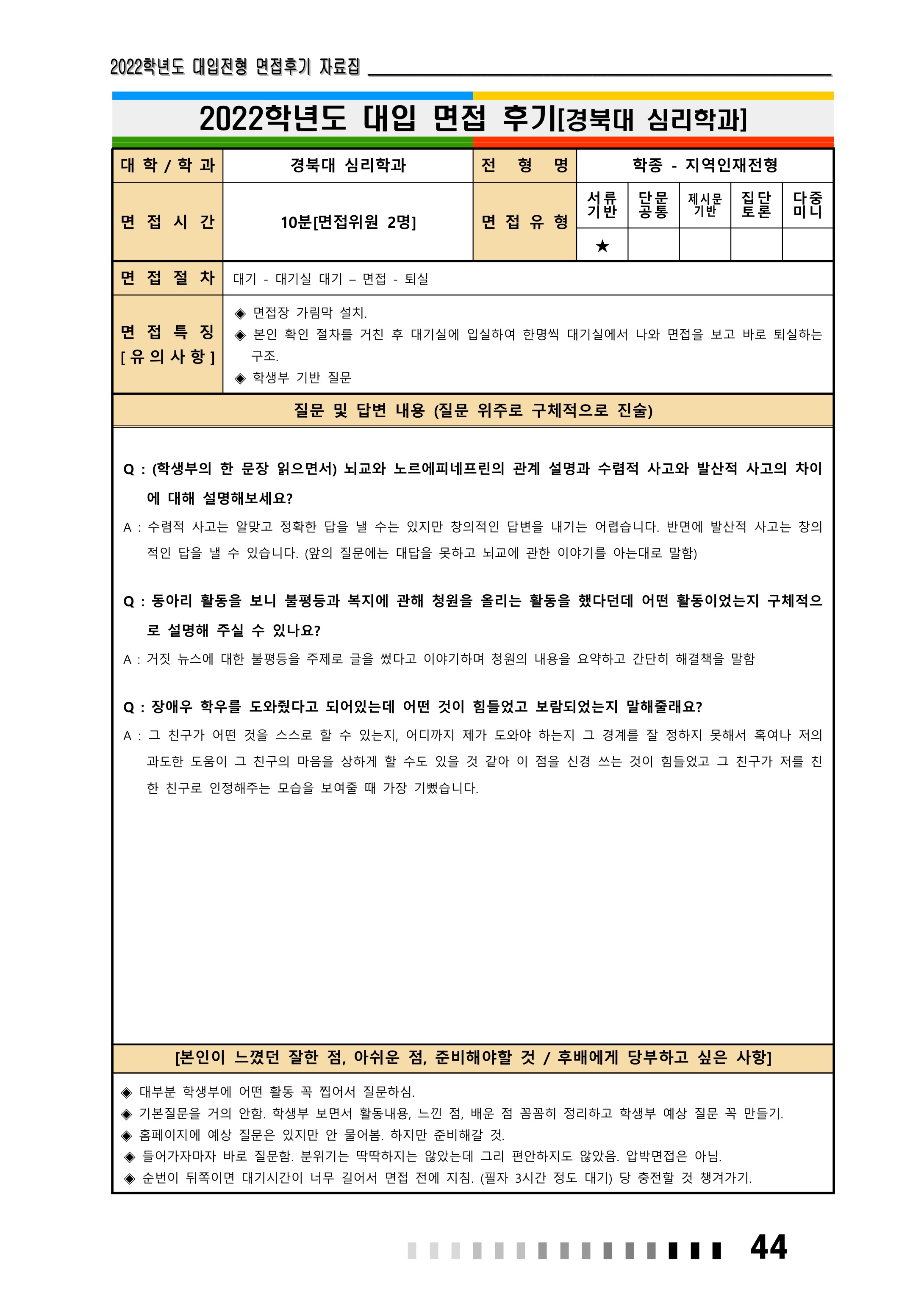 2022학년도 경북대학교 면접 후기16 - 심리학과 2022학년도 경북대학교 면접 후기17 - 약학과