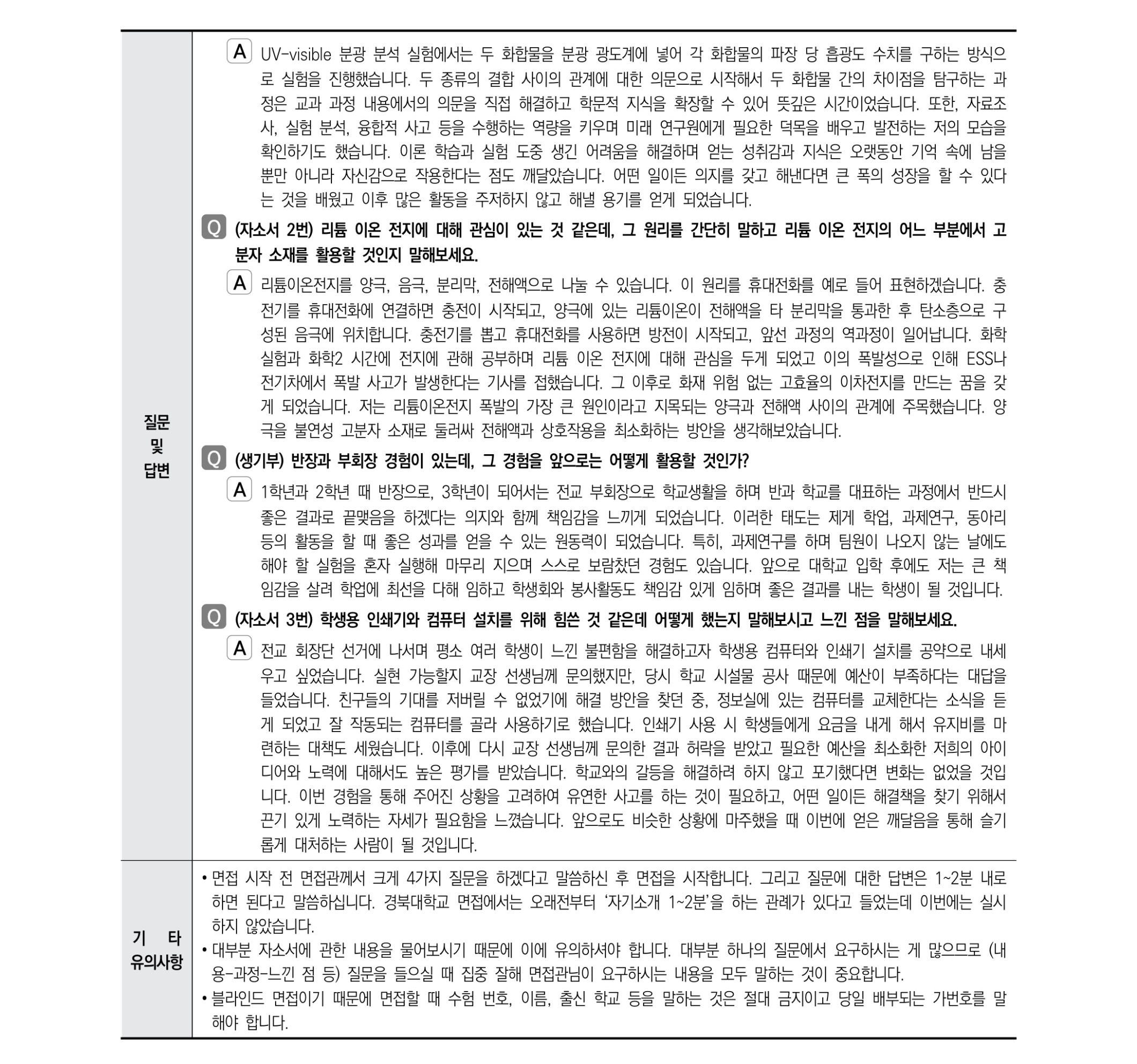 2021학년도 경북대학교 면접 후기82 - 응용화학공학부