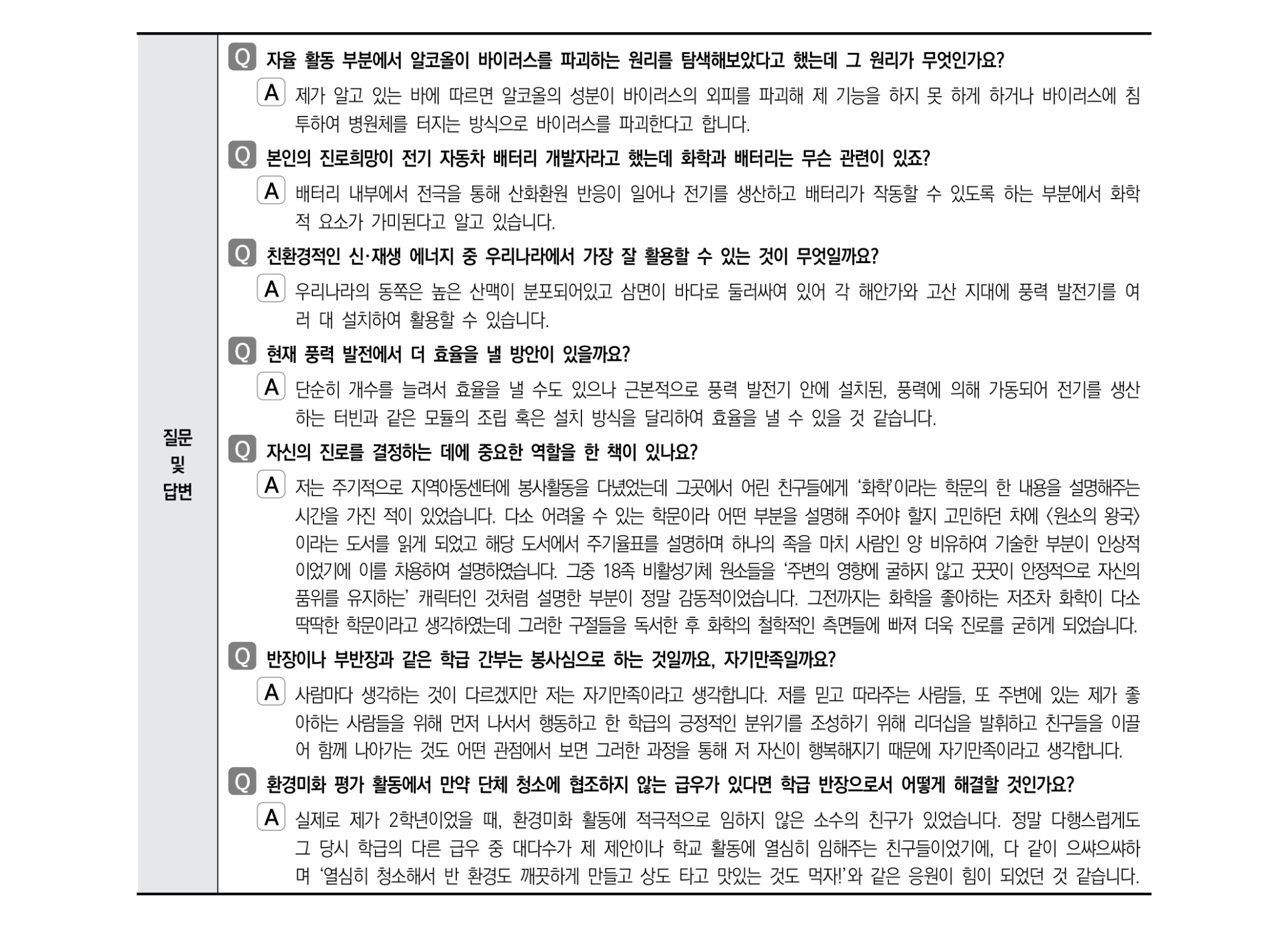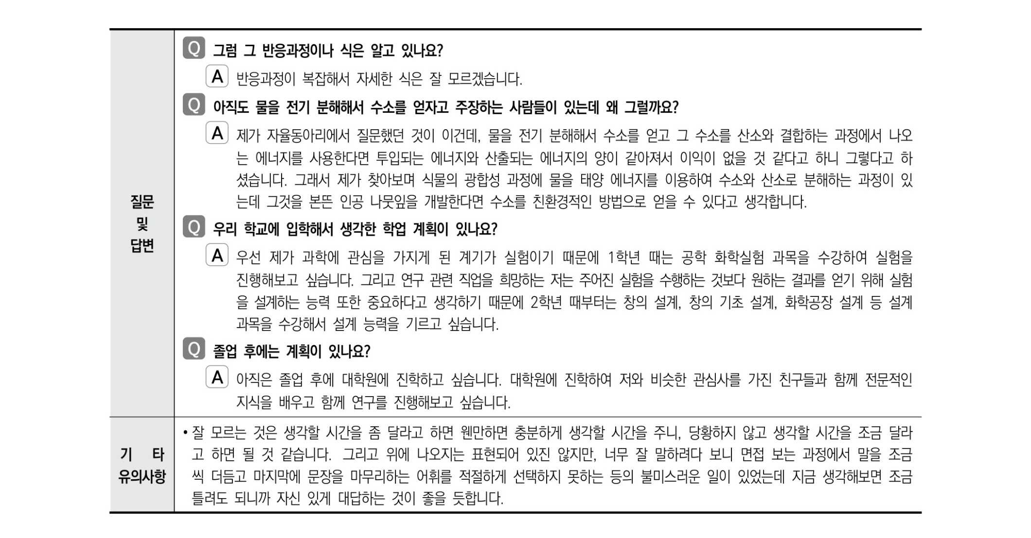 - 네 잘 봤습니다. 성적을 보니까 과학 성적은 높은데 시수는 좀 적은 것 같아요. 시수가 많은 친구들에 비해 자연과학적 지식이 부족할 텐데 어떻게 할 것인가요?건설방재공학부