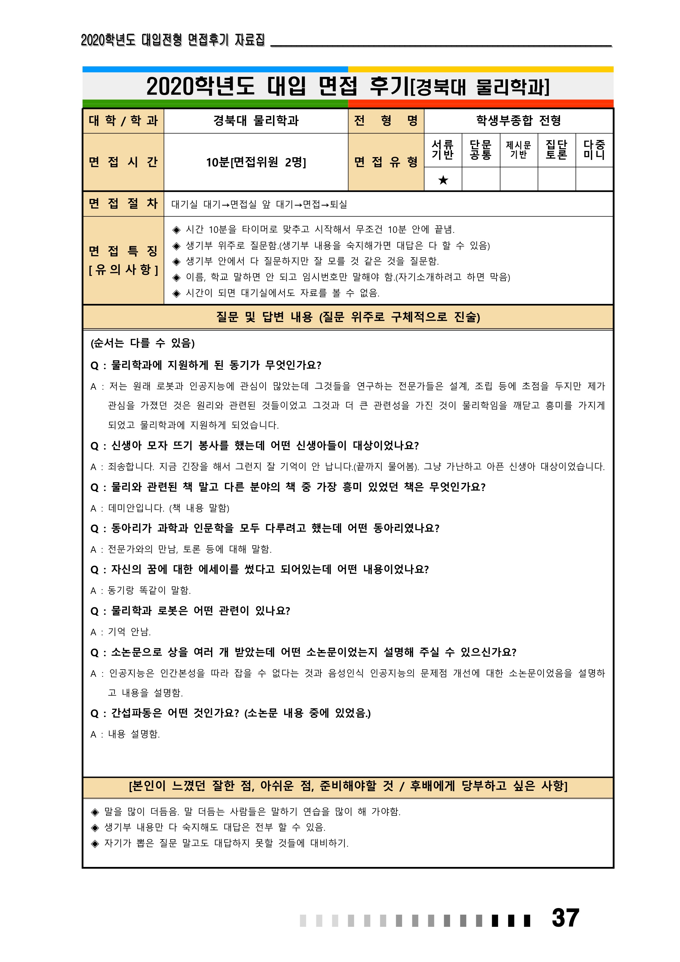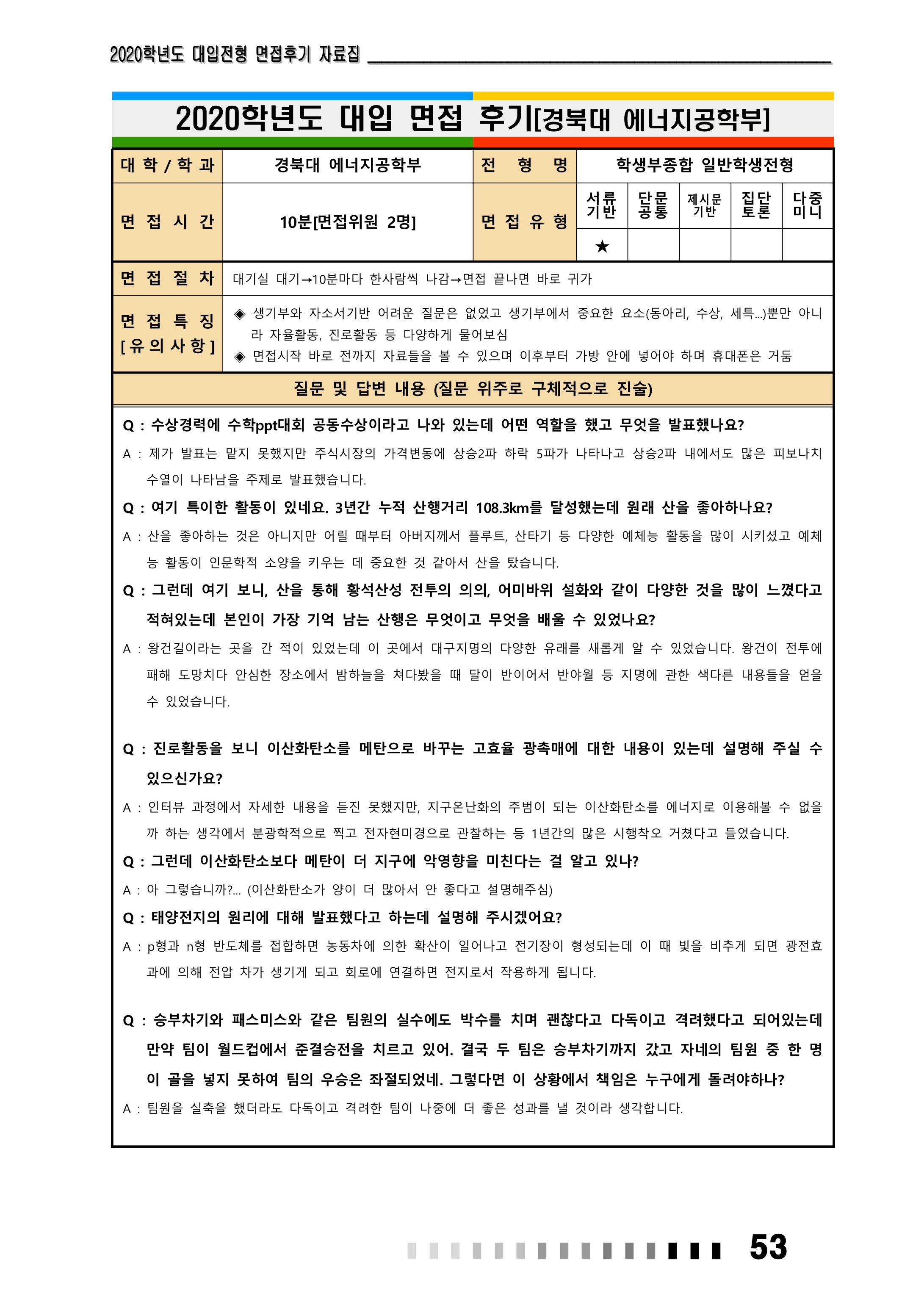 2021학년도 경북대학교 면접 후기65 - 에너지공학부