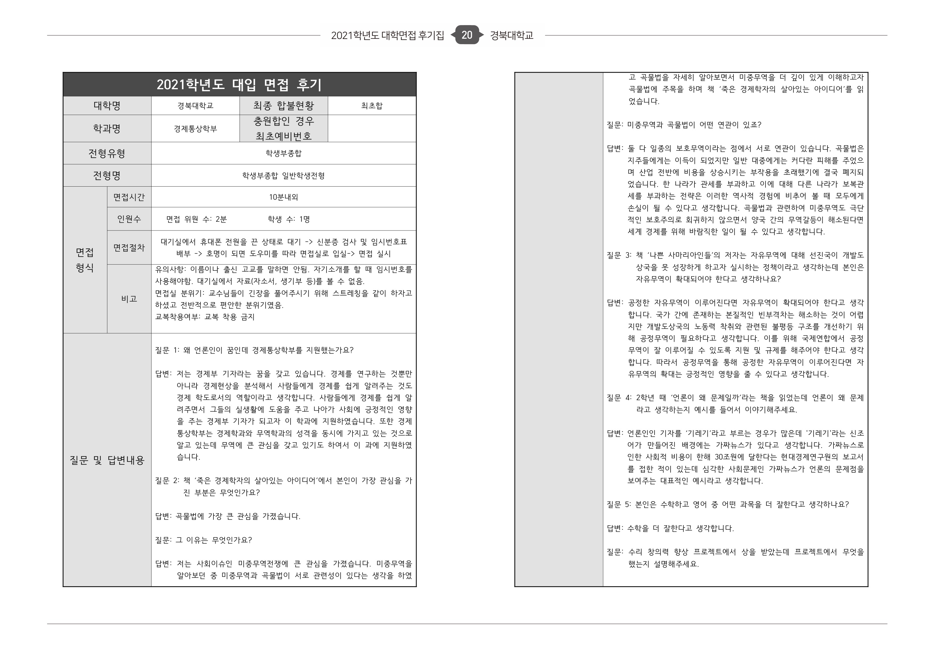 2021학년도 경북대학교 면접 후기89 - 인문사회자율전공