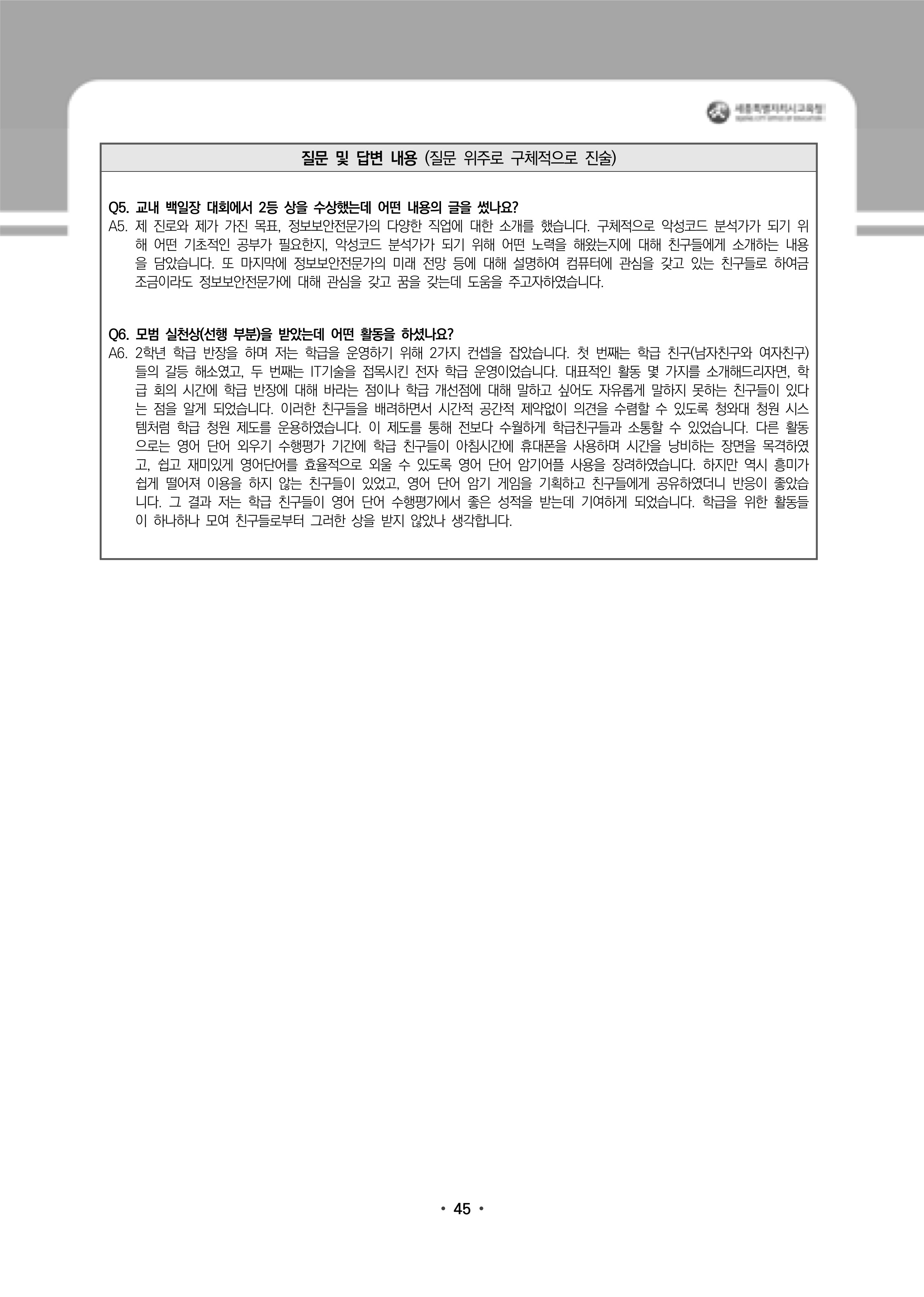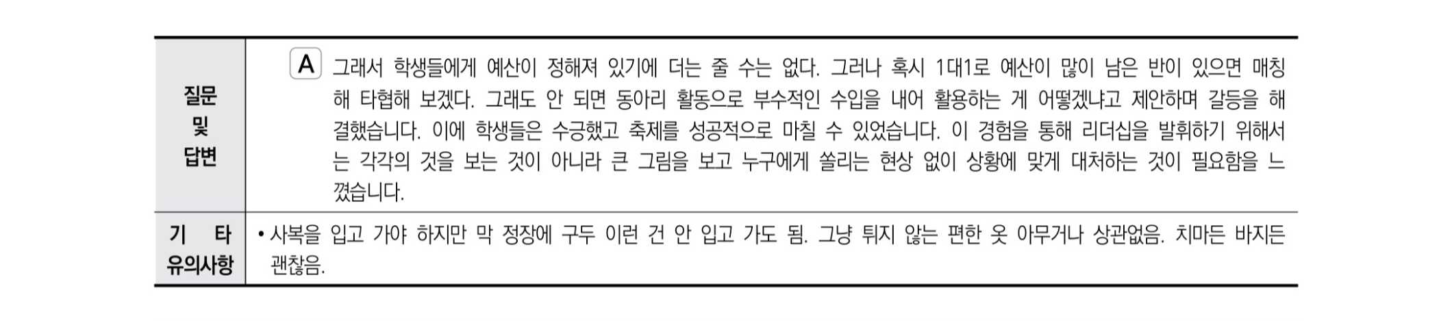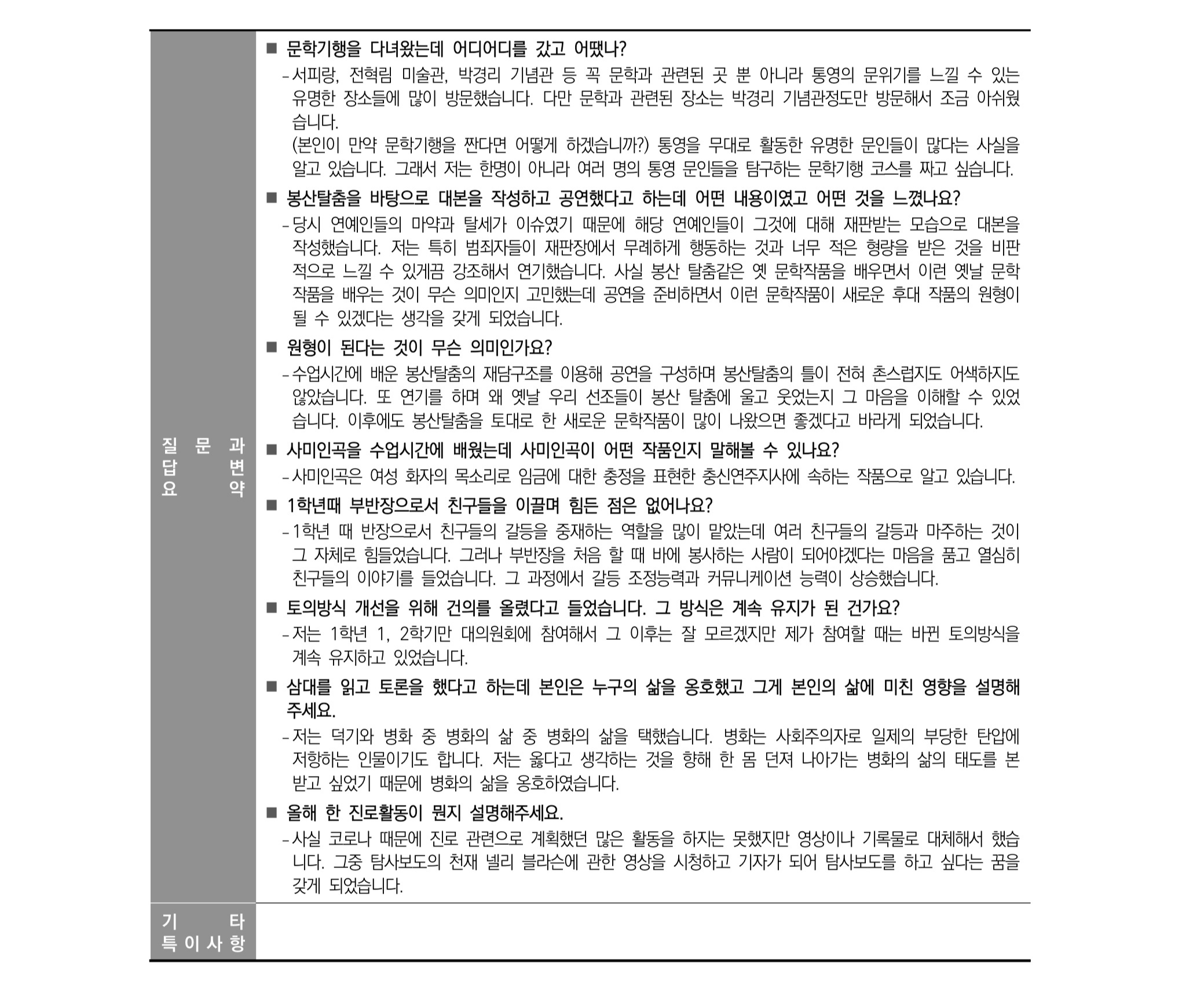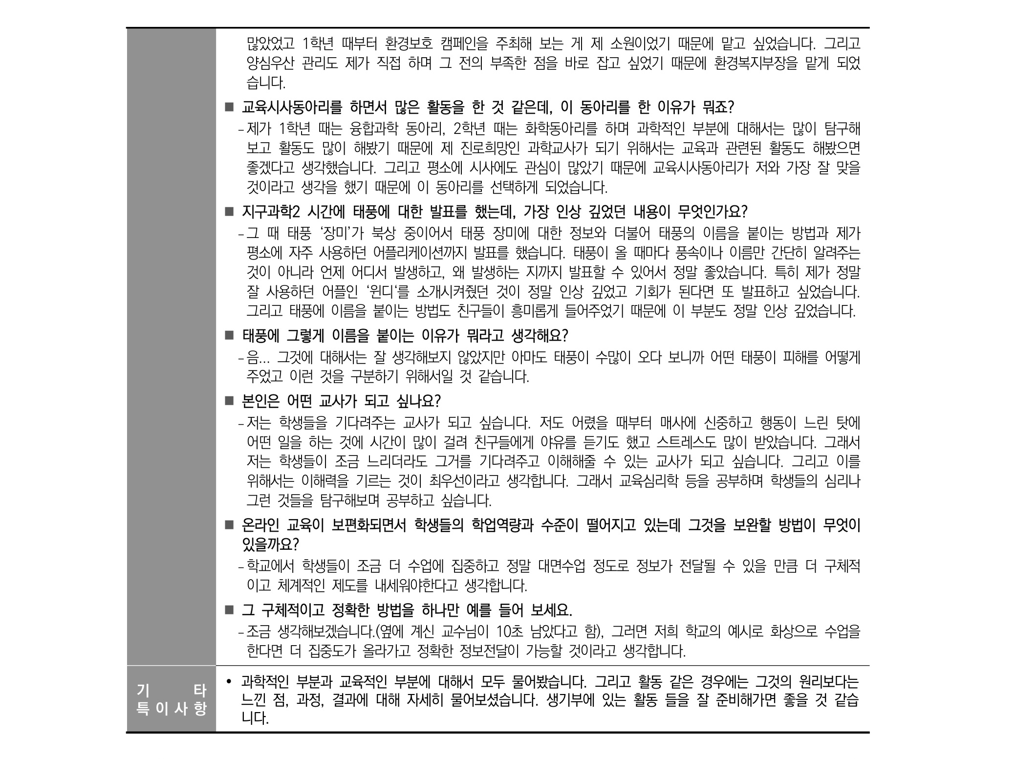 - 가장 인상 깊었던 학교 활동 1가지를 말해 주세요.