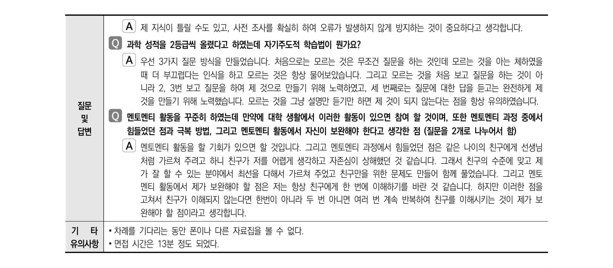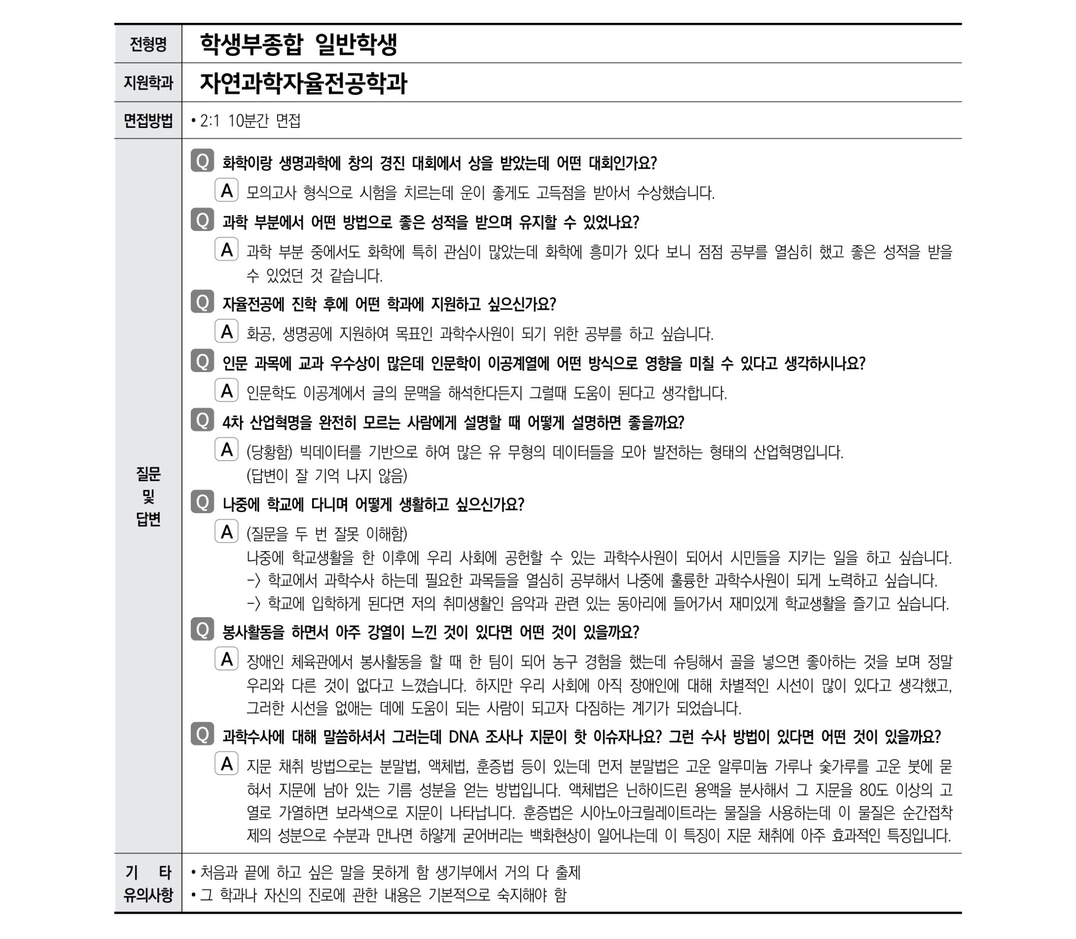 2021학년도 경북대학교 면접 후기96 - 자연과학자율전공