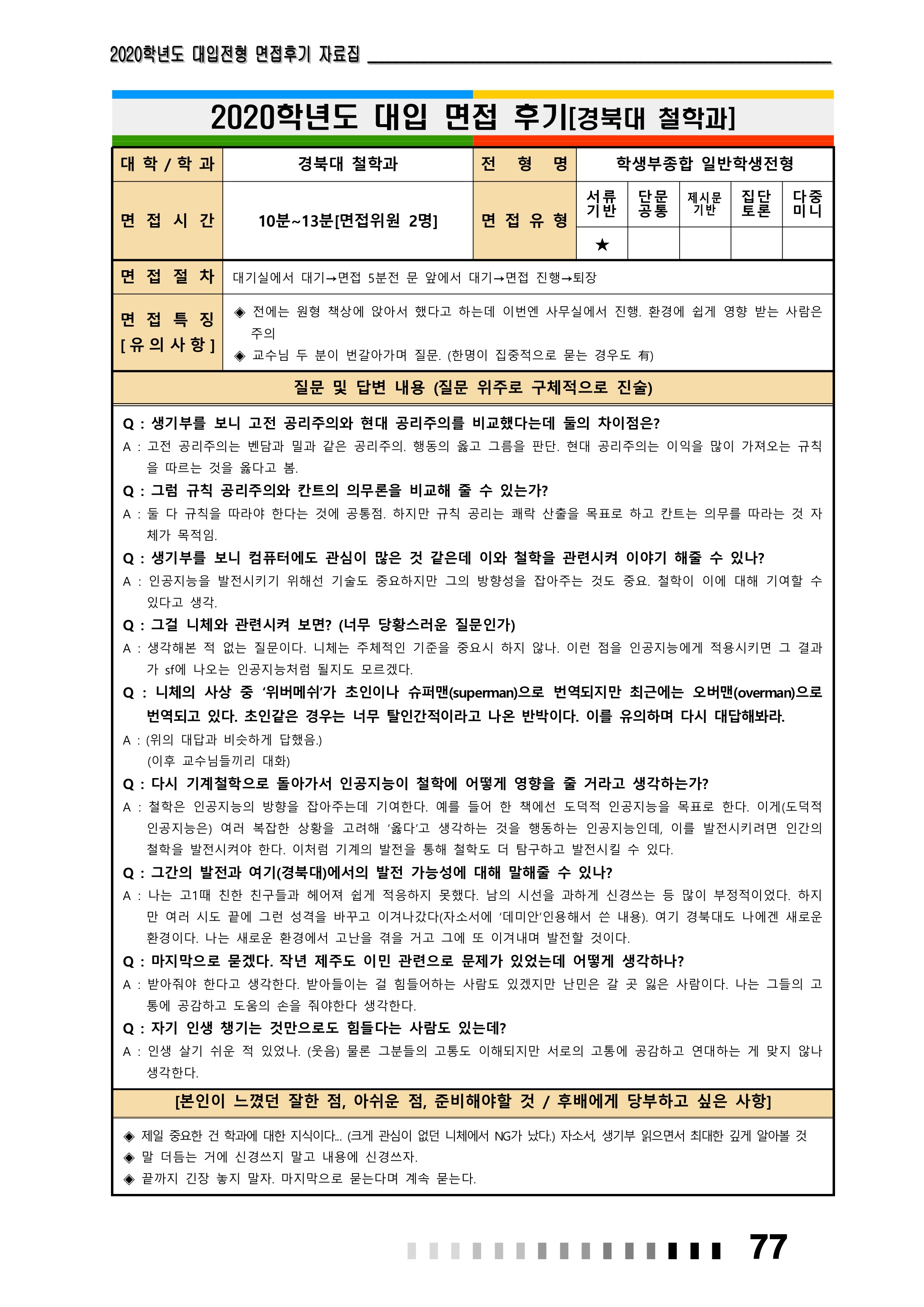 2021학년도 경북대학교 면접 후기110 - 철학과 2021학년도 경북대학교 면접 후기111 - 축산학과