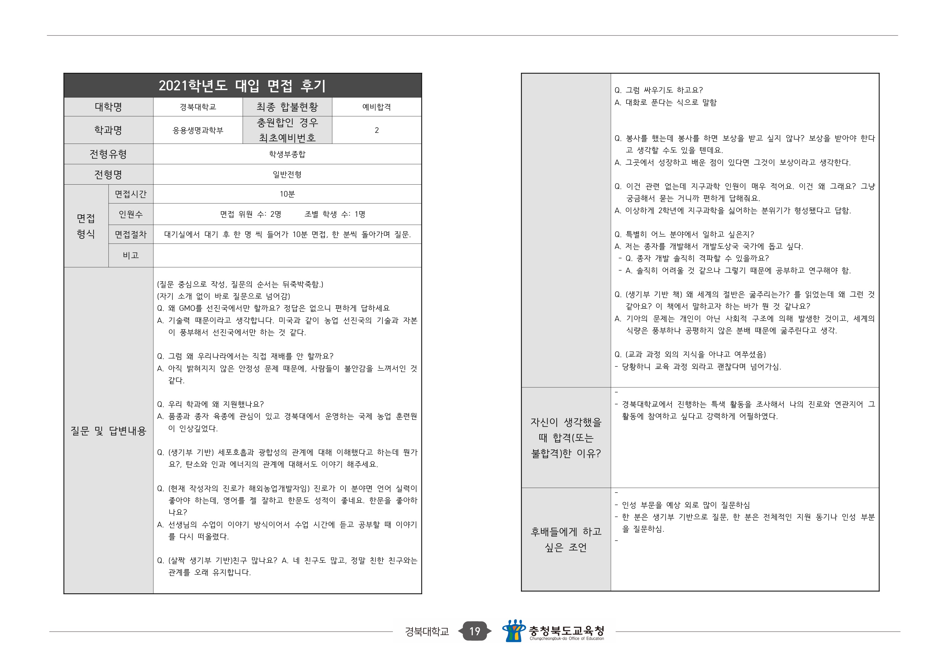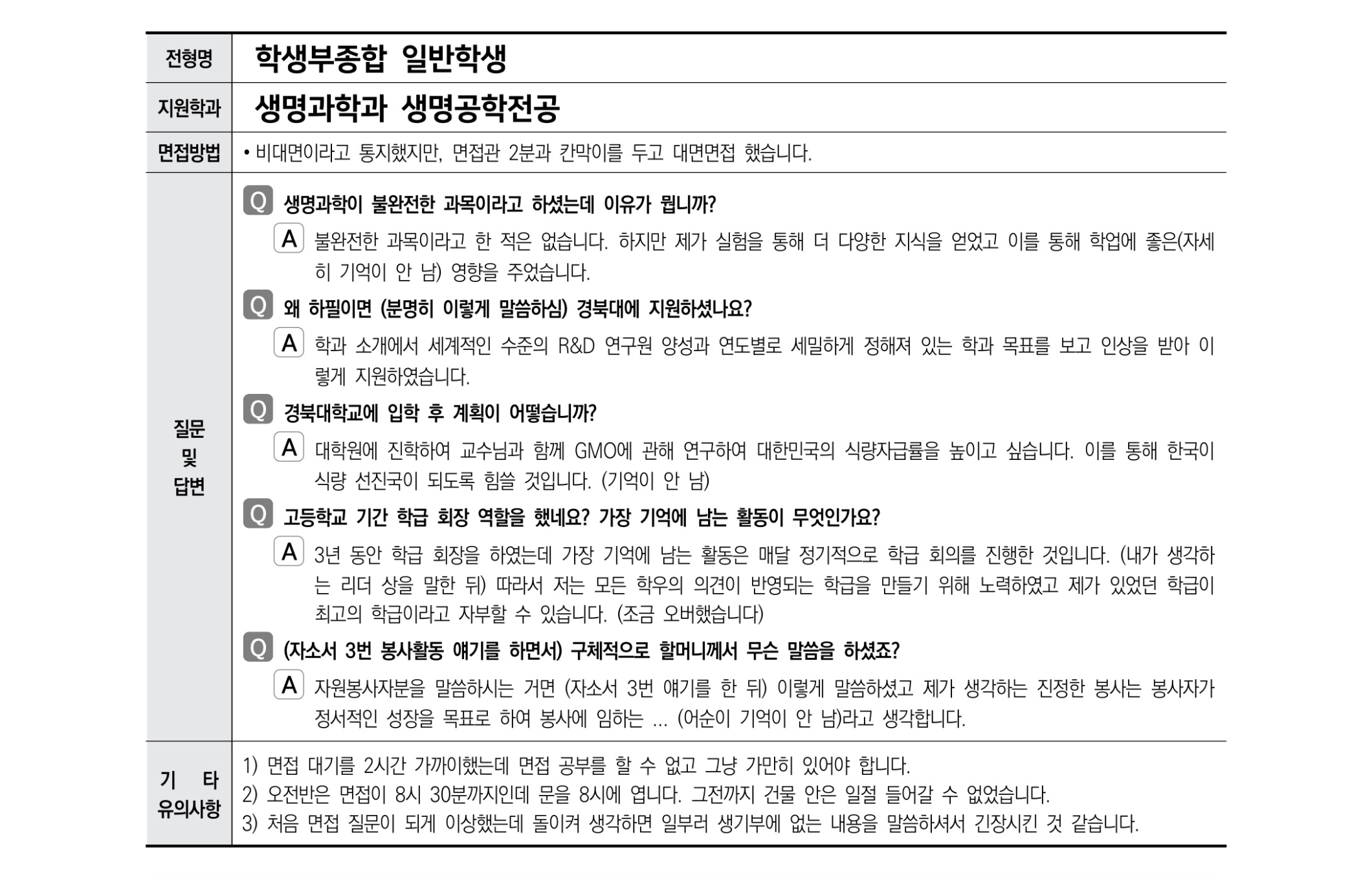 2021학년도 경북대학교 면접 후기77 - 윤리교육과 2021학년도 경북대학교 면접 후기78 - 응용생명과학부