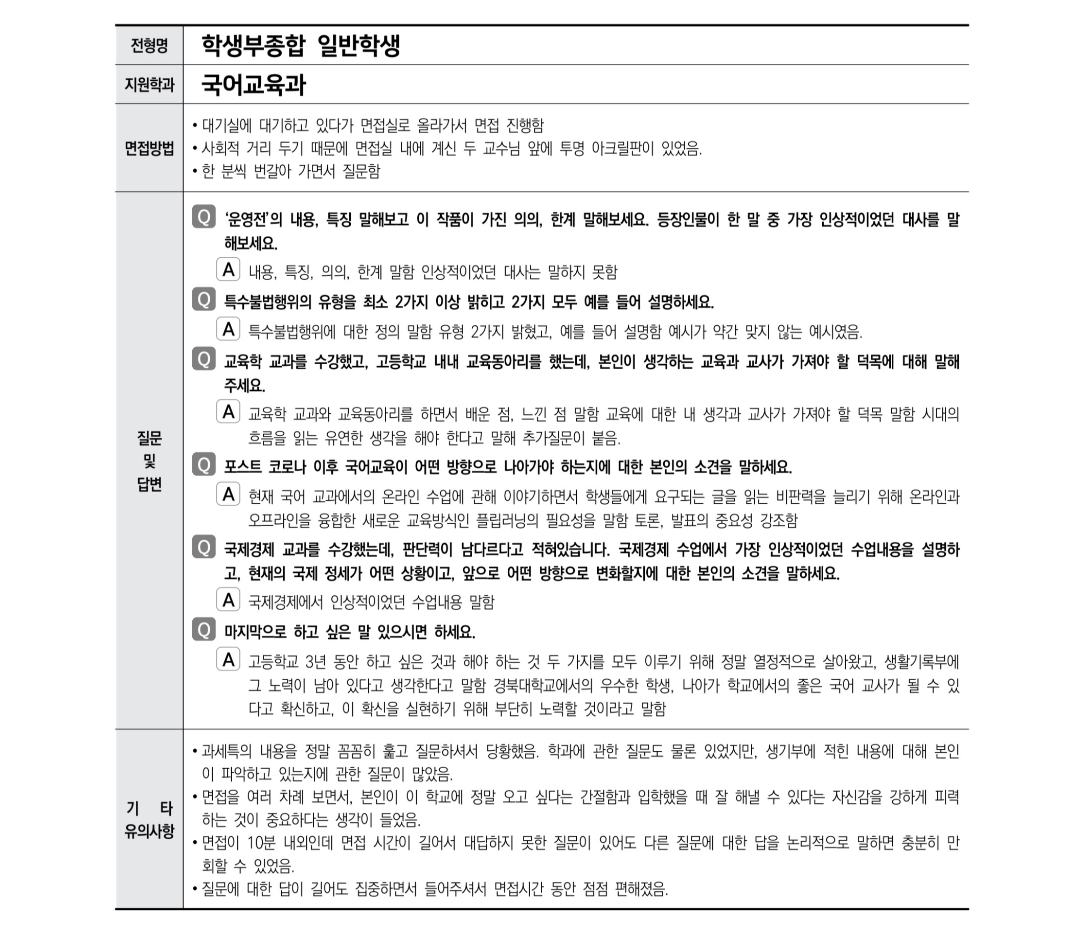 2021학년도 경북대학교 면접 후기90 - 일반사회교육과 2021학년도 경북대학교 면접 후기91 - 일어일문학과