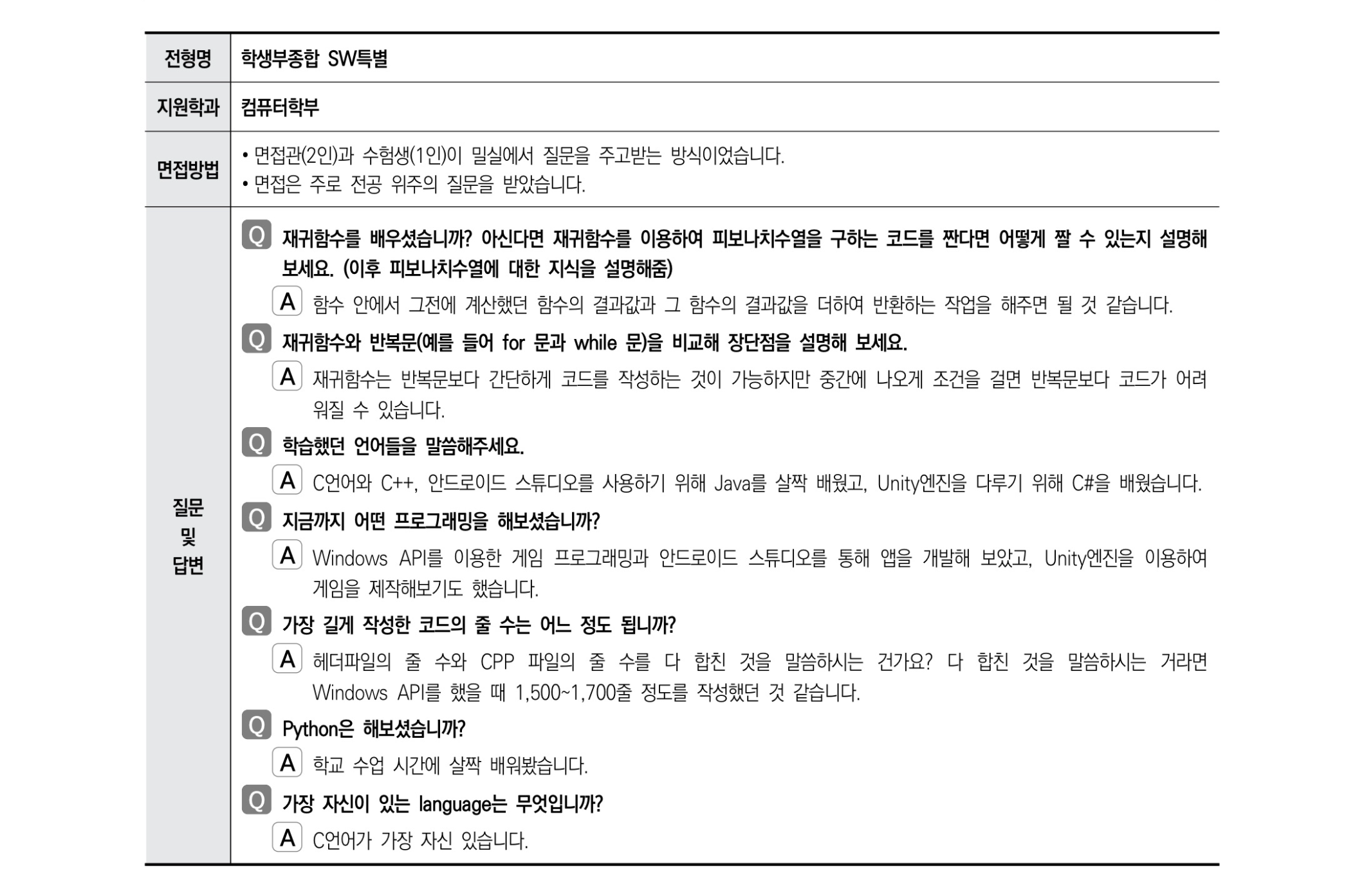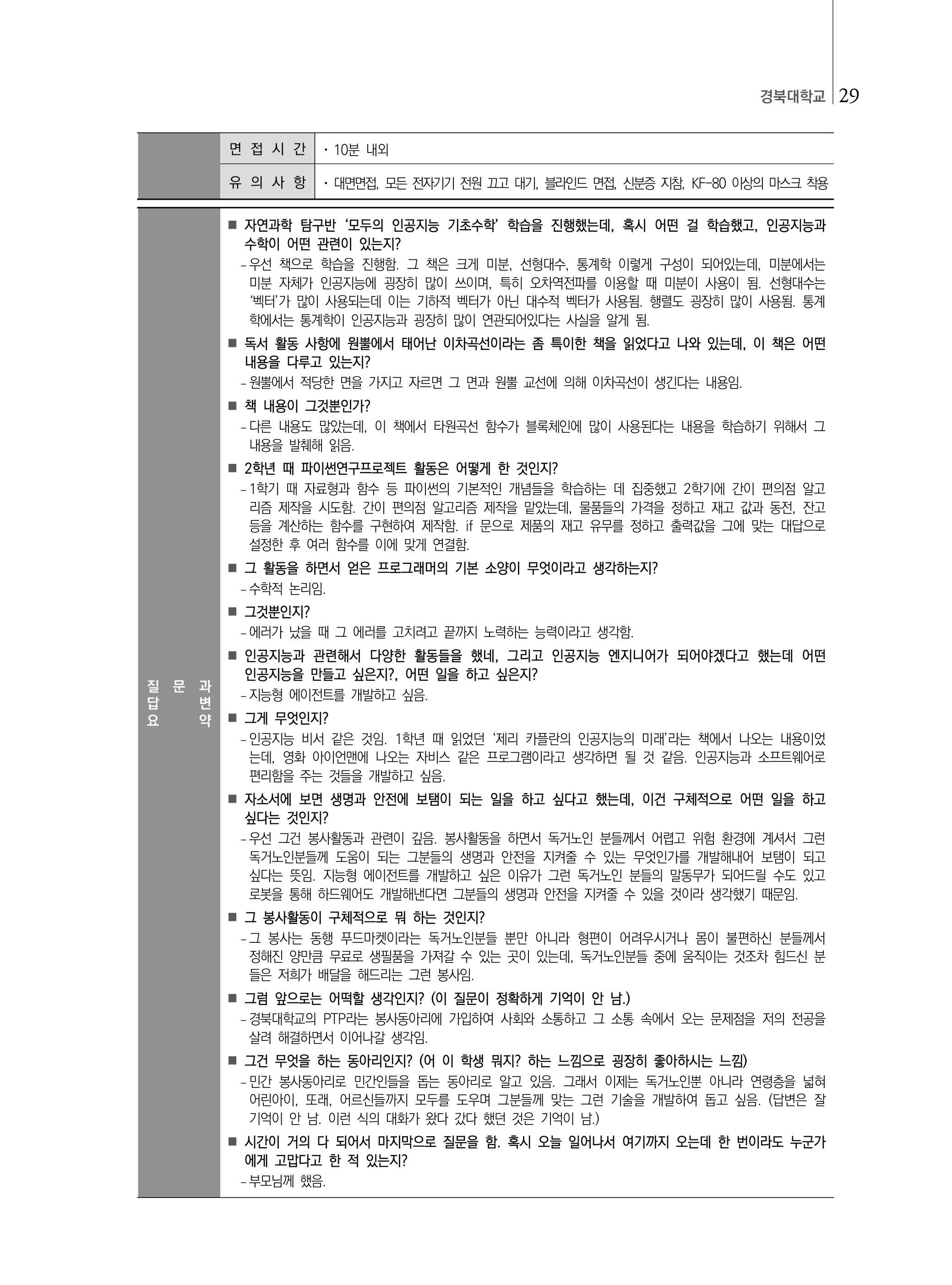 2021학년도 경북대학교 면접 후기115 - 컴퓨터학부