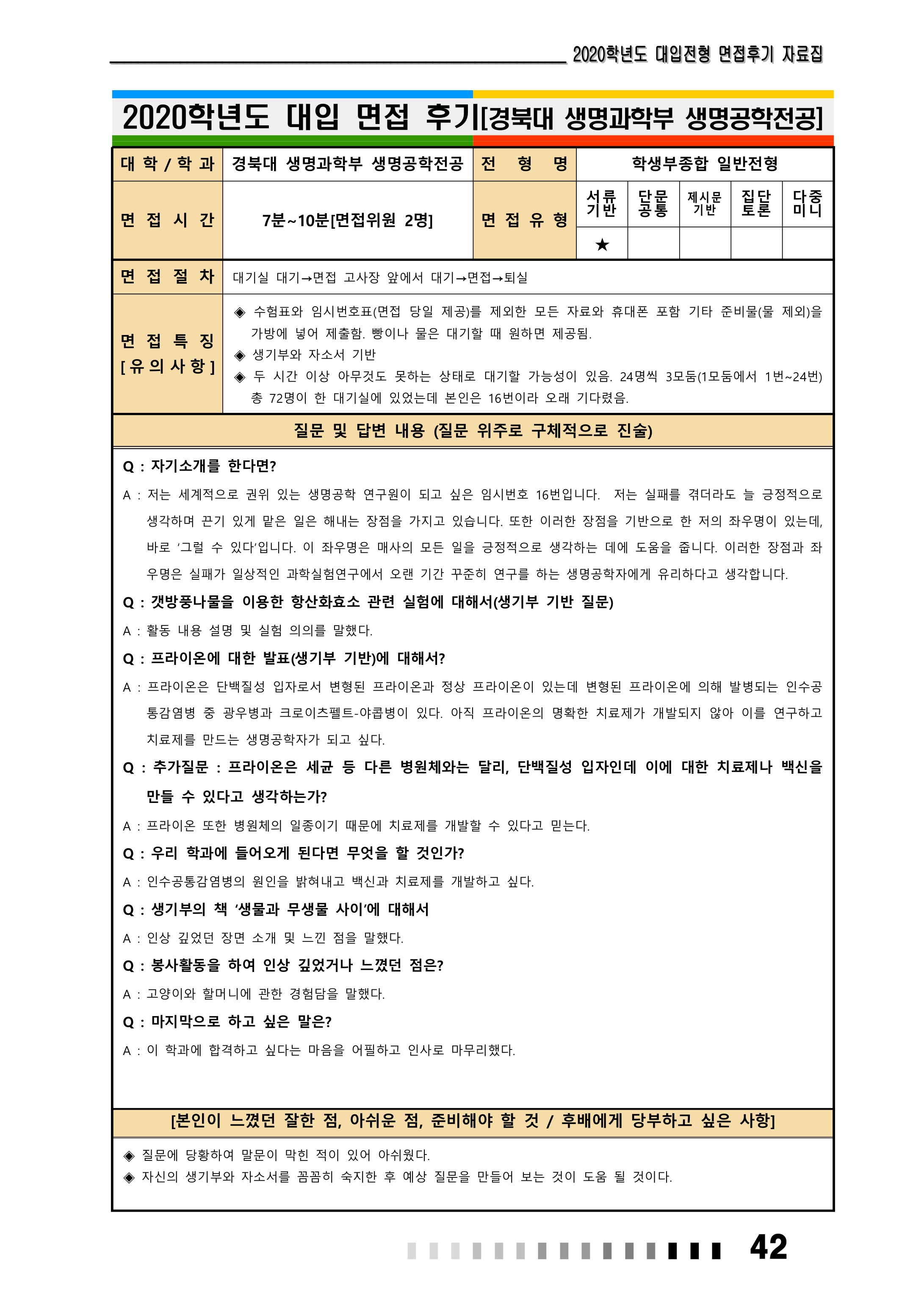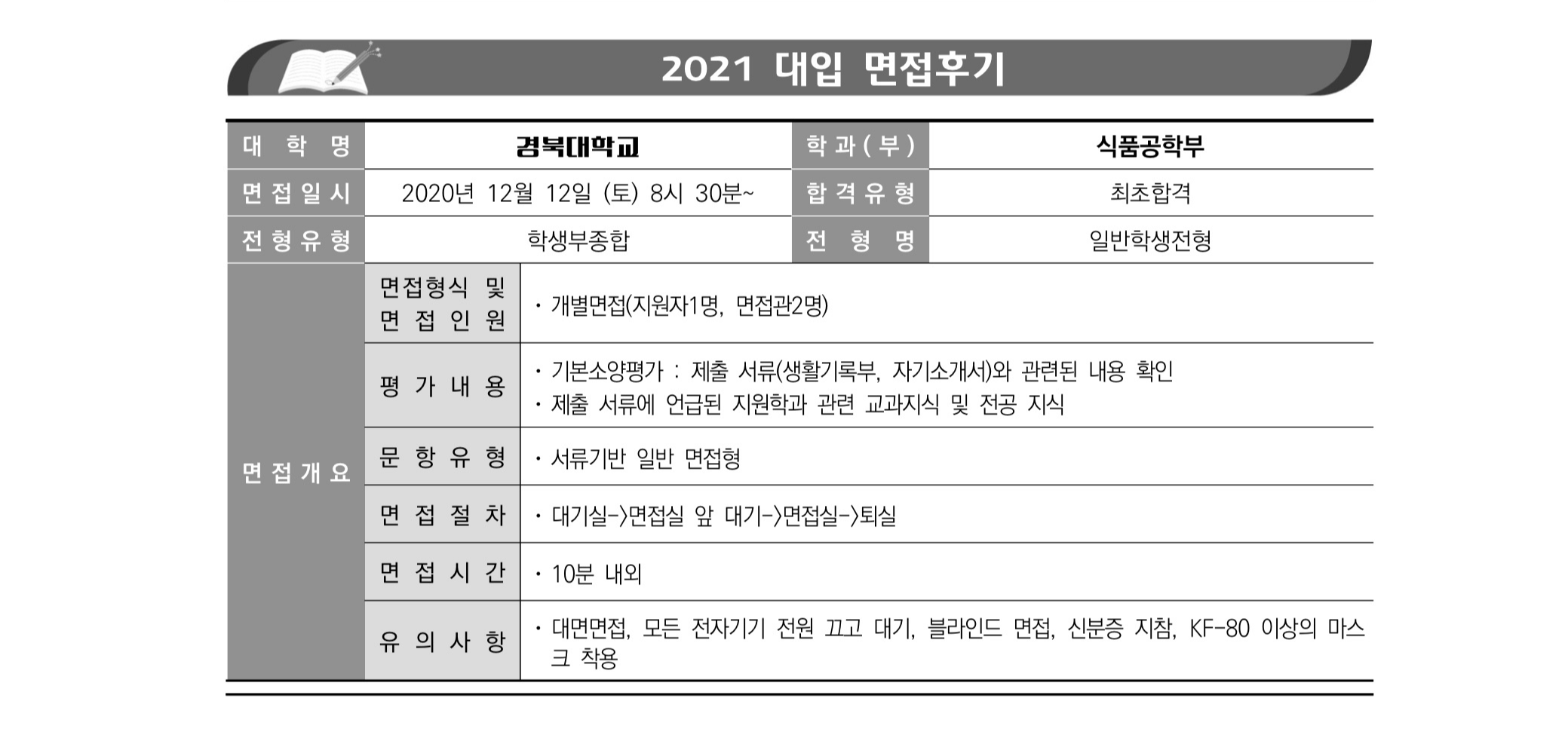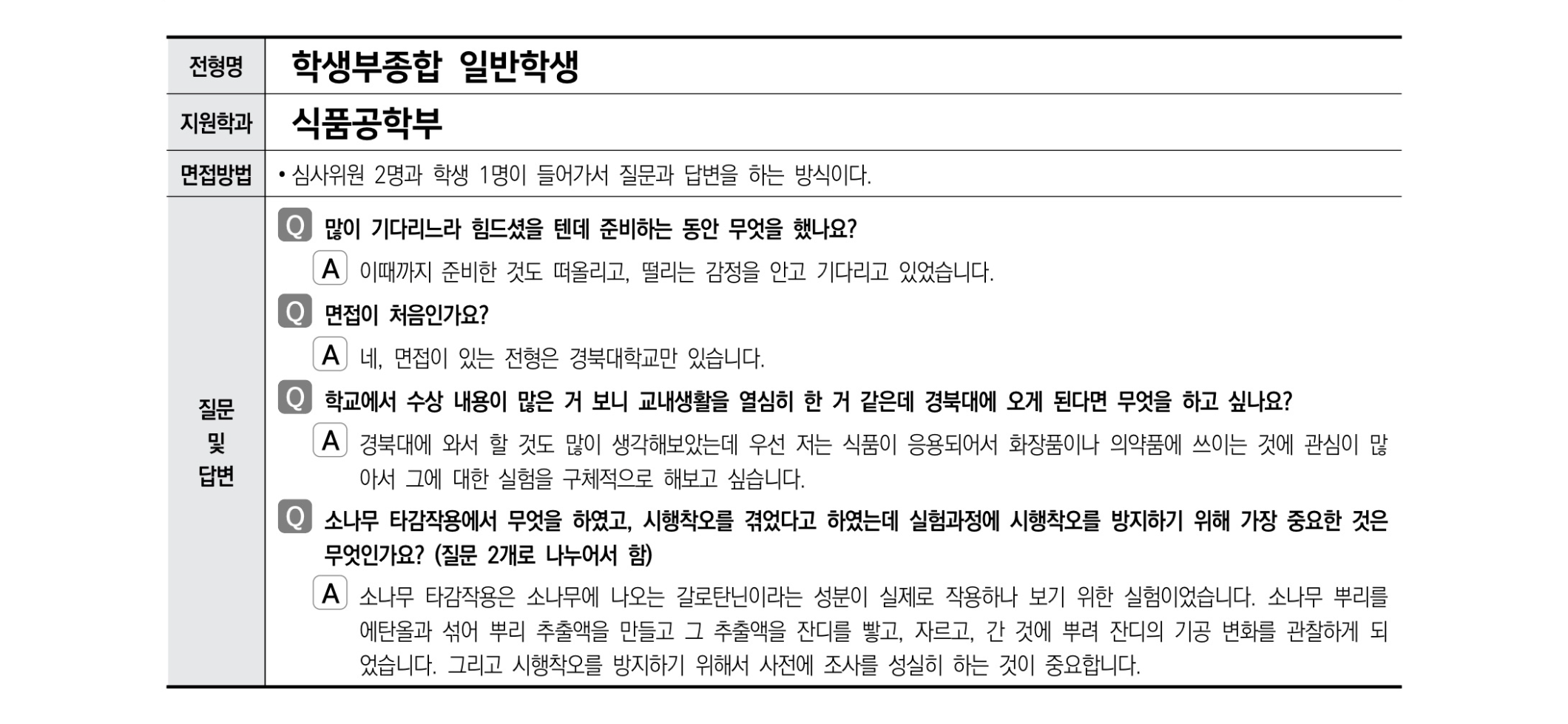 2021학년도 경북대학교 면접 후기80 - 응용생명과학부 2021학년도 경북대학교 면접 후기81 - 응용화학공학부