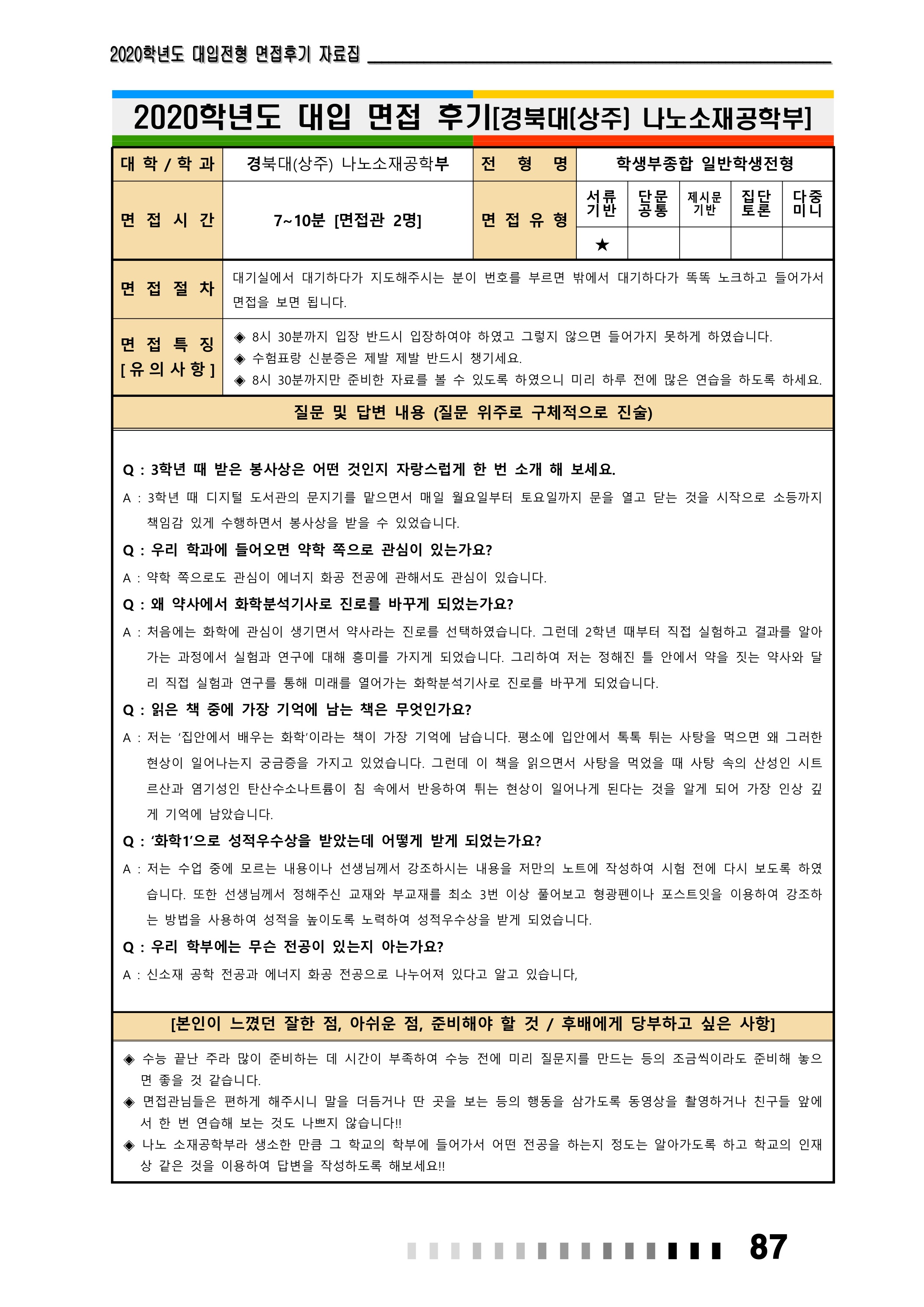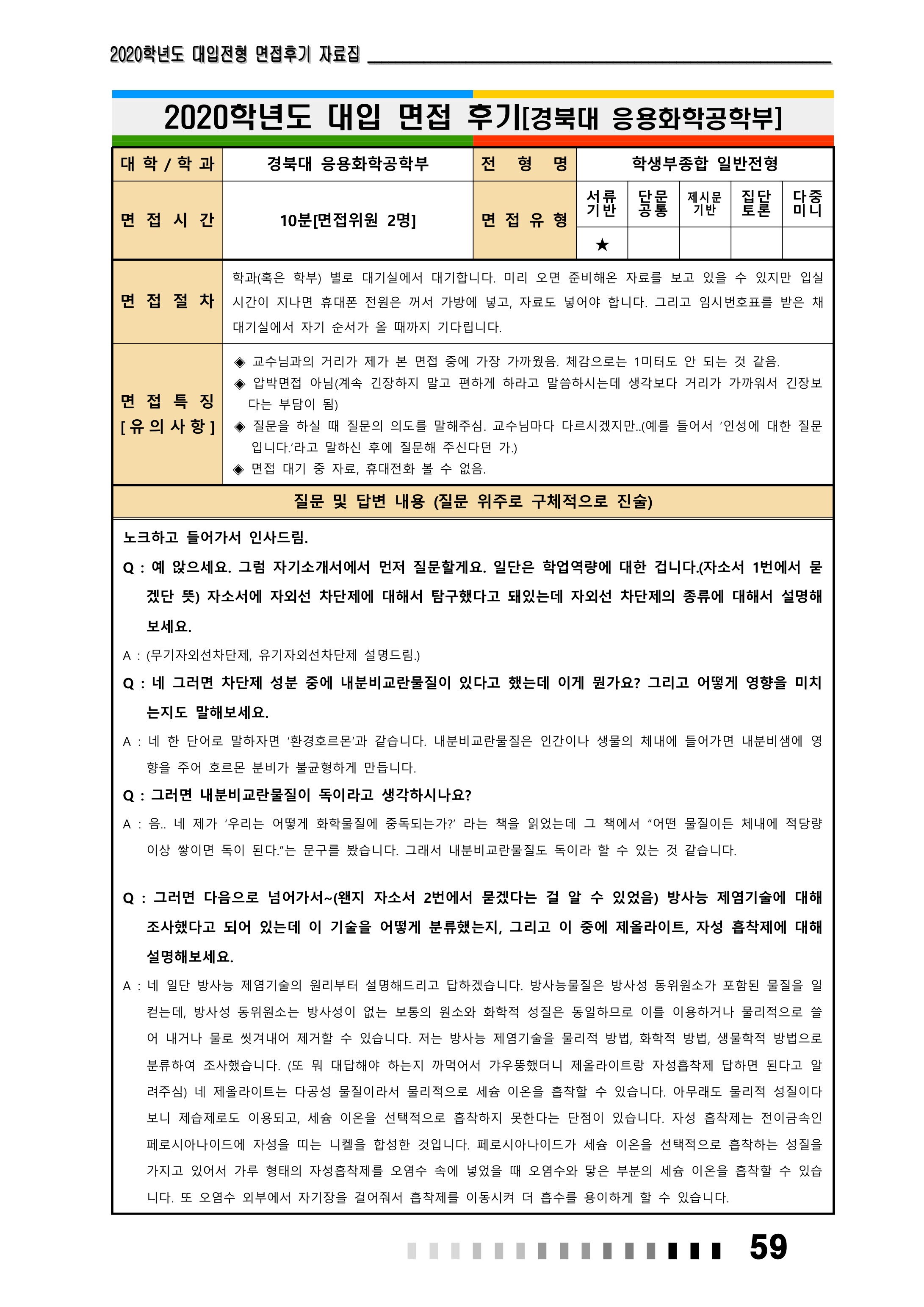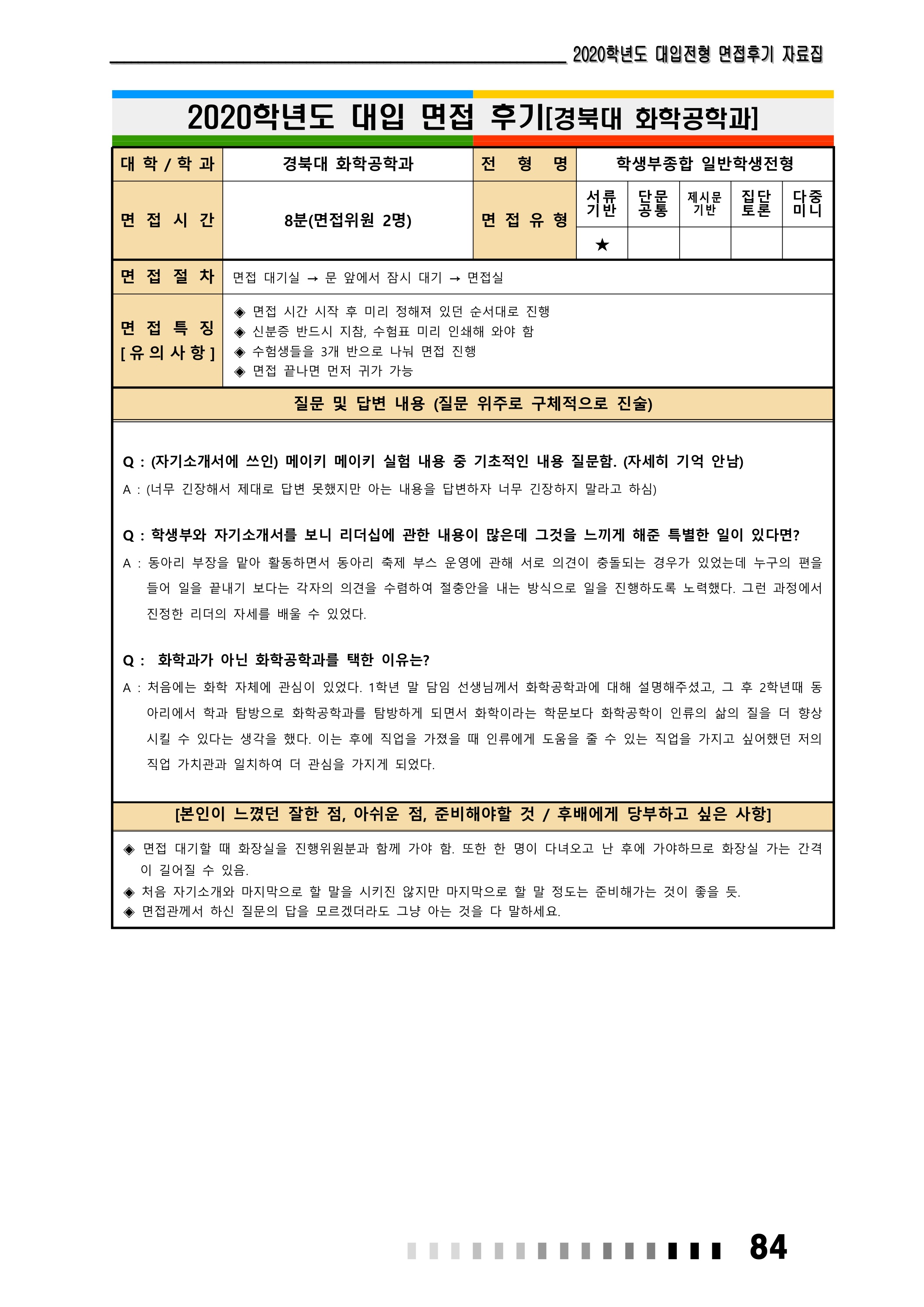 2021학년도 경북대학교 면접 후기82 - 응용화학공학부 2021학년도 경북대학교 면접 후기83 - 응용화학공학부