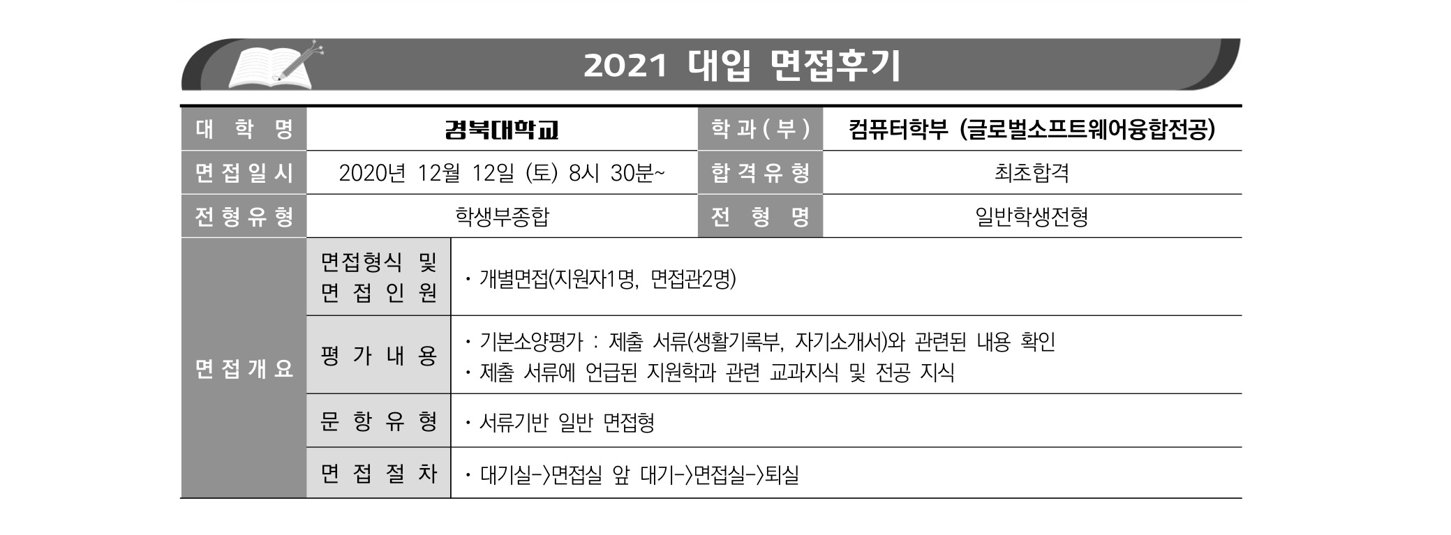 2021학년도 경북대학교 면접 후기114 - 컴퓨터학부 2021학년도 경북대학교 면접 후기115 - 컴퓨터학부
