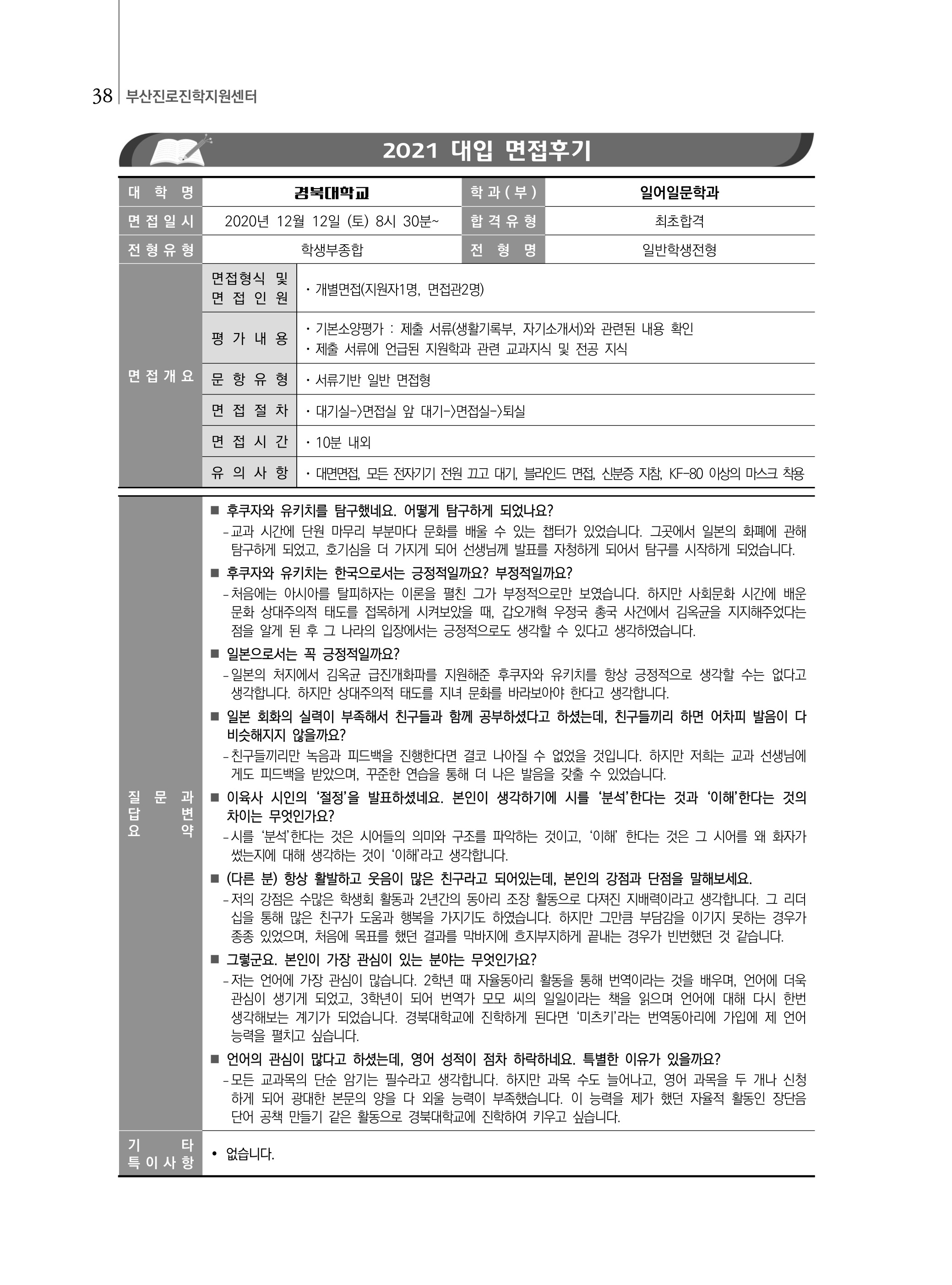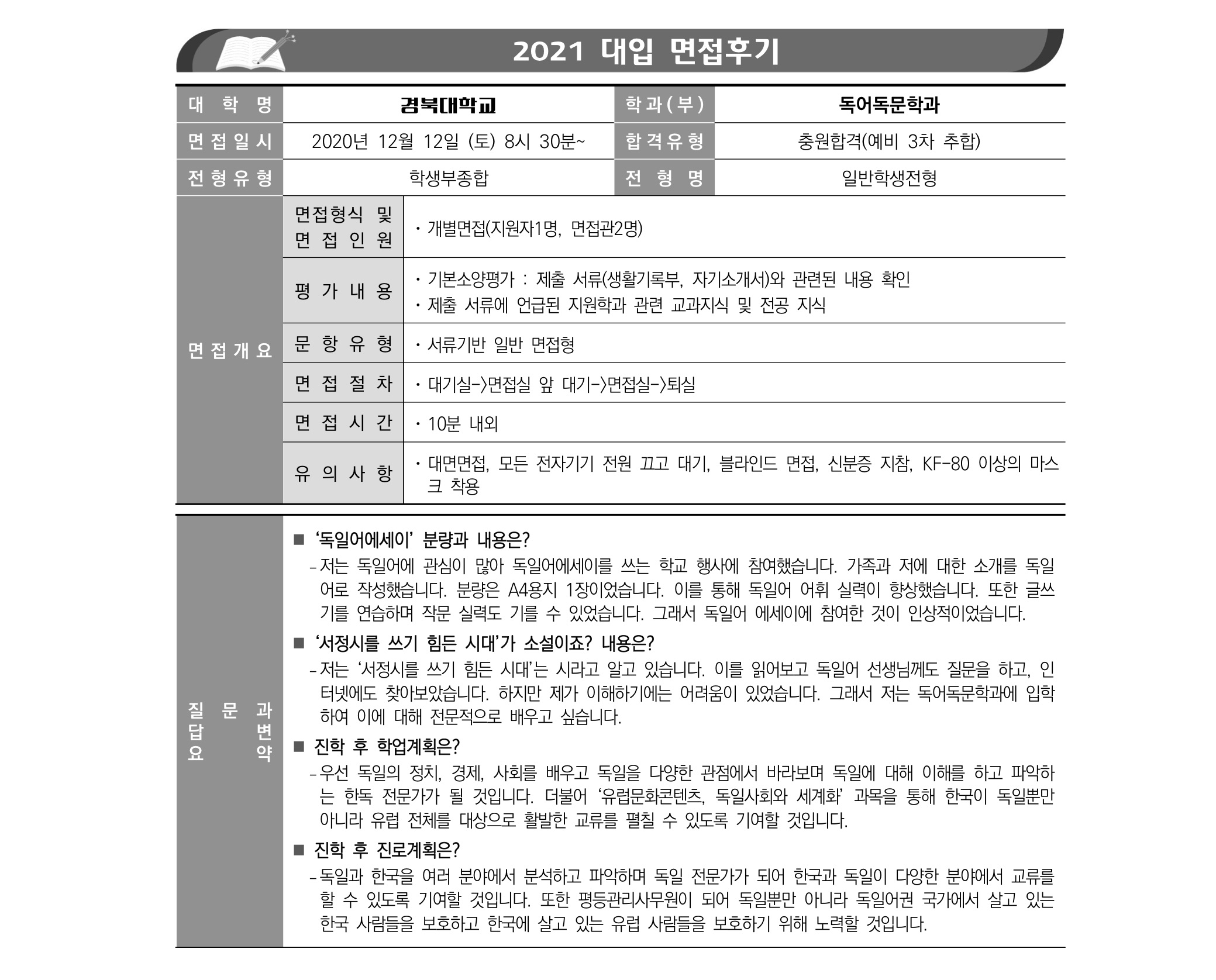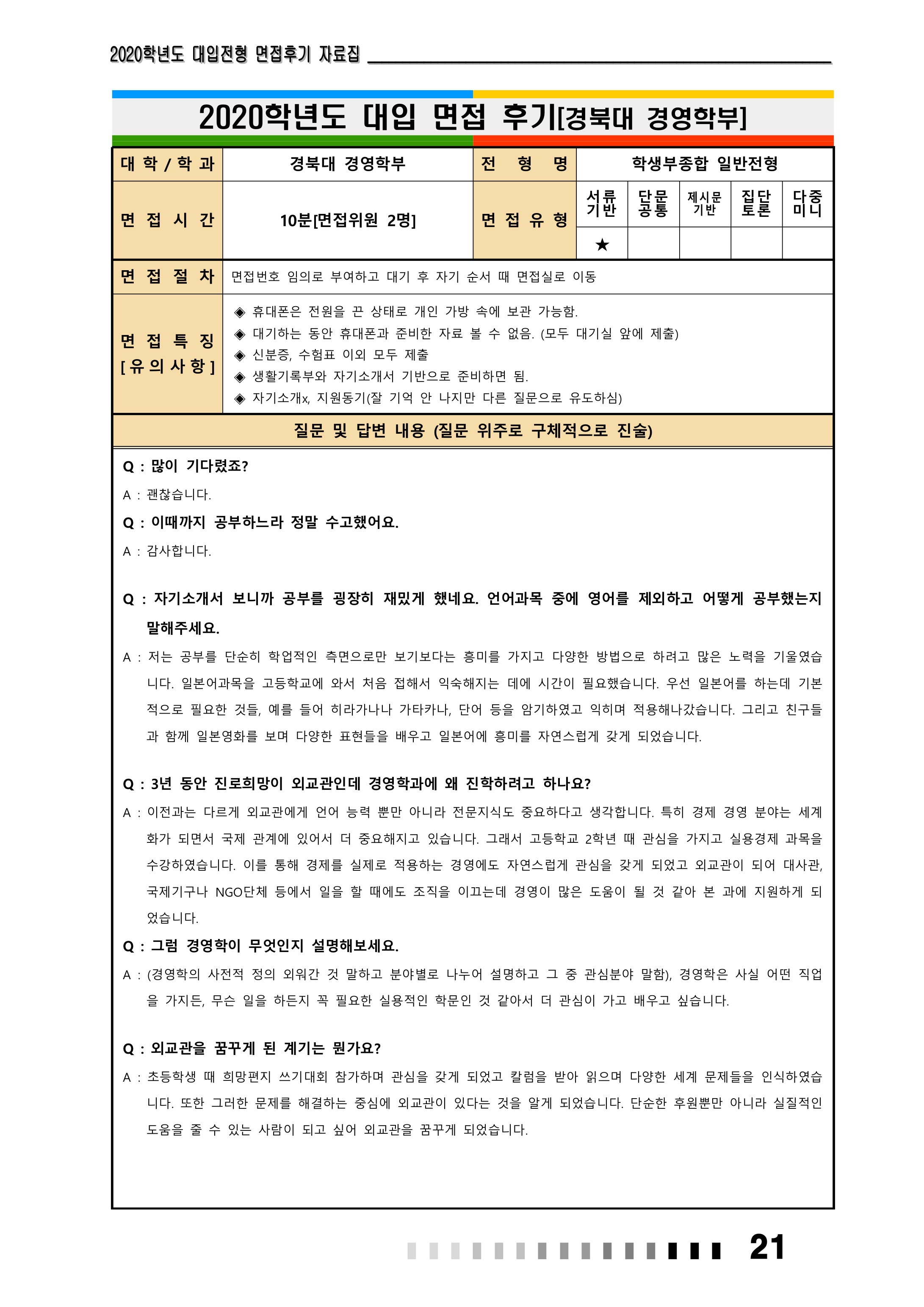 2021학년도 경북대학교 면접 후기91 - 일어일문학과 2021학년도 경북대학교 면접 후기92 - 일어일문학과