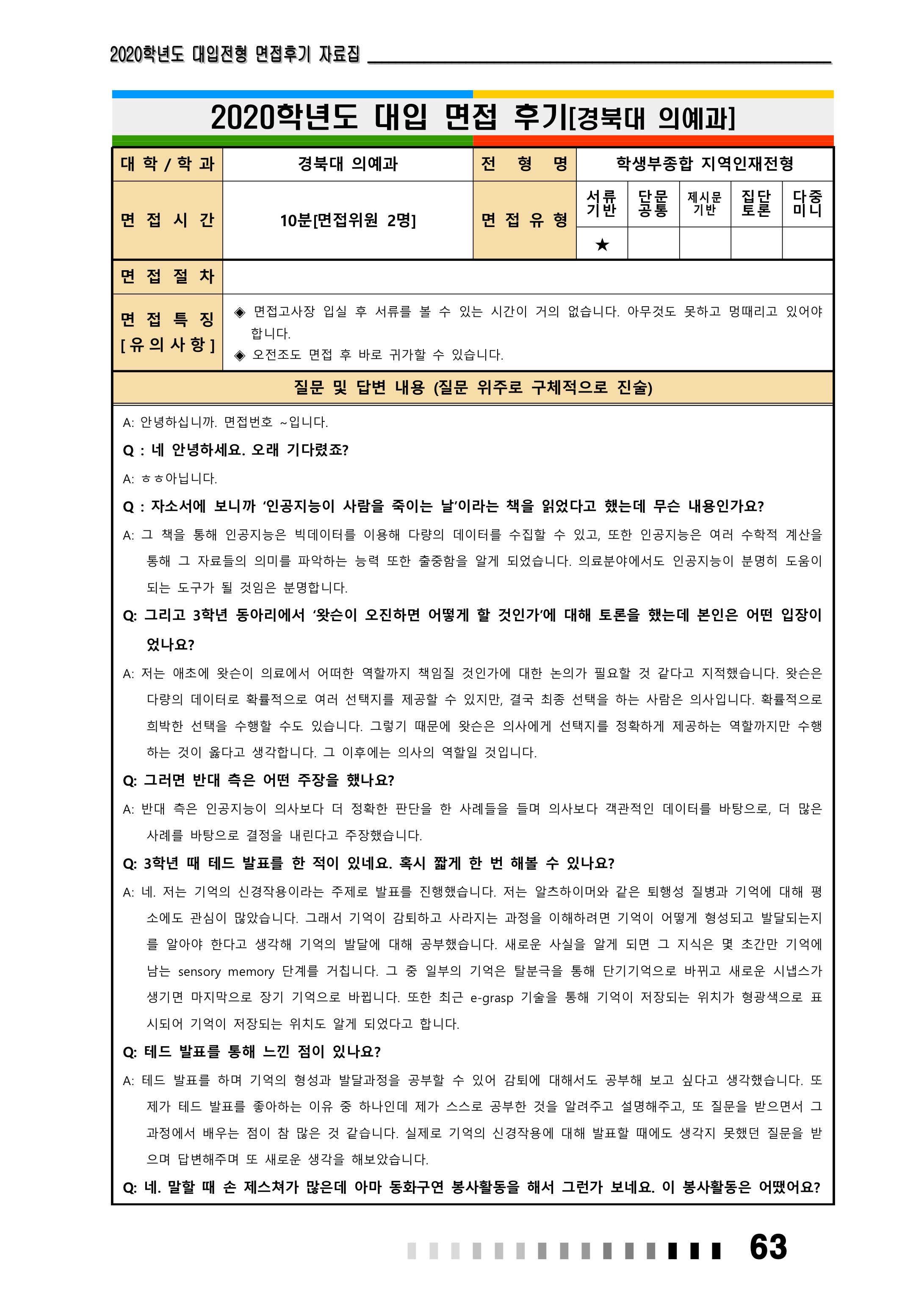 2021학년도 경북대학교 면접 후기88 - 의예과 2021학년도 경북대학교 면접 후기89 - 인문사회자율전공
