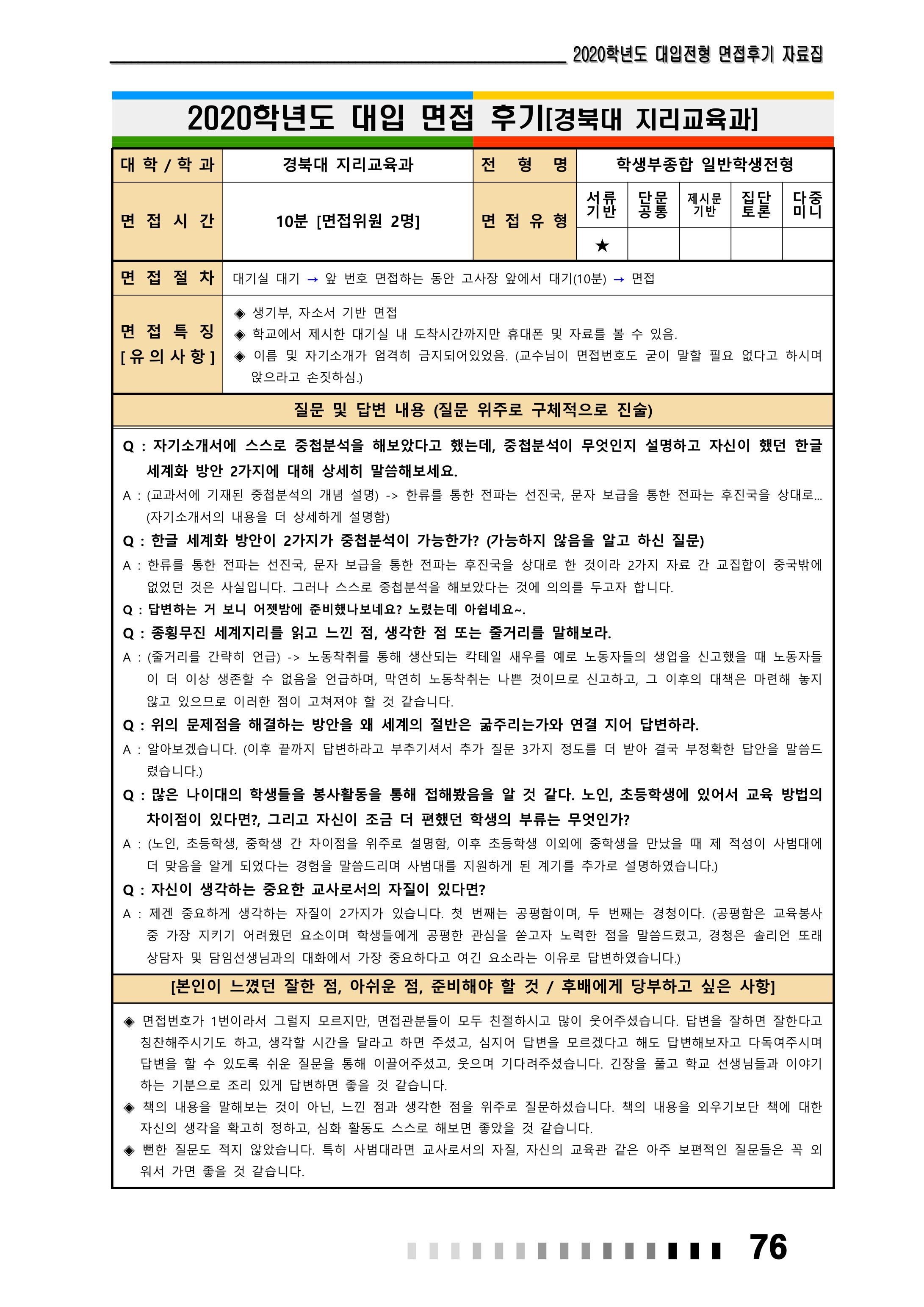 2021학년도 경북대학교 면접 후기109 - 지리교육과 2021학년도 경북대학교 면접 후기110 - 철학과