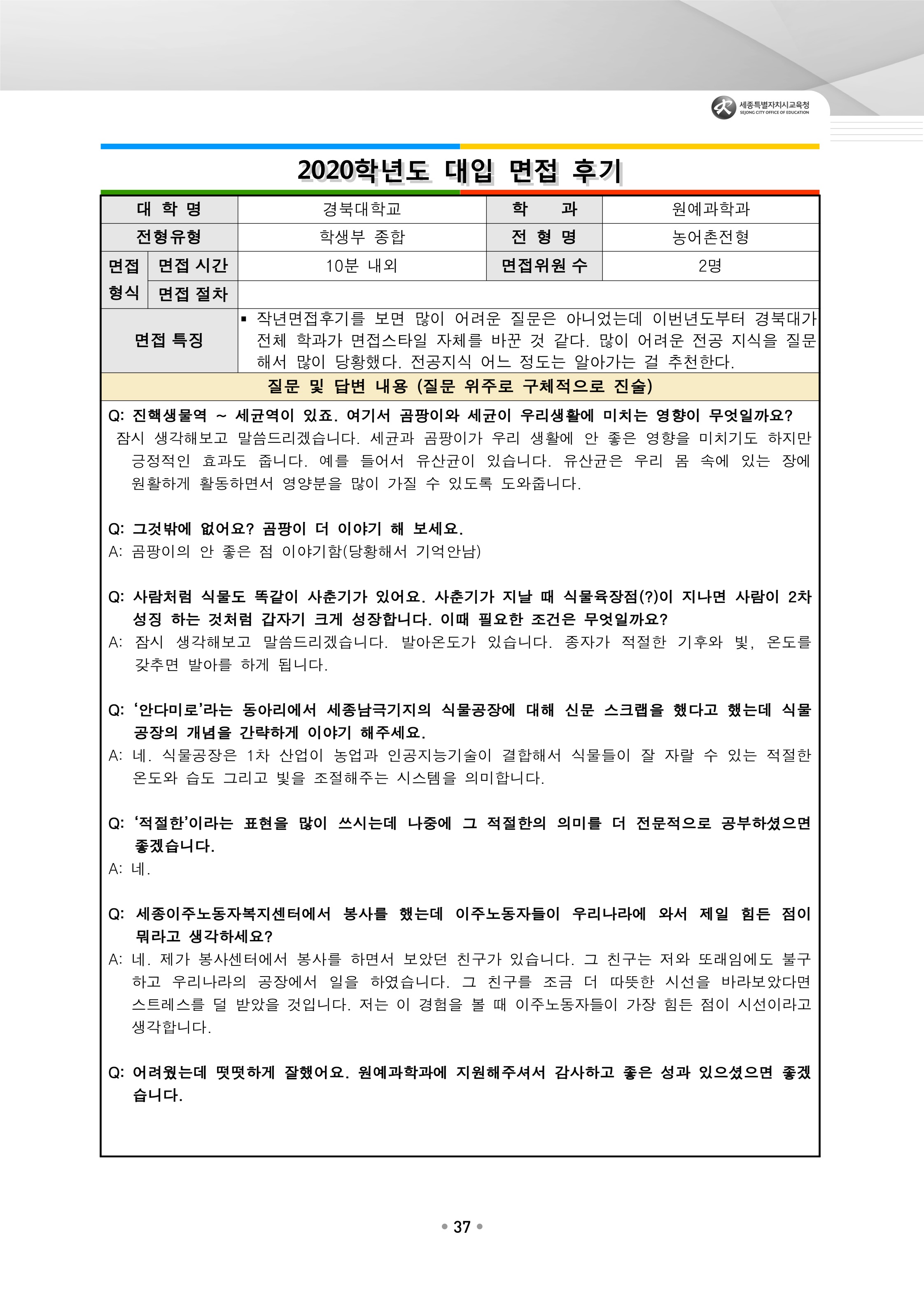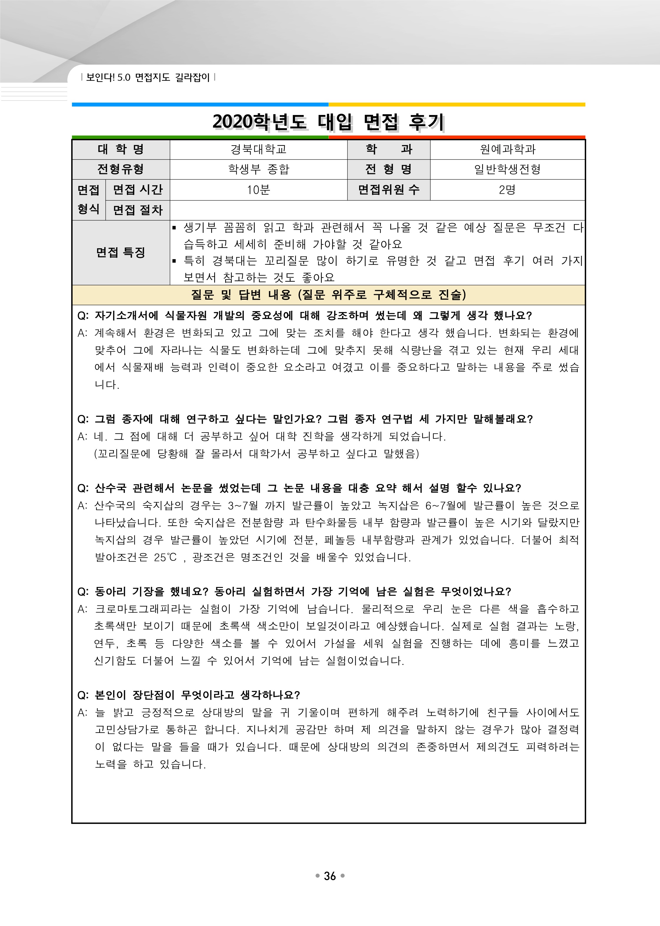 2021학년도 경북대학교 면접 후기71 - 원예과학과 2021학년도 경북대학교 면접 후기72 - 원예과학과