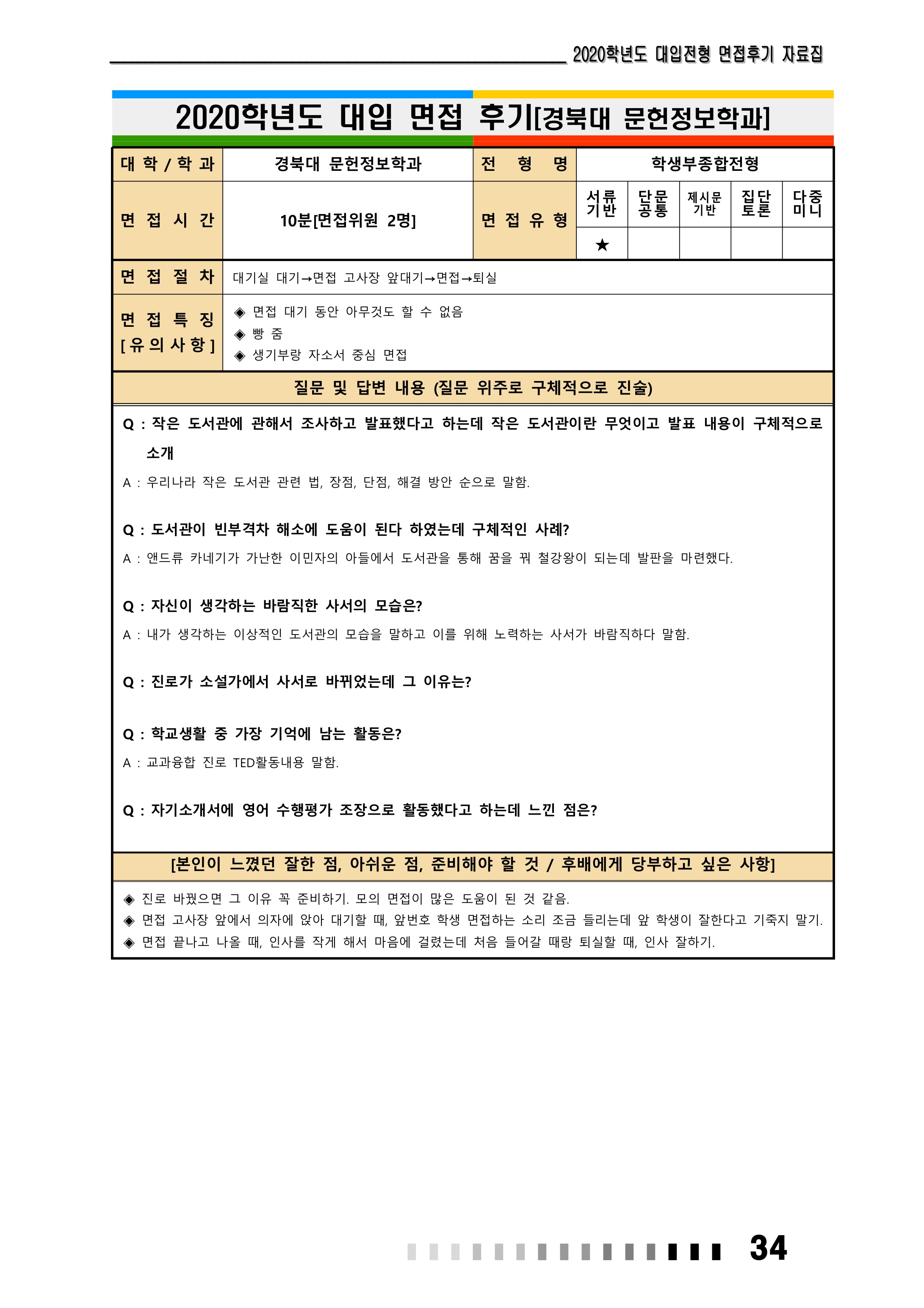 2021학년도 경북대학교 면접 후기101 - 전자공학부 2021학년도 경북대학교 면접 후기102 - 전자공학부