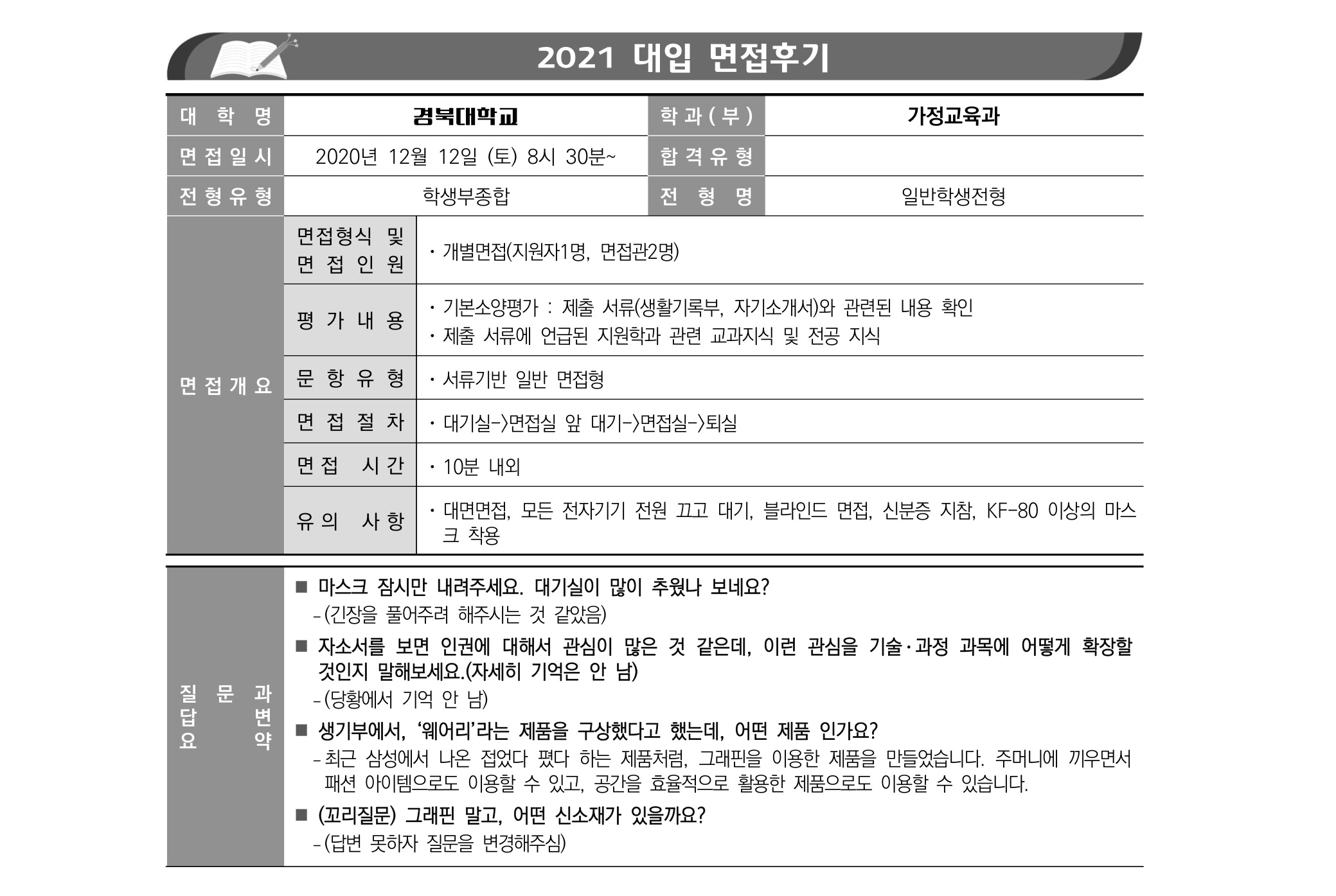 2021학년도 경북대학교 면접 후기84 - 의류학과 2021학년도 경북대학교 면접 후기85 - 의류학과