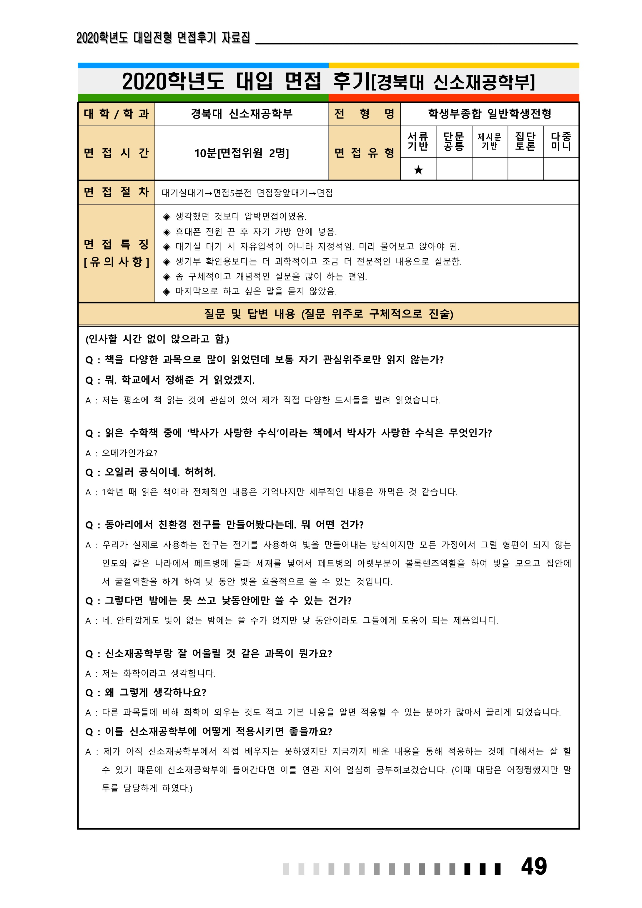 2021학년도 경북대학교 면접 후기62 - 신소재공학부