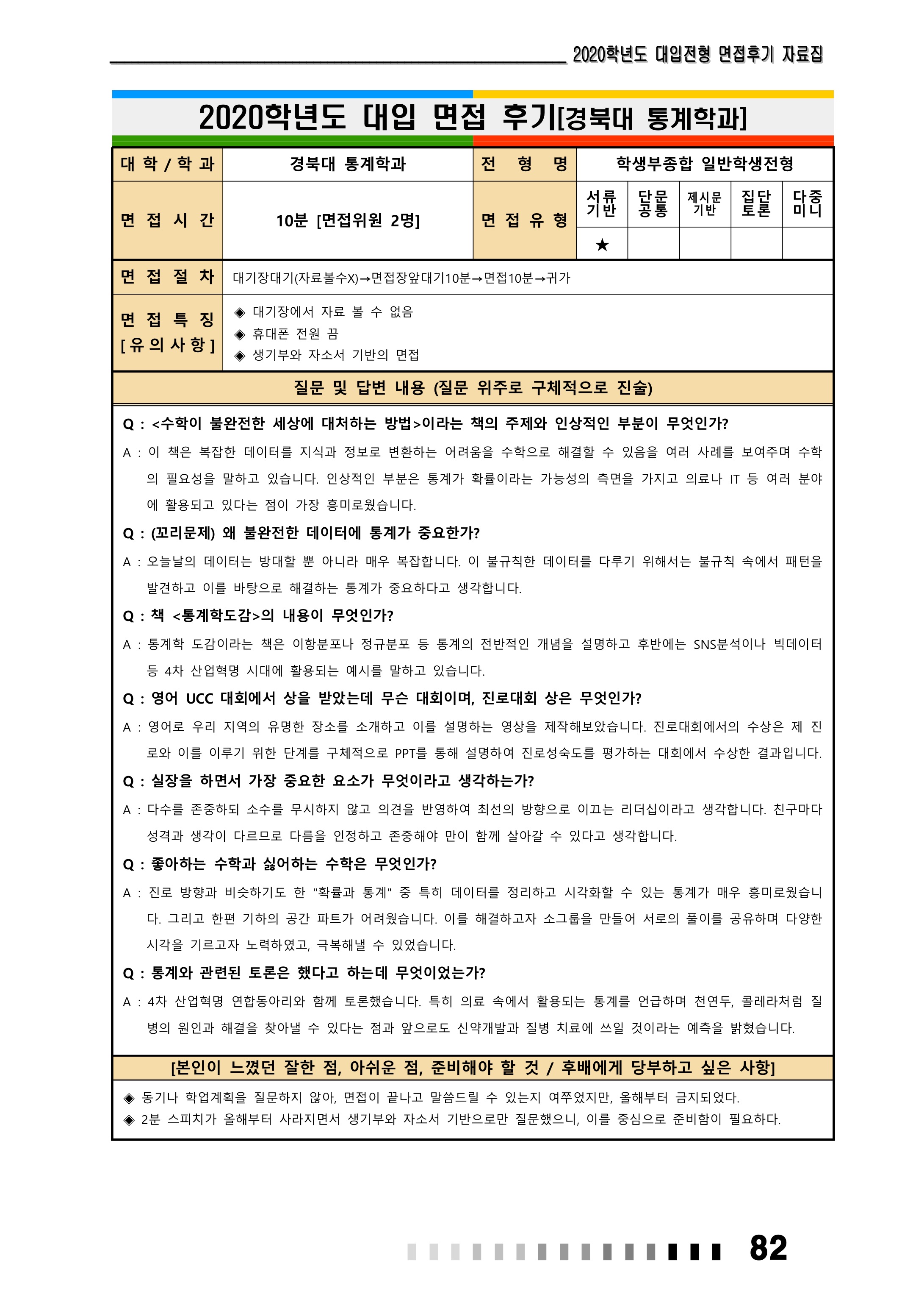 2021학년도 경북대학교 면접 후기121 - 토목공학과 2021학년도 경북대학교 면접 후기122 - 통계학과