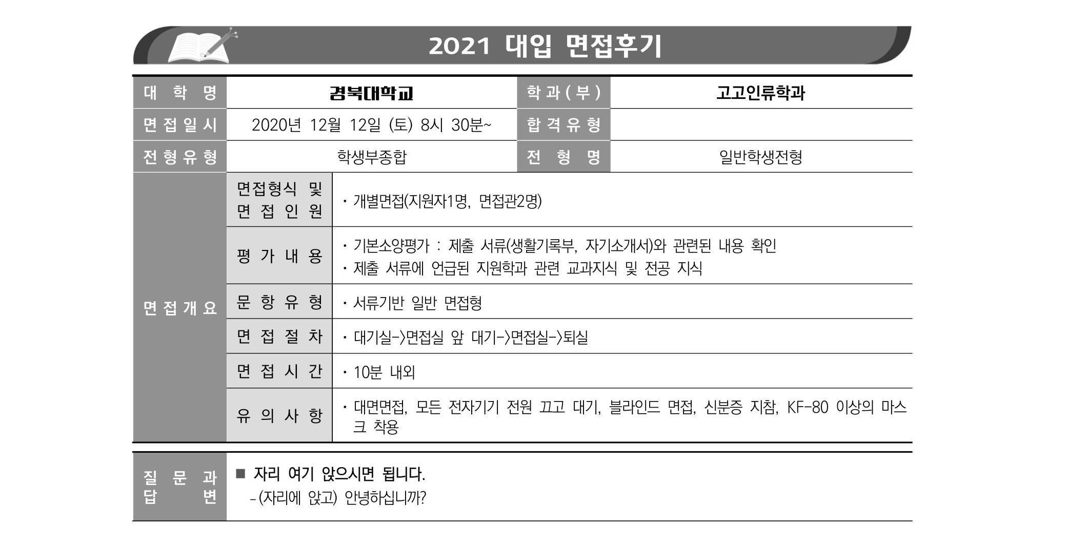 2021학년도 경북대학교 면접 후기66 - 역사교육학과